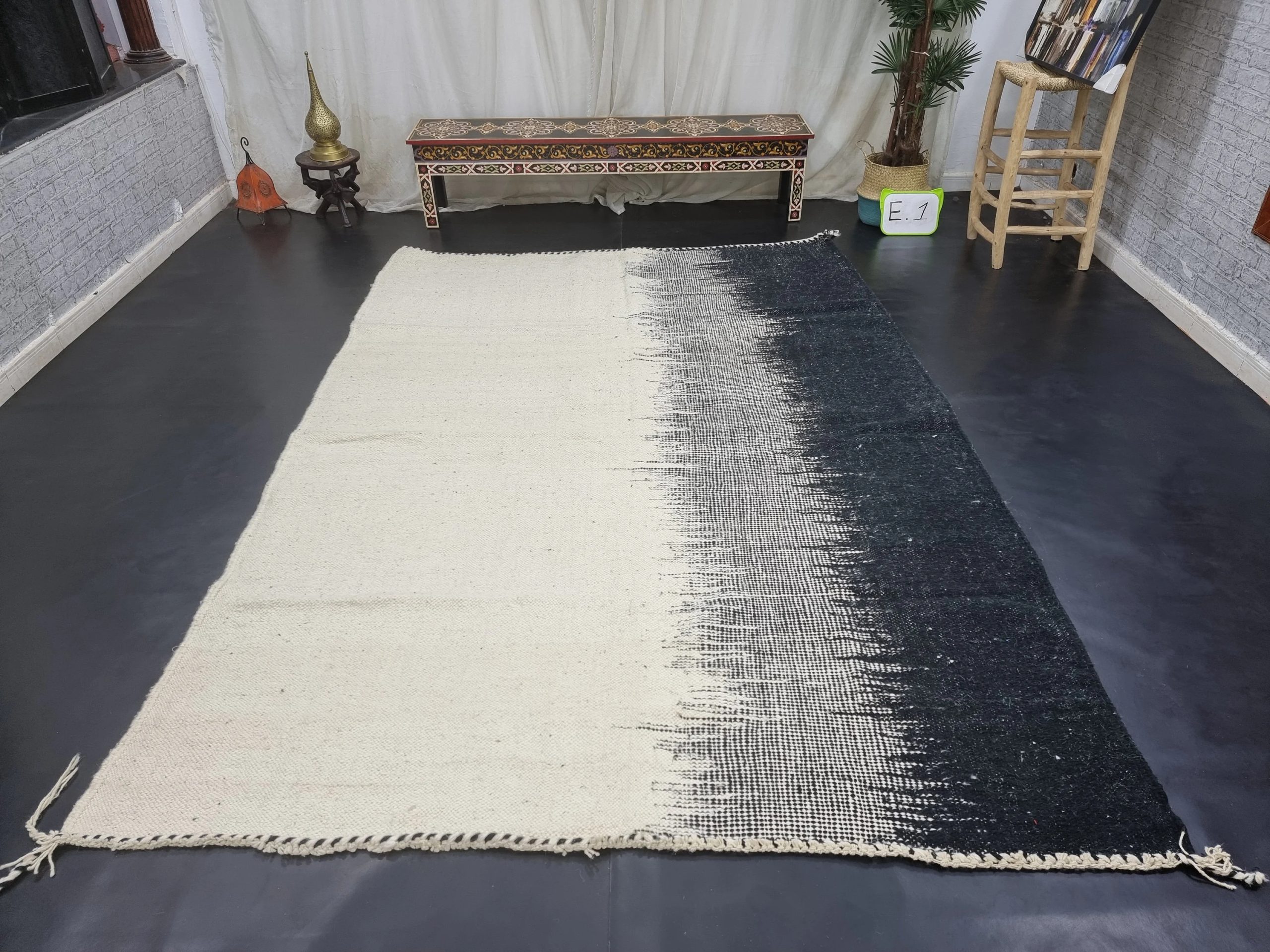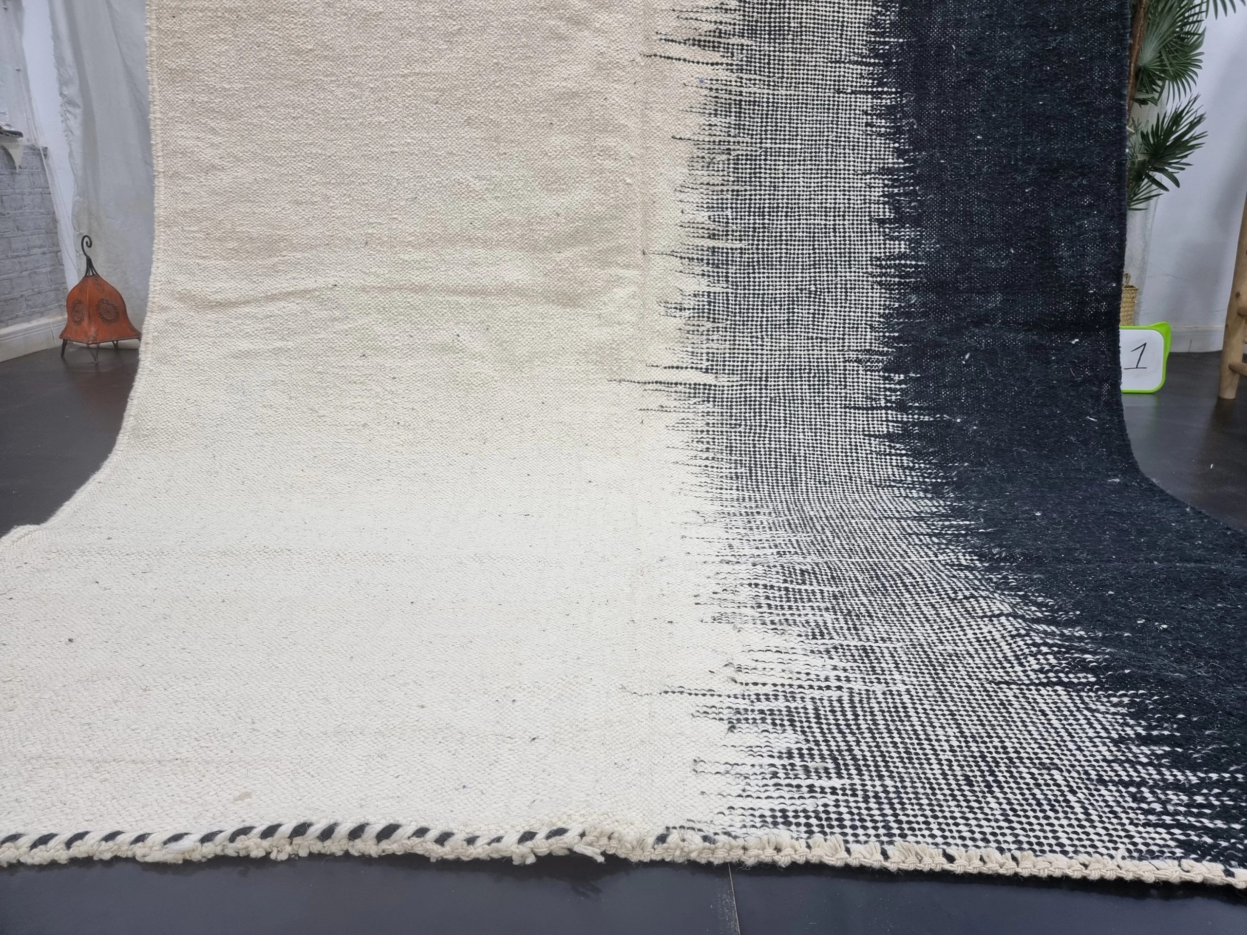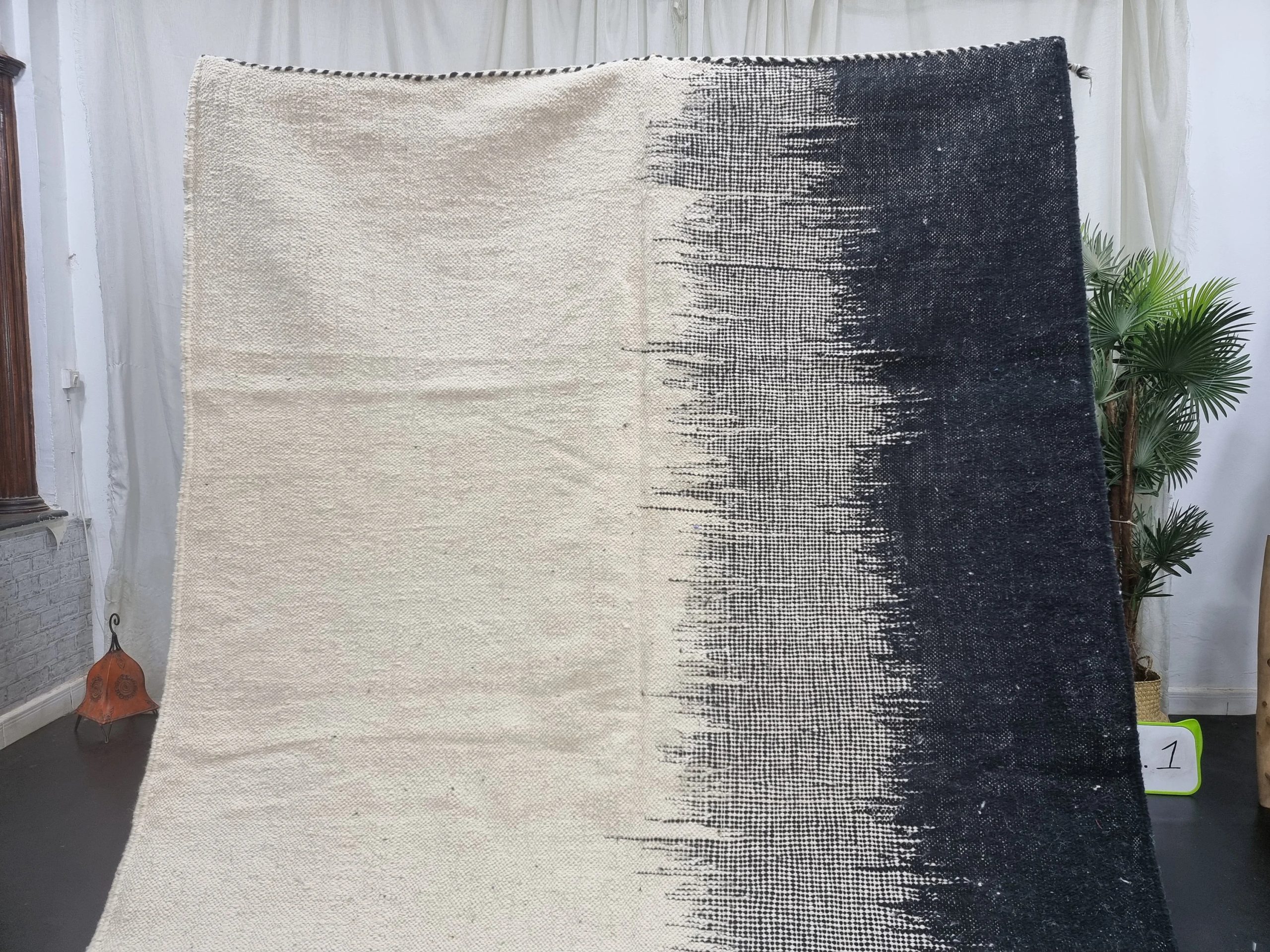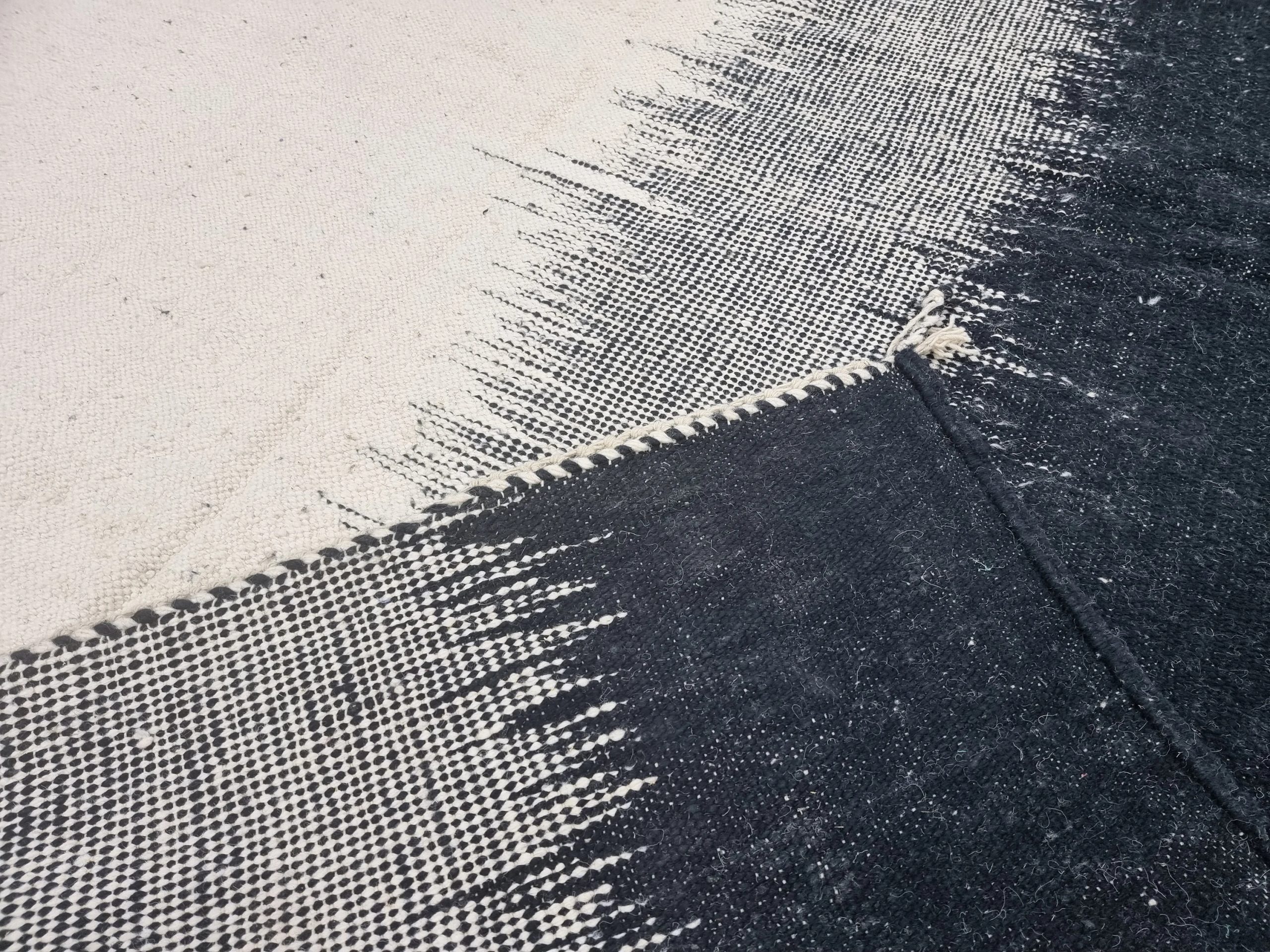 The uniqueness of the hand-woven gradation: Utilizing traditional hand-dyed, segmented dyeing and flat weaving techniques, each gradation is meticulously crafted by artisans through meticulously adjusting the dye depth and hand-weaving the texture. From off-white to light gray to rich black, no two carpets have the same gradient rhythm. Each rug is a unique work of art, embodying the dedication and creativity of the craftsmen.