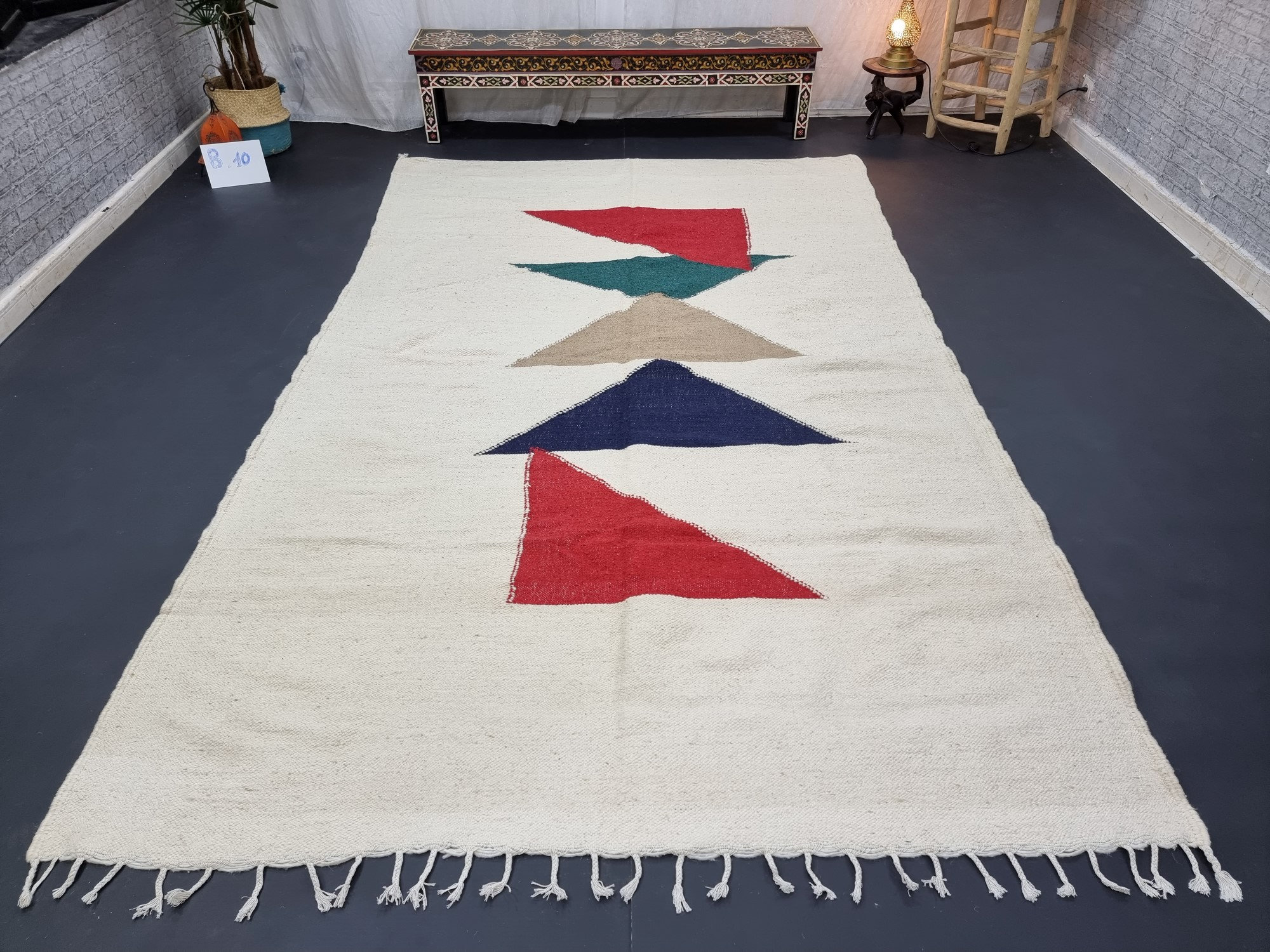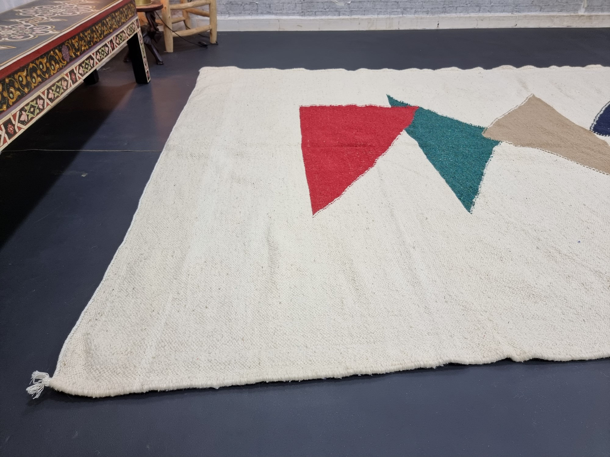Using traditional hand-woven flat weaving techniques, the entire process, from color dyeing and weaving to triangular patterning, is handcrafted by artisans. No two rugs are identical in triangular placement or tassel shape – a unique, handmade charm that cannot be replicated by machines. Your rug will become a unique collection of nomadic art.