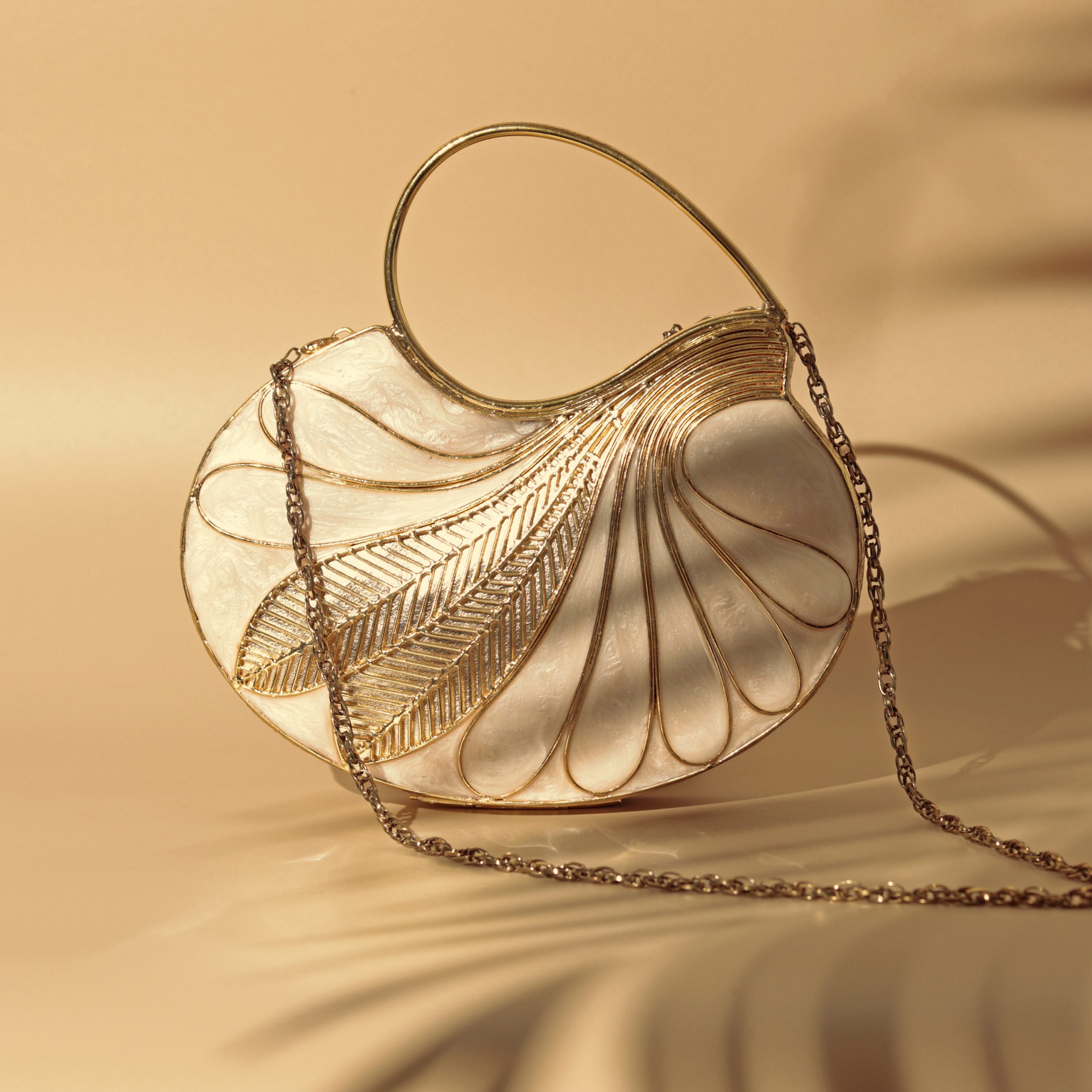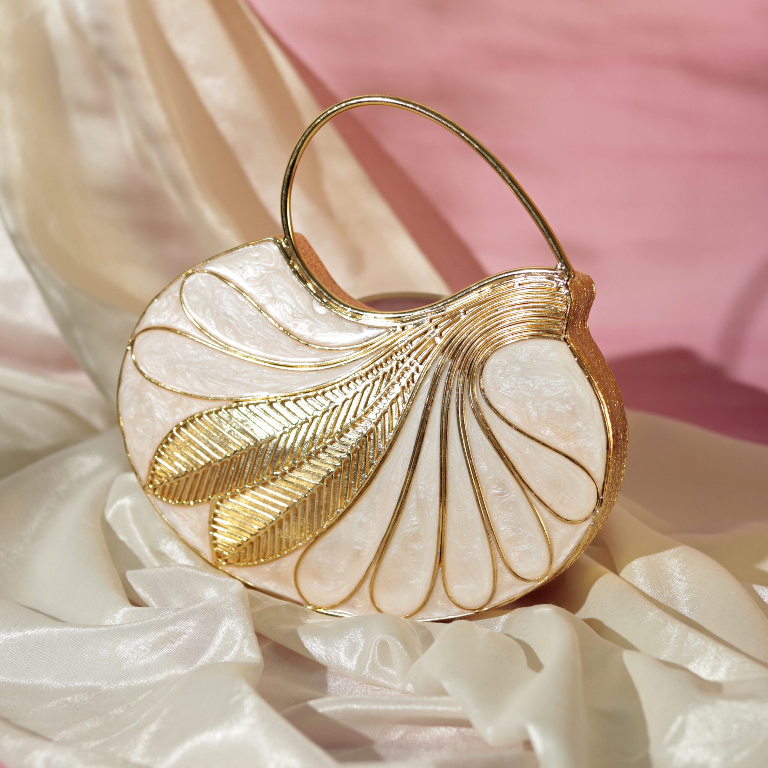 Niche fashionistas: Tired of the same old bags, this bag’s scalloped silhouette and unique design with golden feather mother-of-pearl create a unique style statement, making it a recognizable fashion icon for both evening wear and everyday wear.