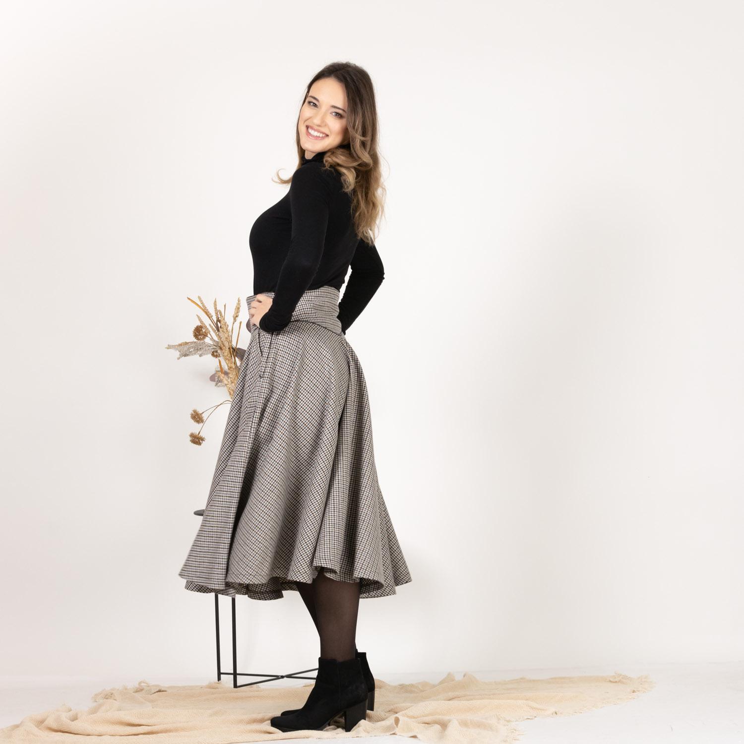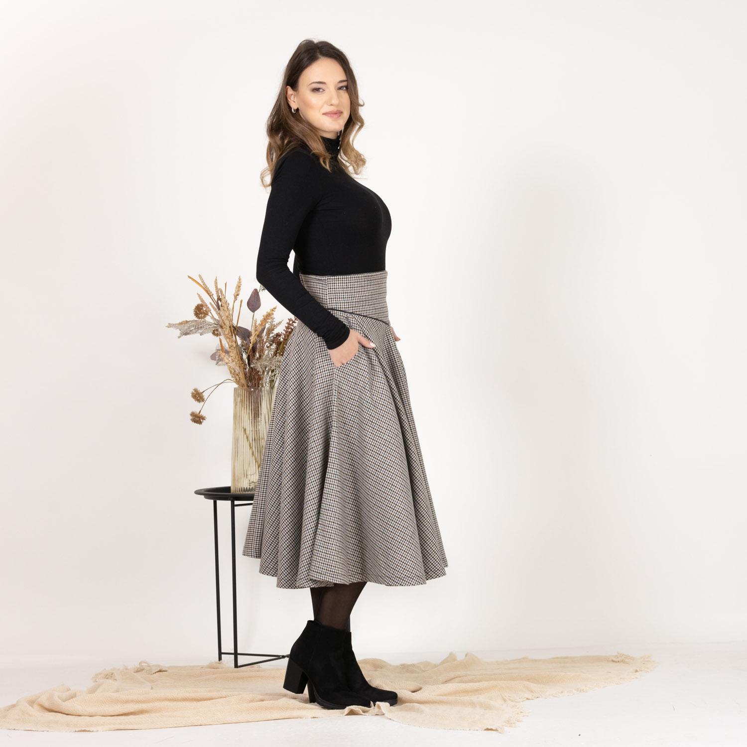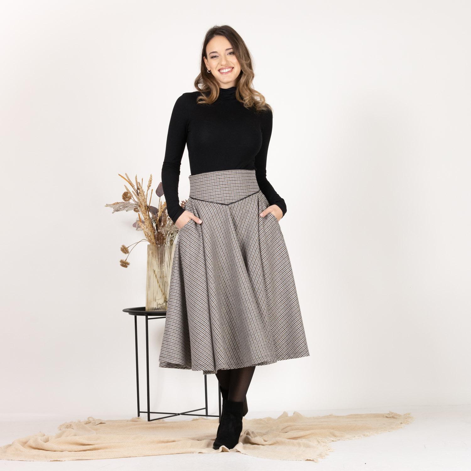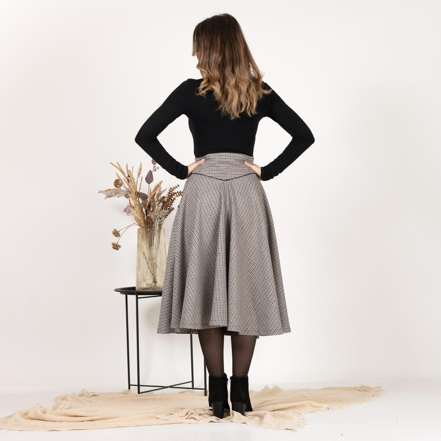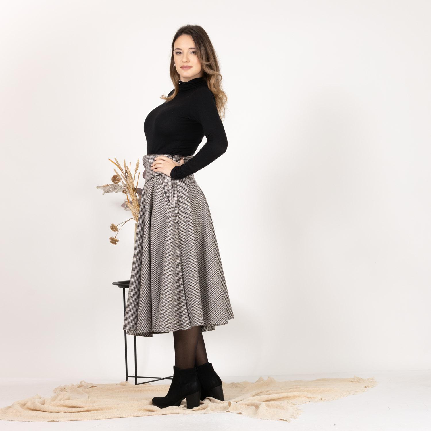 This skirt is ideal for fall and winter, pairing beautifully with a turtleneck, knit sweater, or fitted shirt. Pair it with ankle boots and a long coat for a sophisticated, vintage-inspired look. Whether worn to the office, at a coffee party, or on a weekend stroll, it embodies understated sophistication and effortless style.