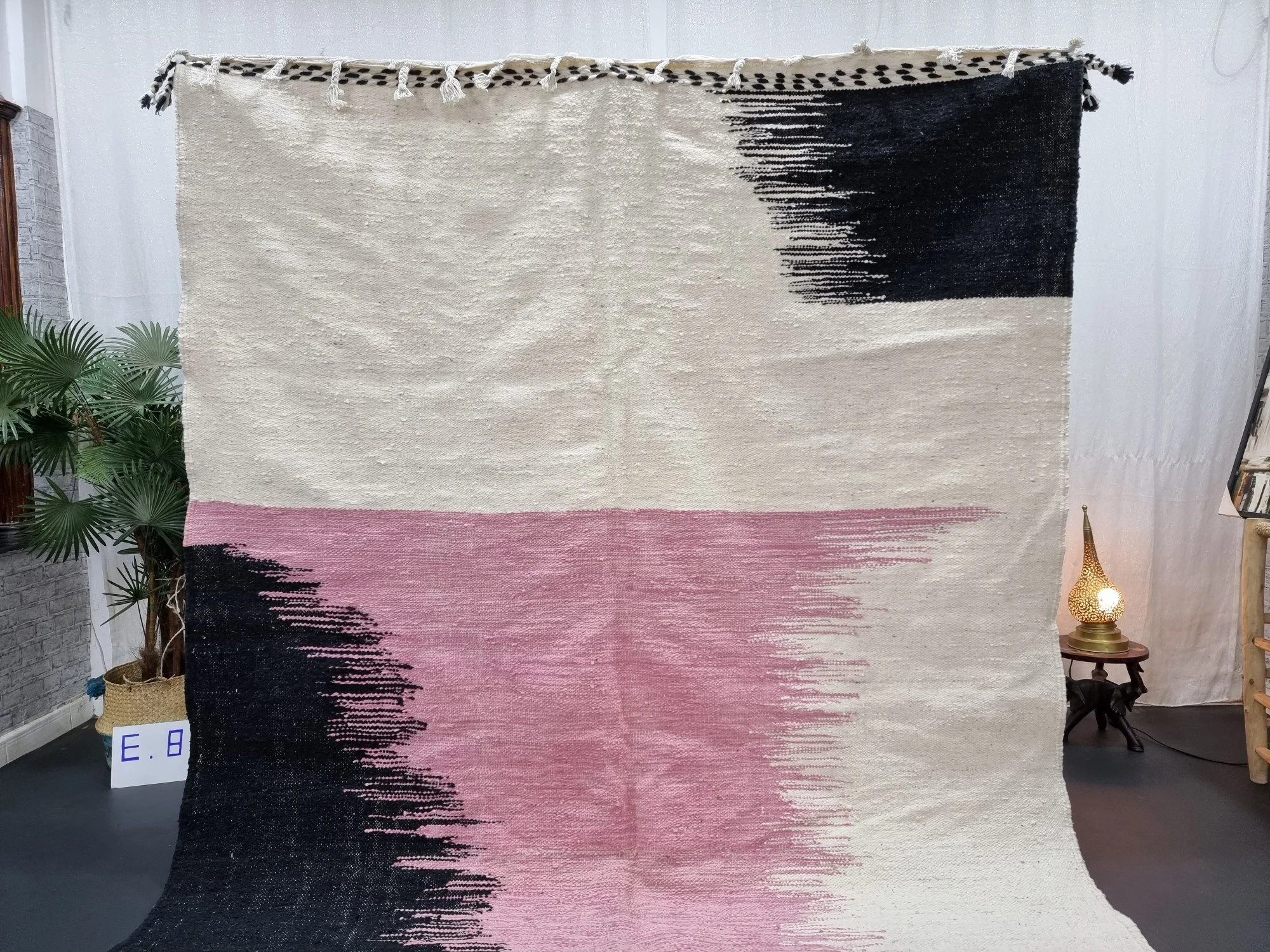 Inspired by the natural smudges of ink painting and the contrasting tension of modern aesthetics, this rug features a striking black and pink base, with soft pink transitioning naturally like “poetic brushstrokes freely swished across a brush.” Black and white, like “the tranquil smudge of ink on rice paper,” weave together the relaxed, oriental aesthetic with the coolness of modern design, transforming the rug into a “walkable canvas.”