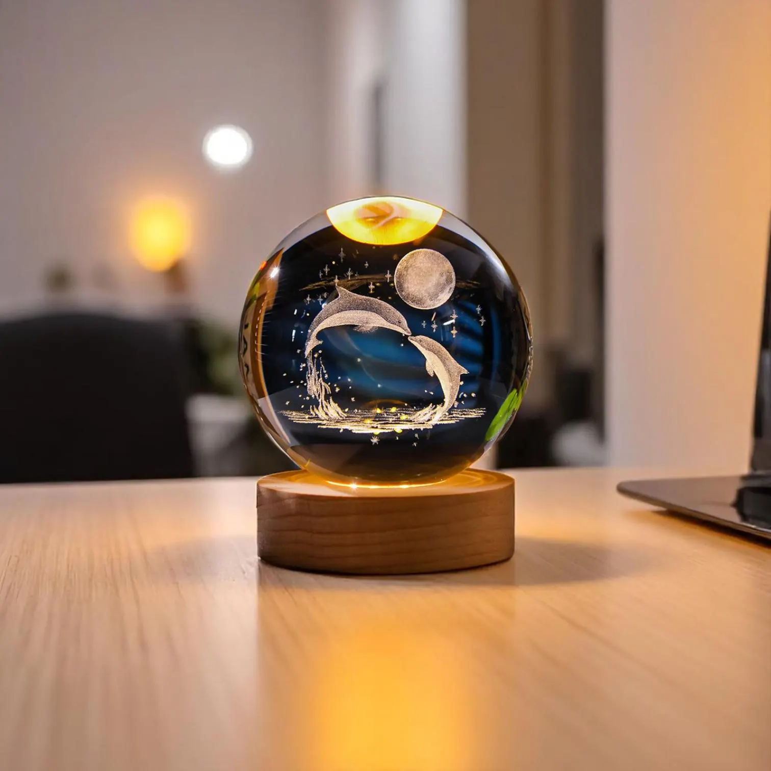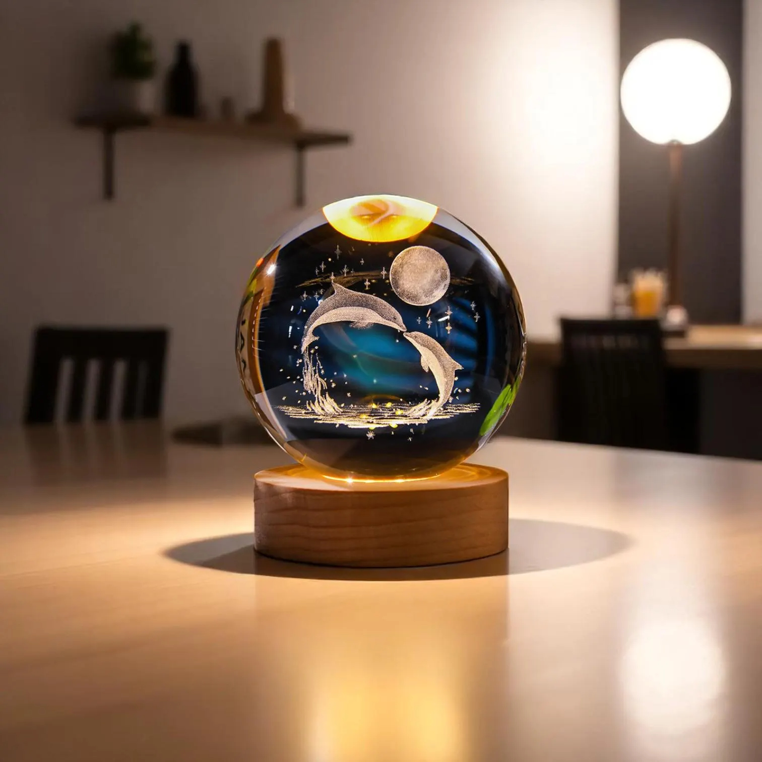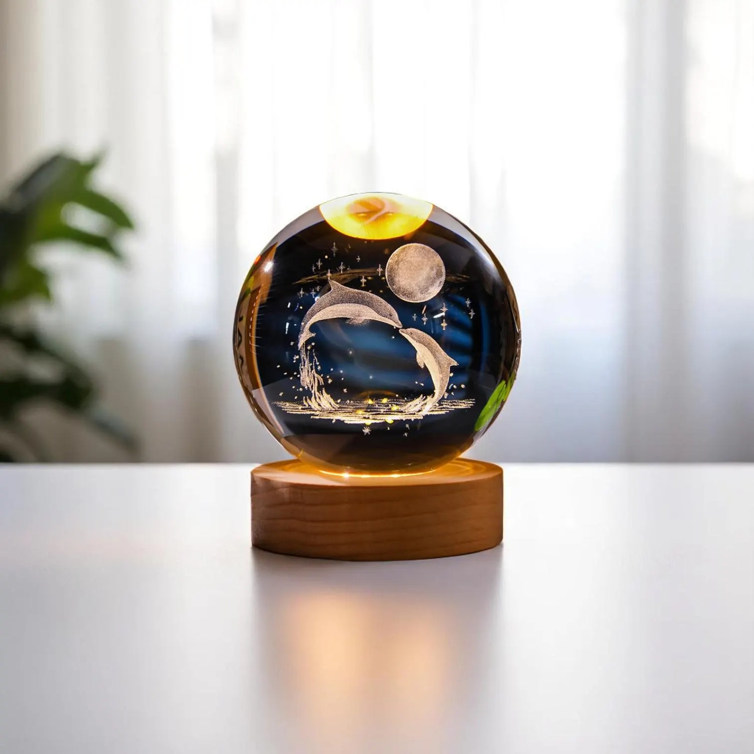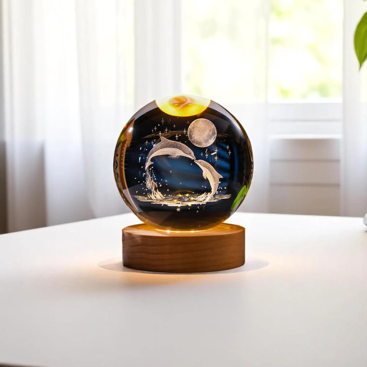Warm Lighting: A built-in soft light source diffuses warm light from the bottom of the crystal ball, gently illuminating the dolphins and moonlit night, creating a tranquil and soothing atmosphere. The soft, non-glaring light creates an immersive experience, evoking a gentle seaside night.