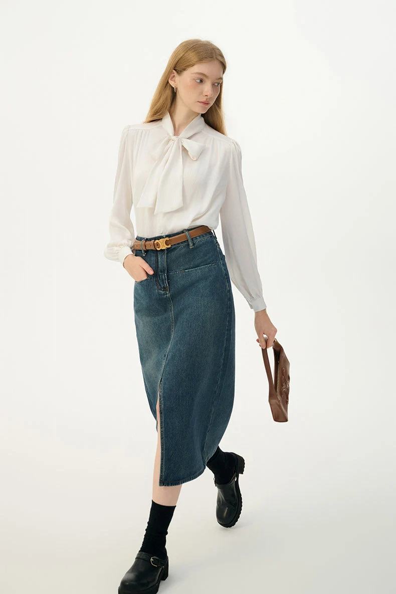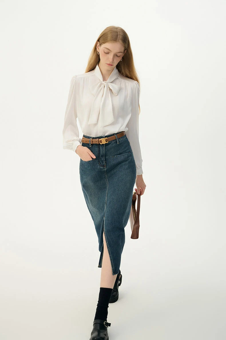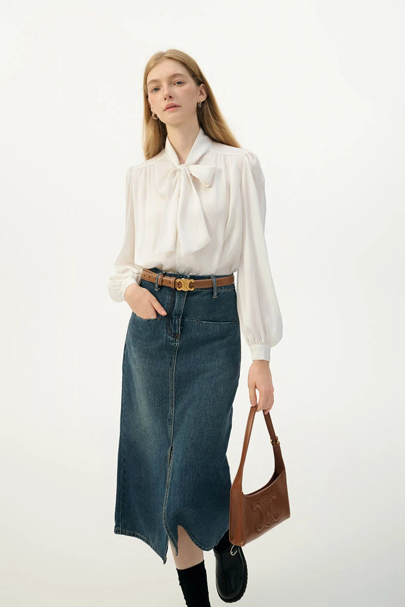 Straight hem, easy to tuck into skirts, versatile with skirts, jeans, or trousers