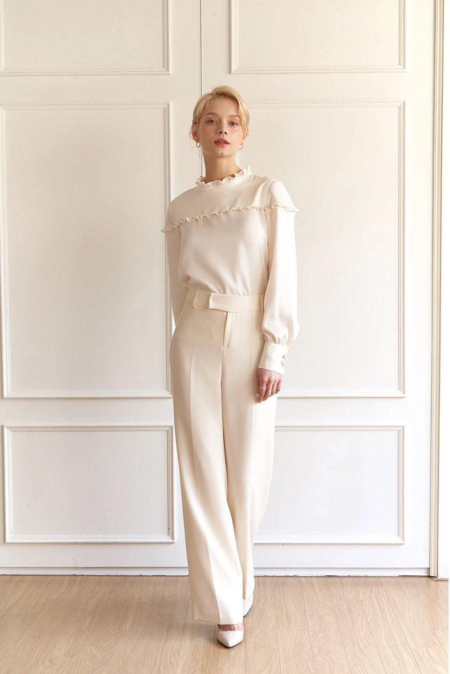 Be the first to review “Ivory-colored ruffled satin shirt”