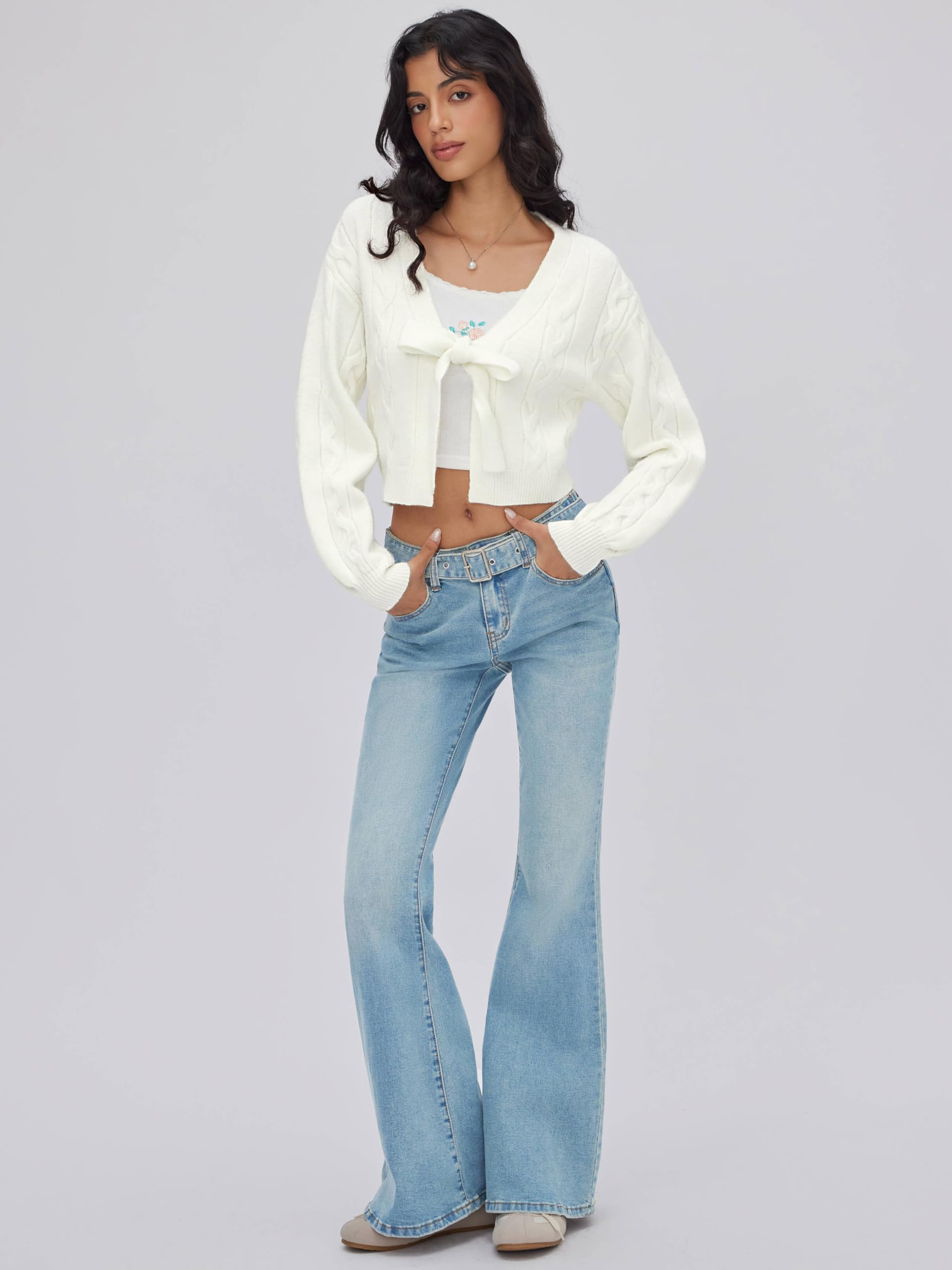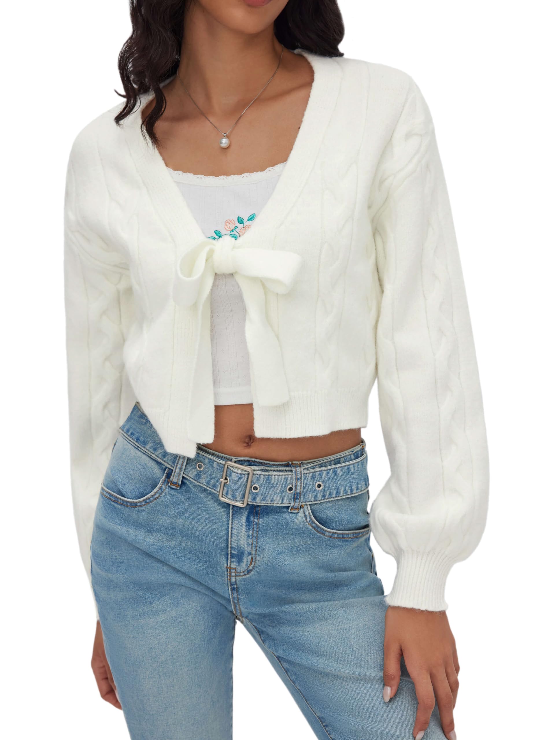 Be the first to review “Ivory-colored tie-front knit cardigan”