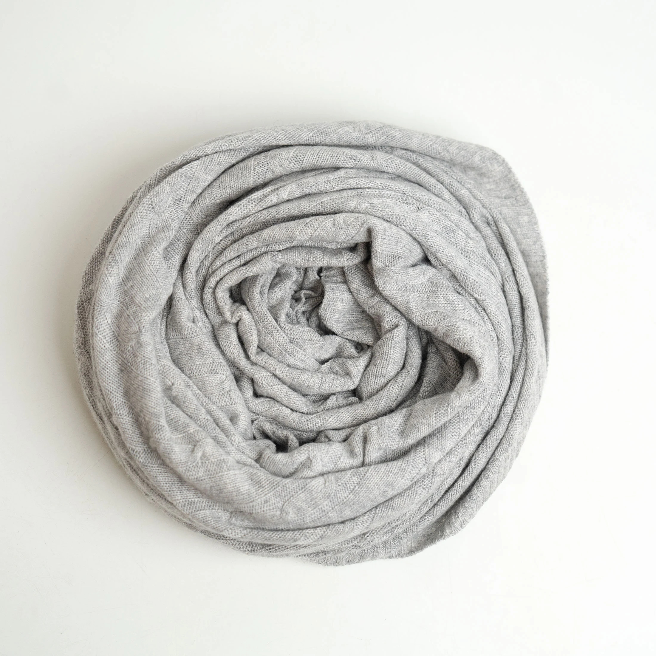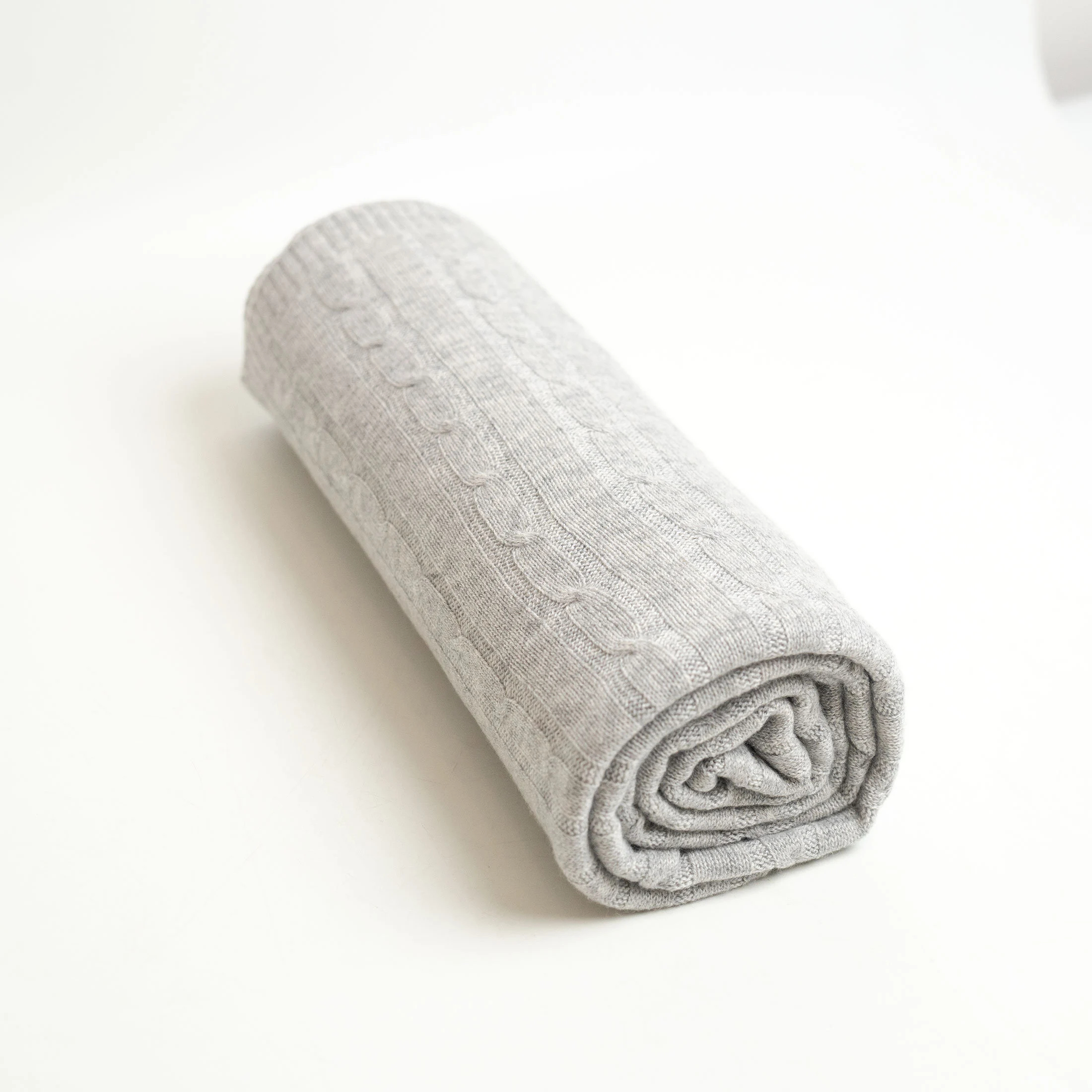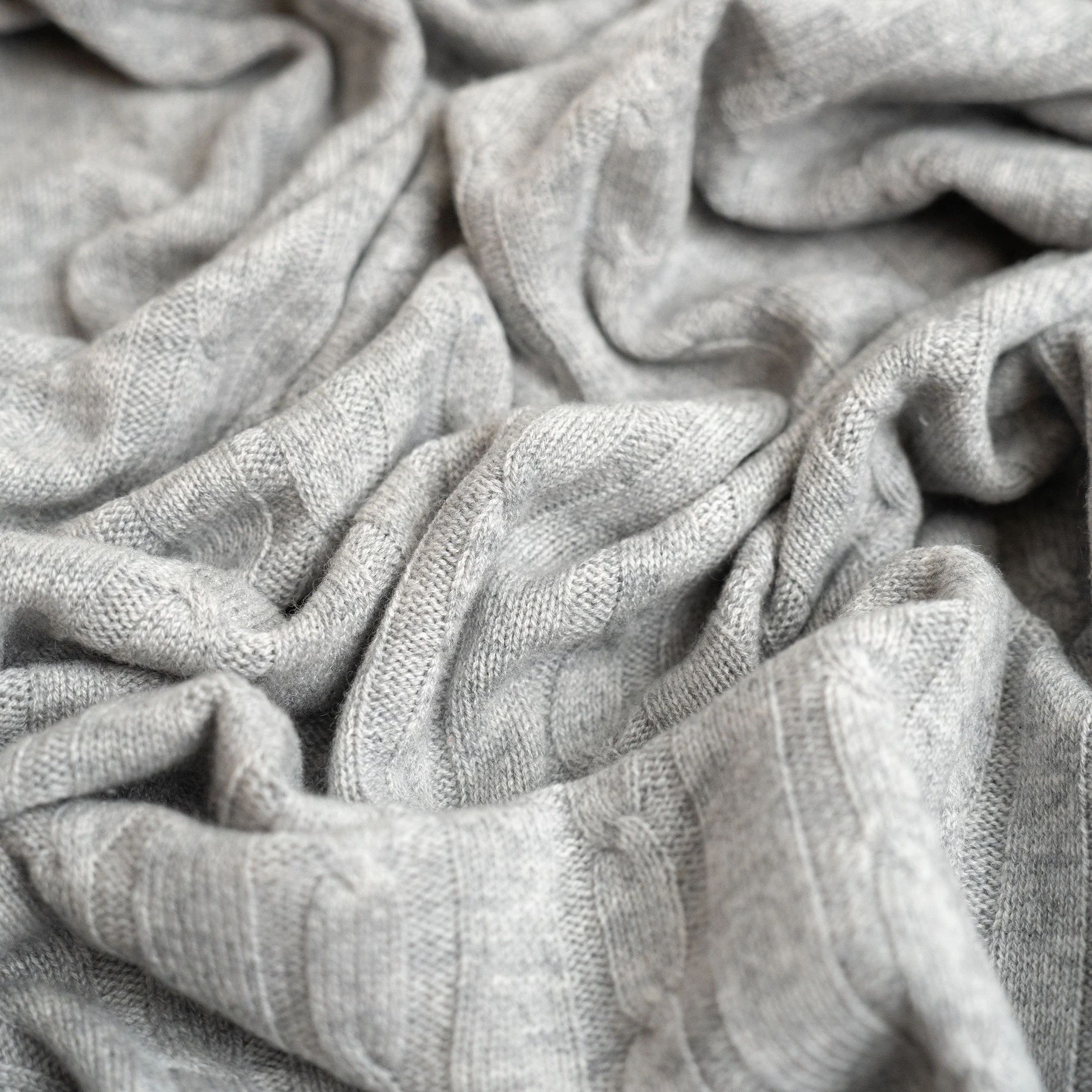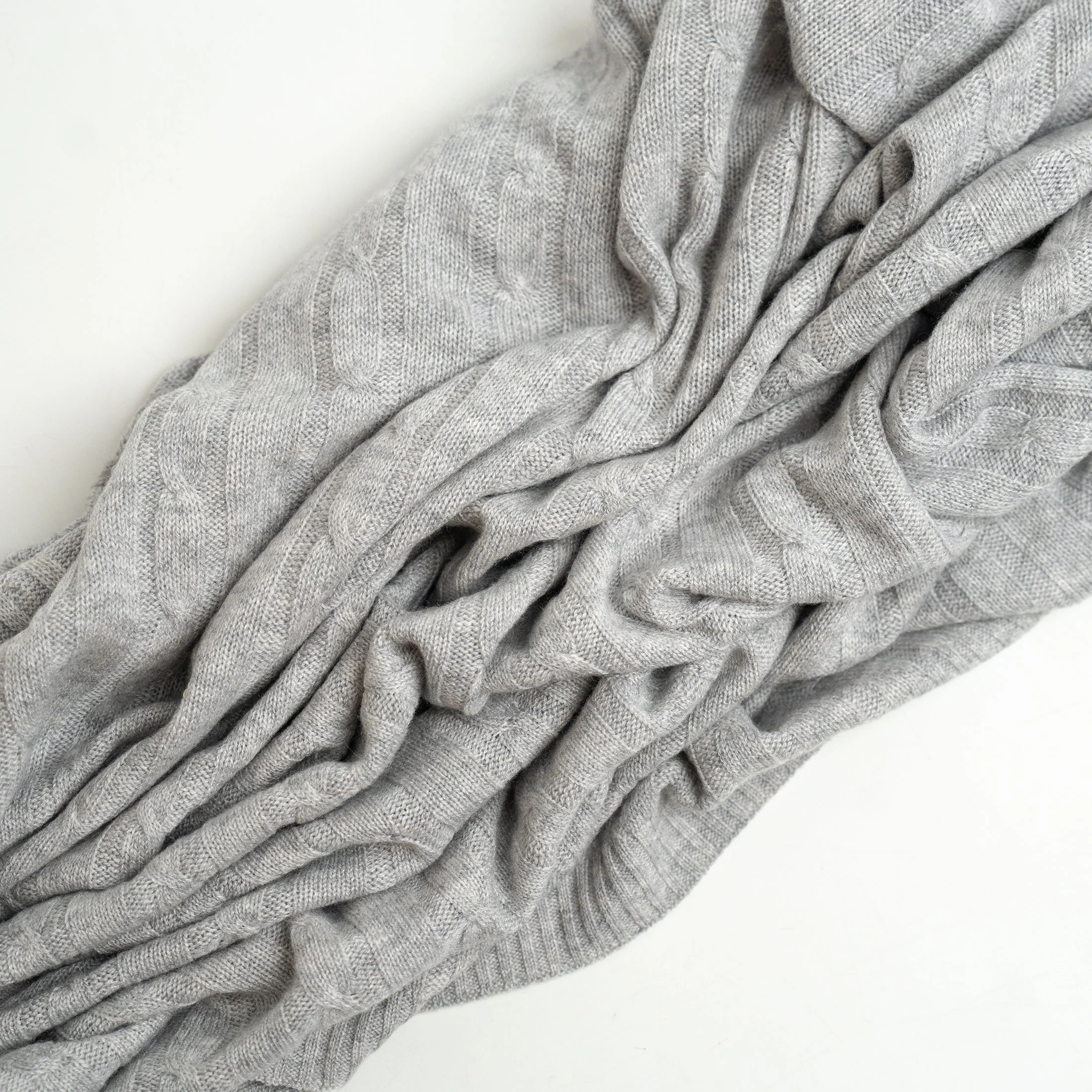 Light grey cable knit blend throw blanket