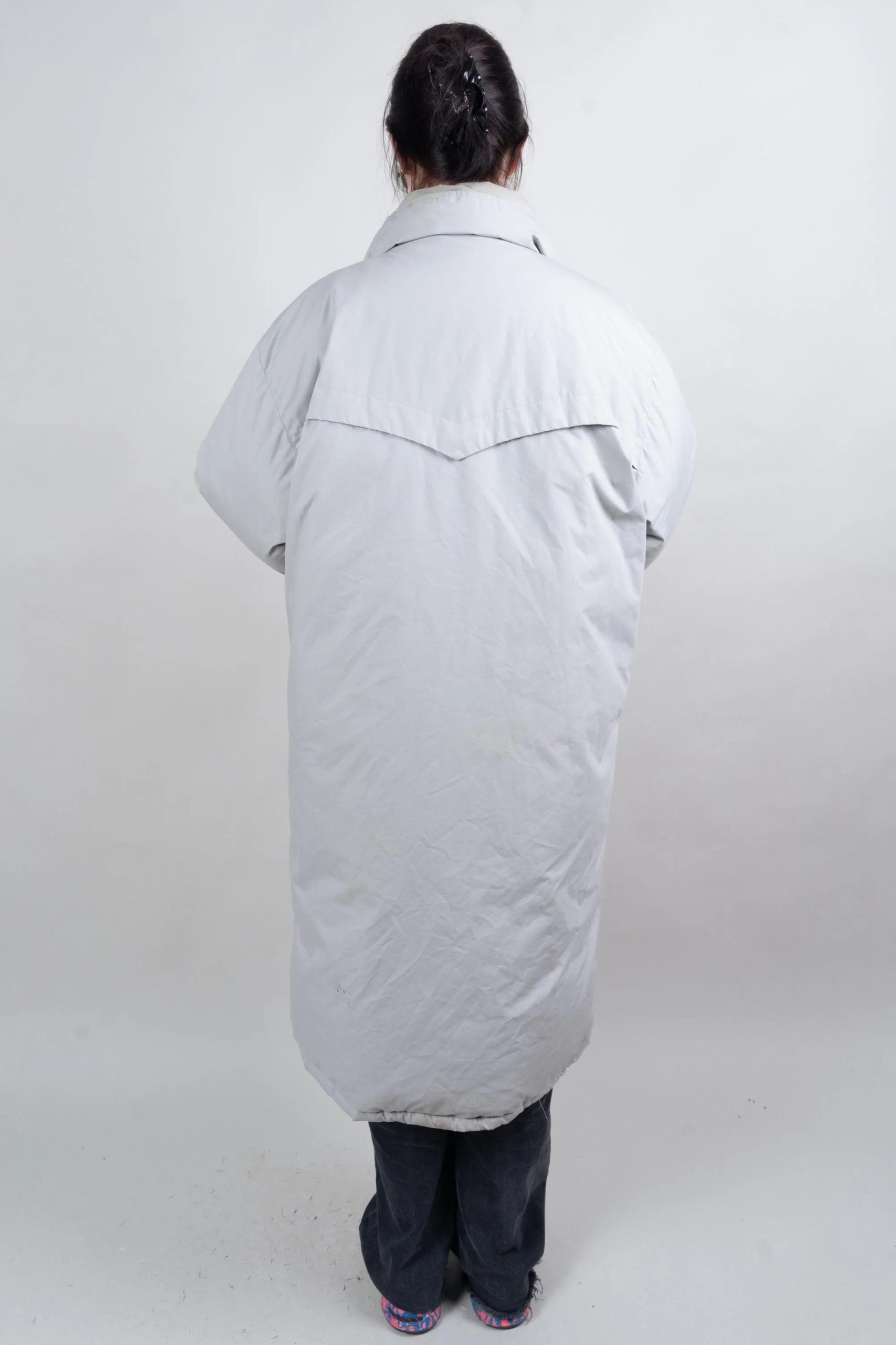This warm and comfortable down jacket comes in a clean, light grey color and is designed for winter commutes and weekend outings. The long silhouette provides all-around warmth without being bulky; the stand-up collar effectively locks in neck heat. A smooth zipper is concealed beneath the snap-buttoned windproof placket to effectively block out cold wind; elastic cuffs keep warm and sleeves neat. Slanted hand pockets keep fingers warm and provide storage for small items. The smooth lining allows for easy layering with knitwear or hoodies—practical, simple, and comfortable from morning to night.