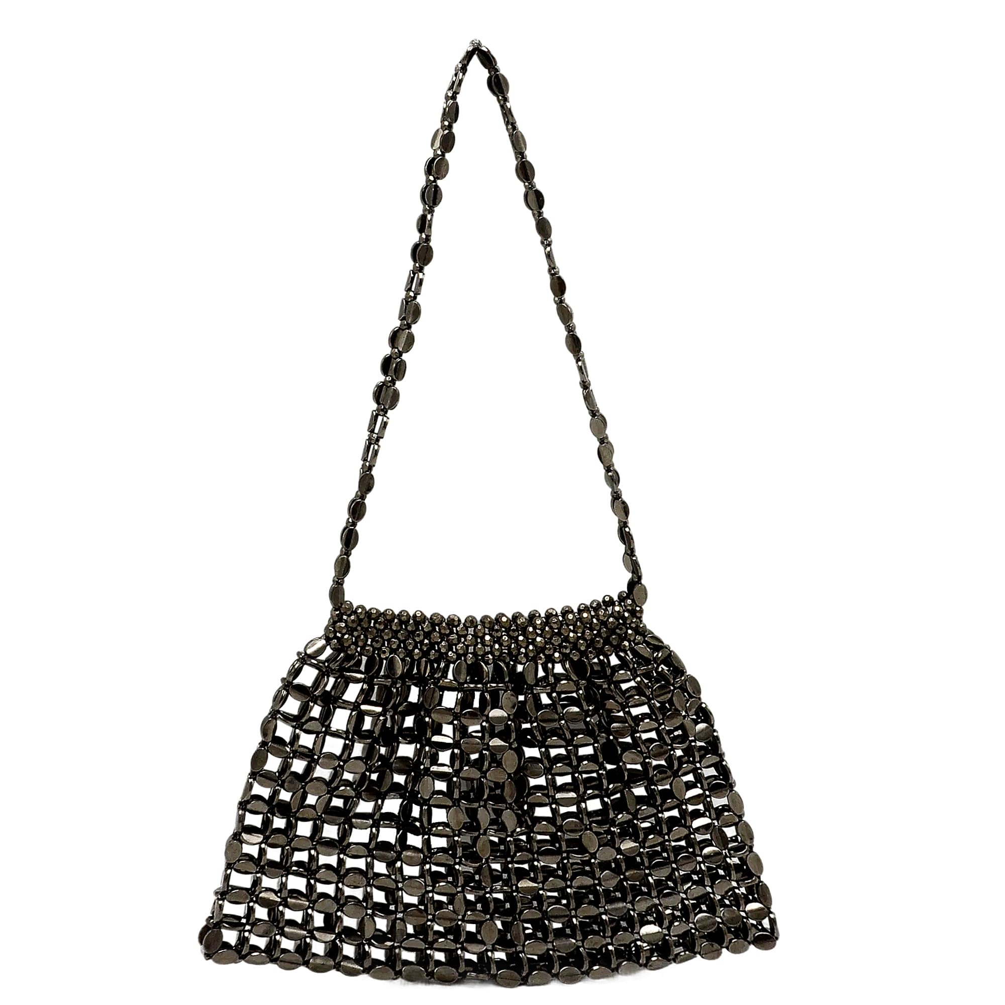 Sleek and eye-catching, this mini shoulder bag features a shimmering mesh body made from linked metallic discs for a bold, modern look. The beaded top band adds extra shine and structure, while the short chain strap makes it easy to wear on the shoulder or carry by hand—perfect for parties, nights out, and special occasions.