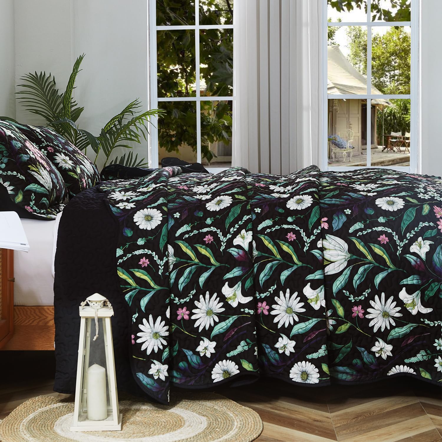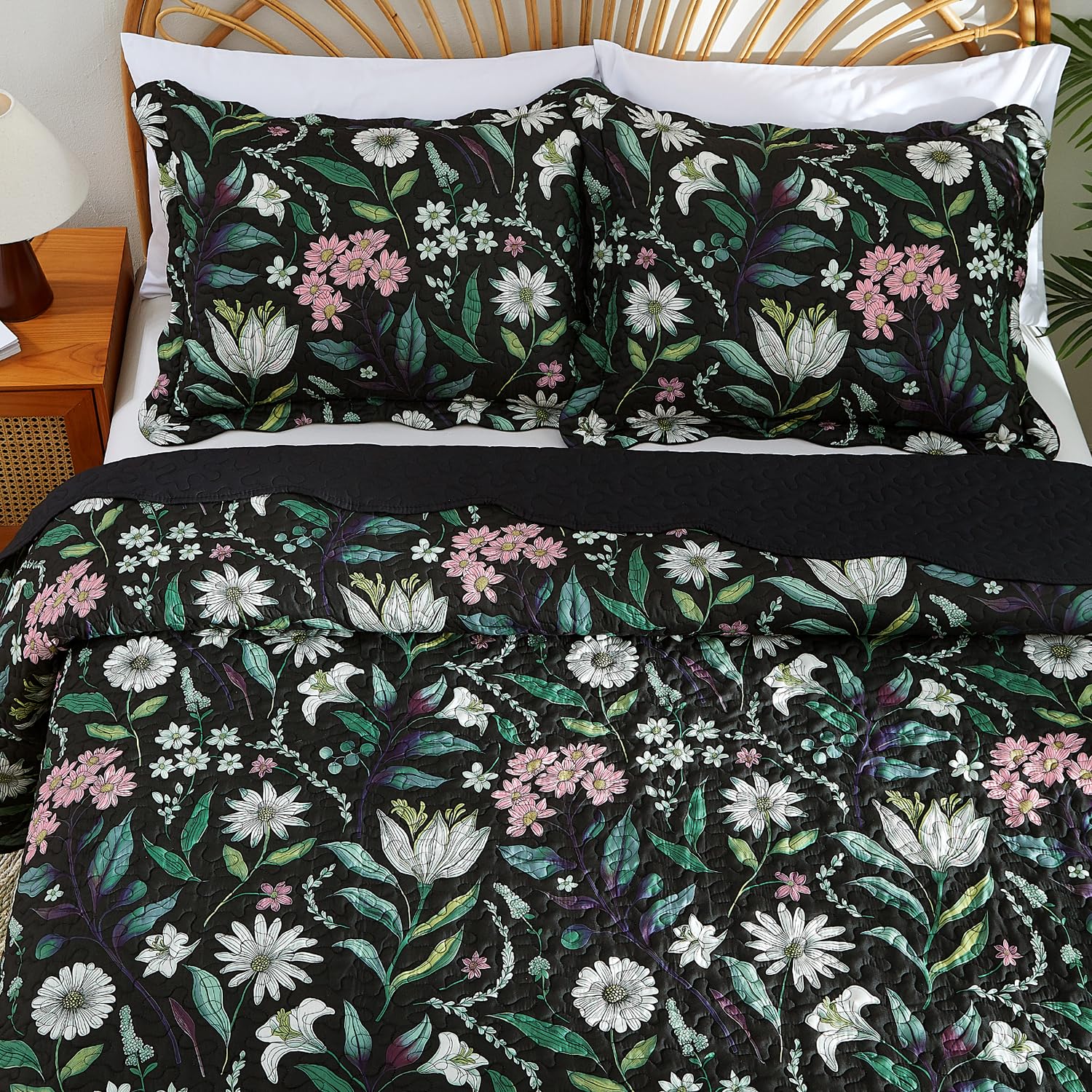 Abundant lilies, daisies, and wildflowers adorn a deep black background—both eye-catching and elegant, making it a perfect choice for photos.