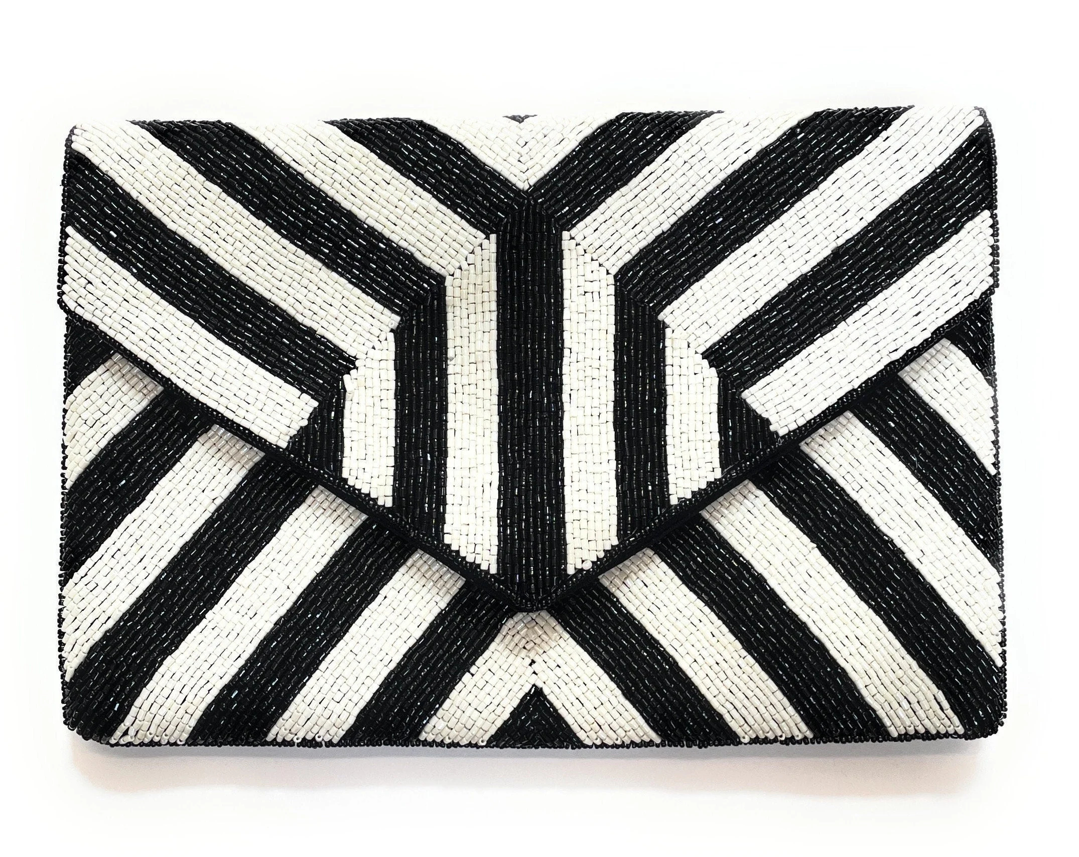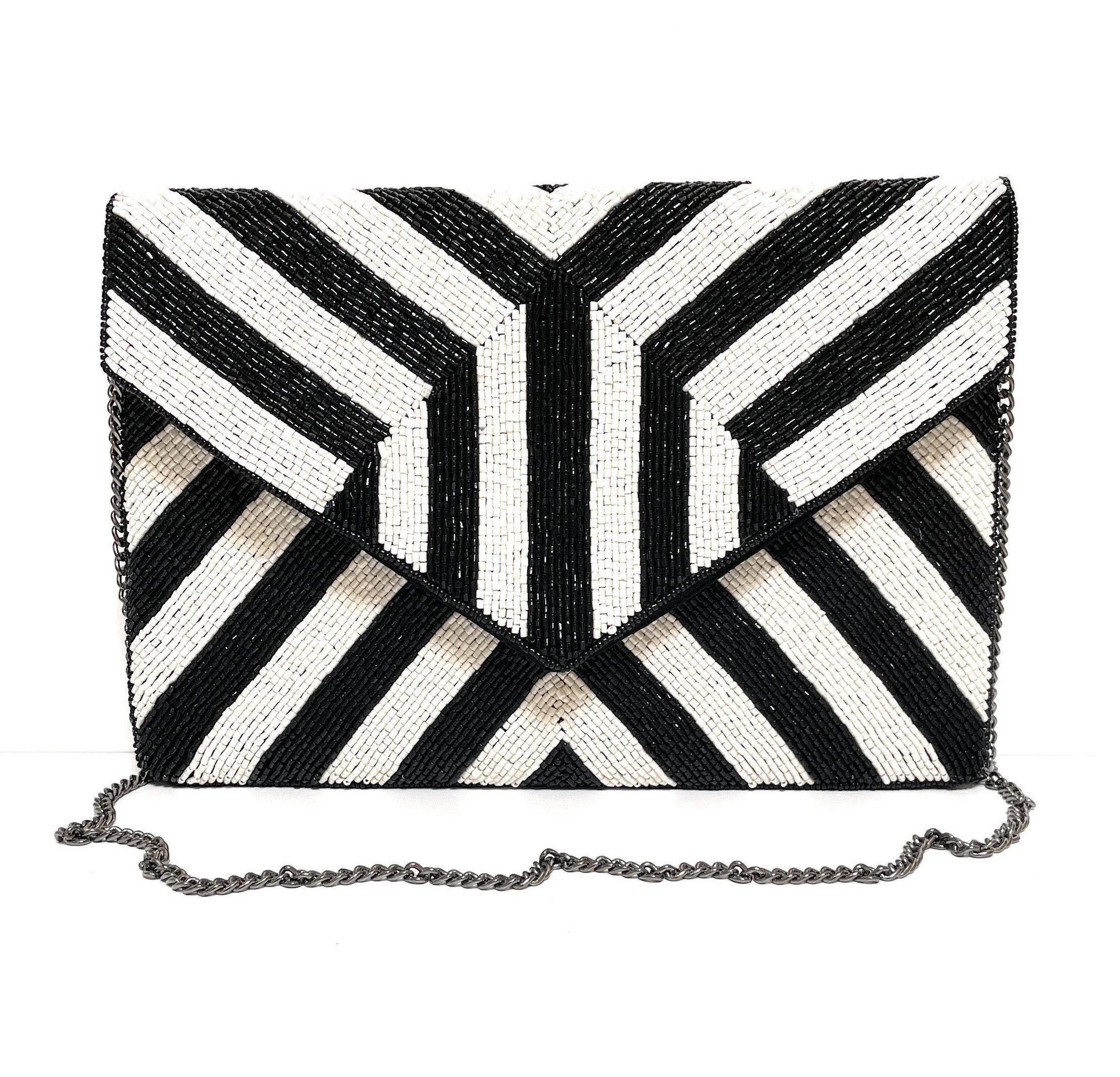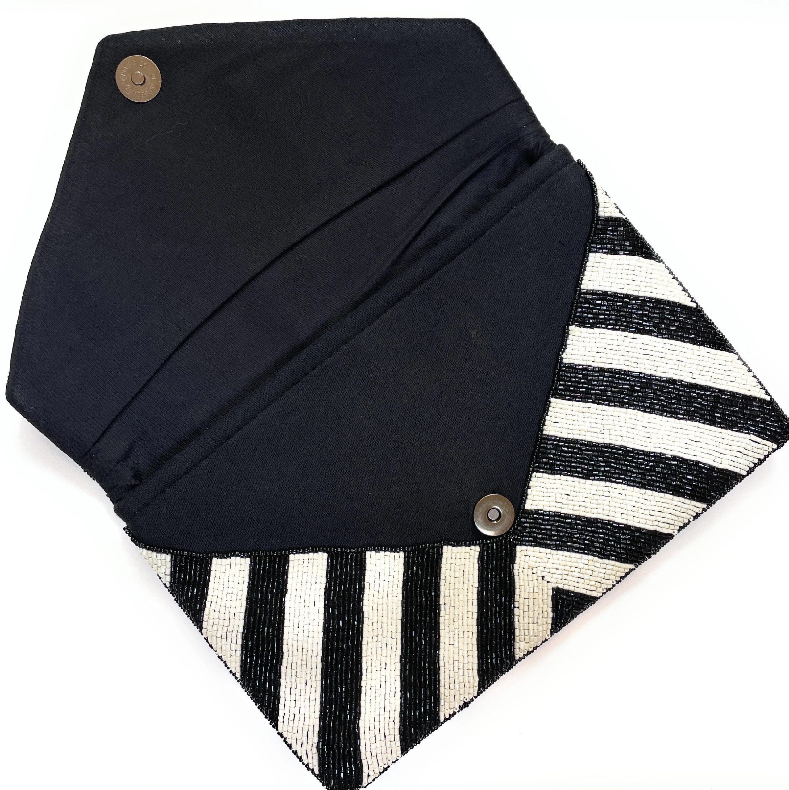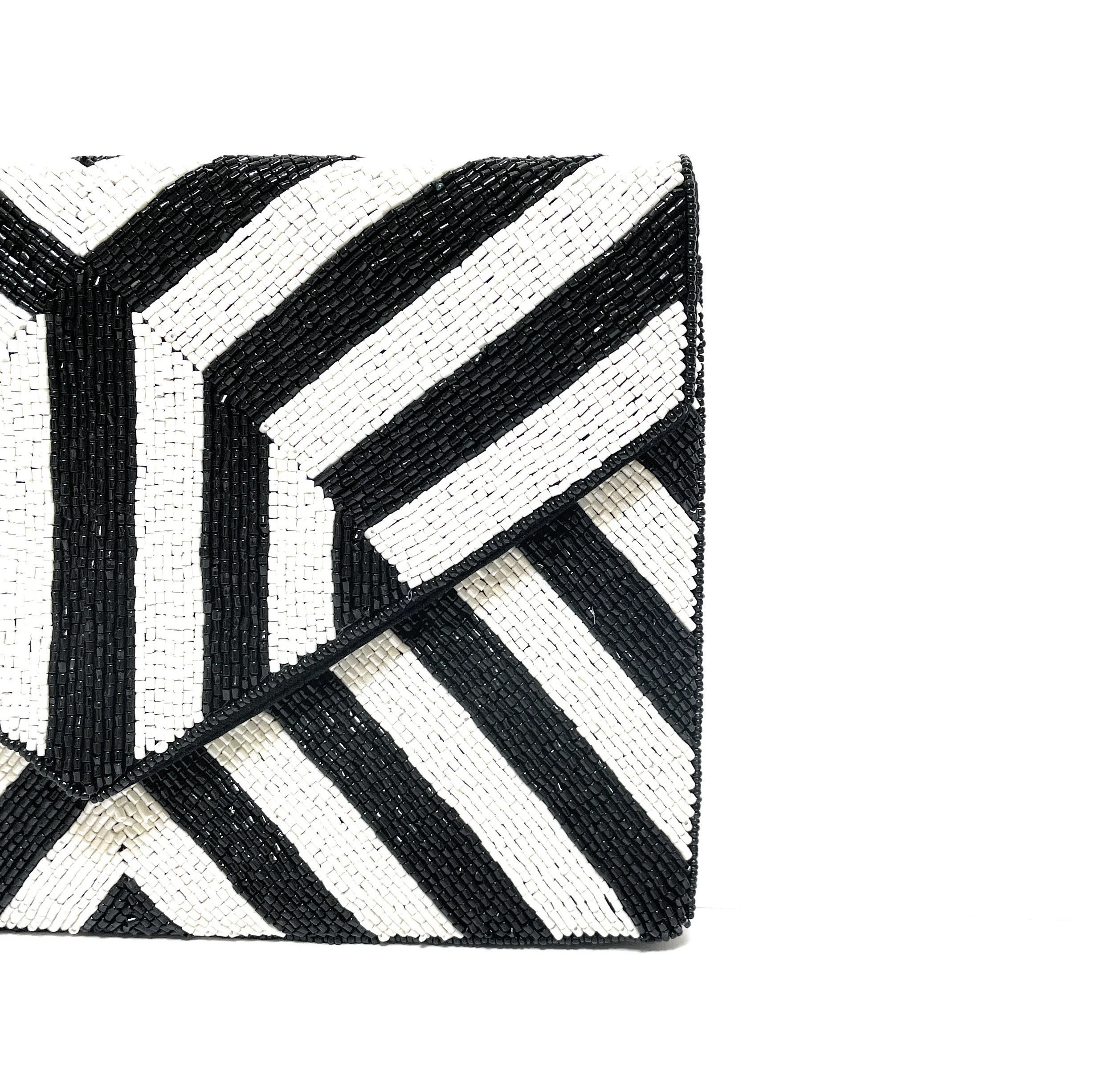 Designed with minimalist, symmetrical geometric stripes as its core language, black and white beads interweave to create a dynamic V-shaped and diagonal pattern, embodying the geometric order of modern art with the sophisticated versatility of a classic black and white combination. This style blends the restrained aesthetic of minimalism with the exquisite texture of hand-beaded craftsmanship, making it a discreet tool for urban commuters and minimalist style enthusiasts to create a sophisticated everyday look.
