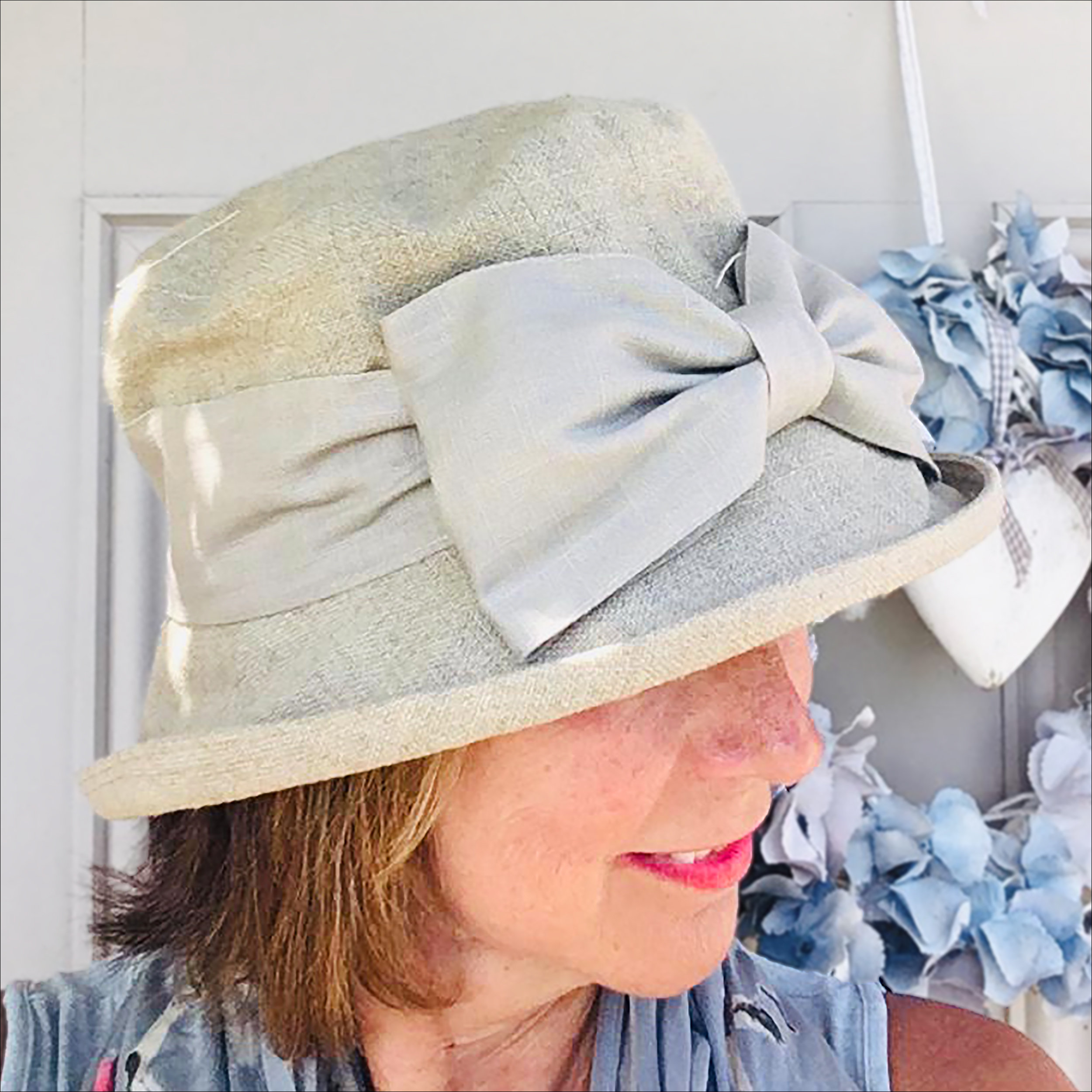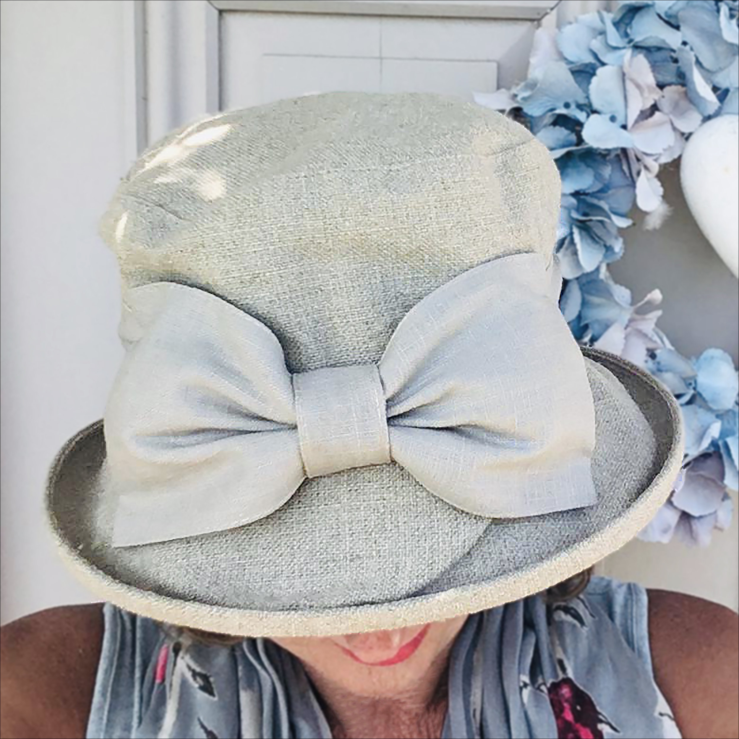 The soft crown structure and slightly relaxed silhouette flatter the face without appearing stiff. A three-dimensional bow made of the same fabric adorns the front, carefully folded and secured for a clean and simple look. This bow is the finishing touch: eye-catching enough without being overly complicated, maintaining a refined and elegant feel.