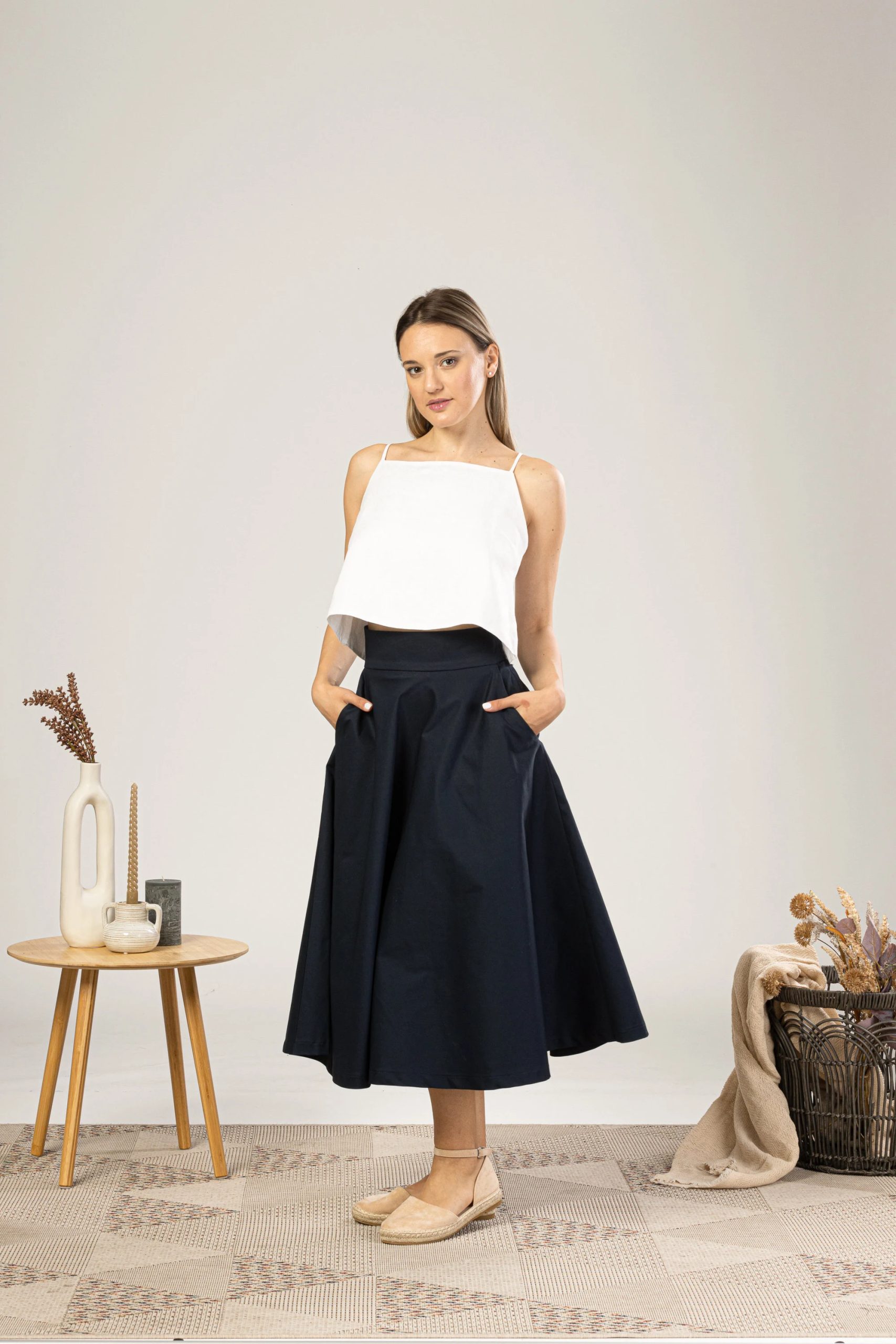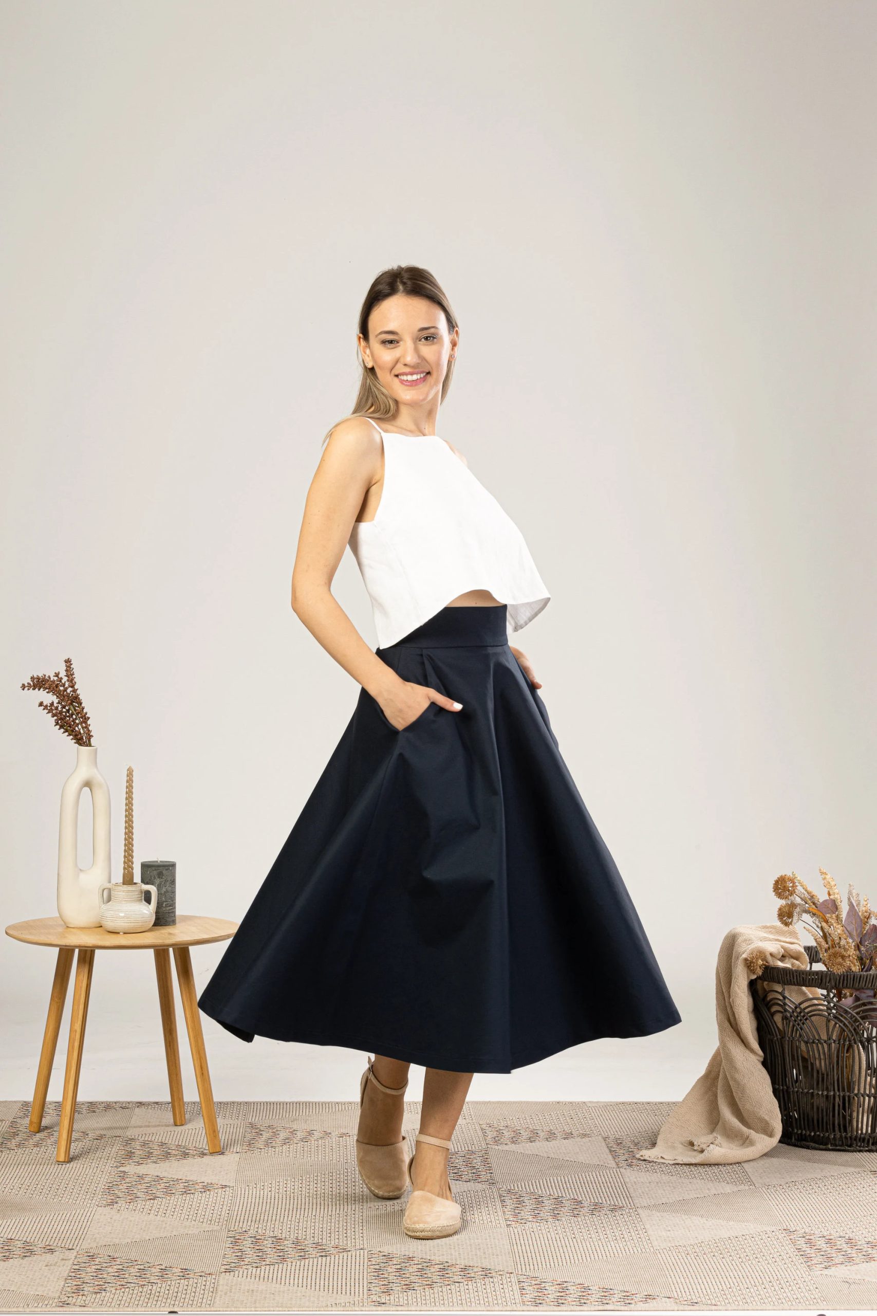 This skirt is perfect for spring, summer, and fall, pairing effortlessly with a shirt, knit top, or simple T-shirt. Pair it with espadrilles for a casual daytime look or heels for a sophisticated evening look. Whether worn to work, brunch, or a stroll through the city, it embodies timeless elegance and effortless modern style.