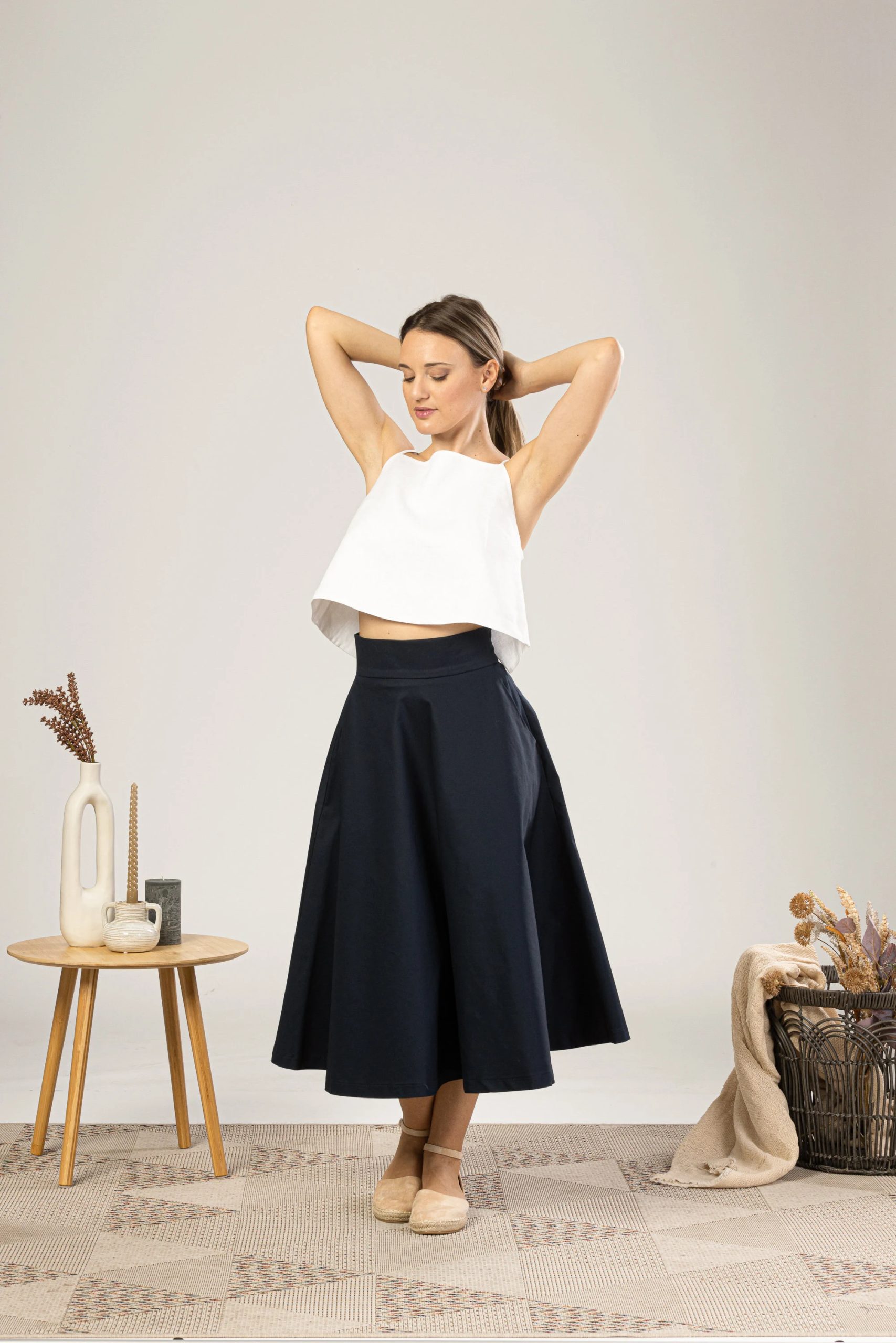 Be the first to review “Navy A-line midi skirt”