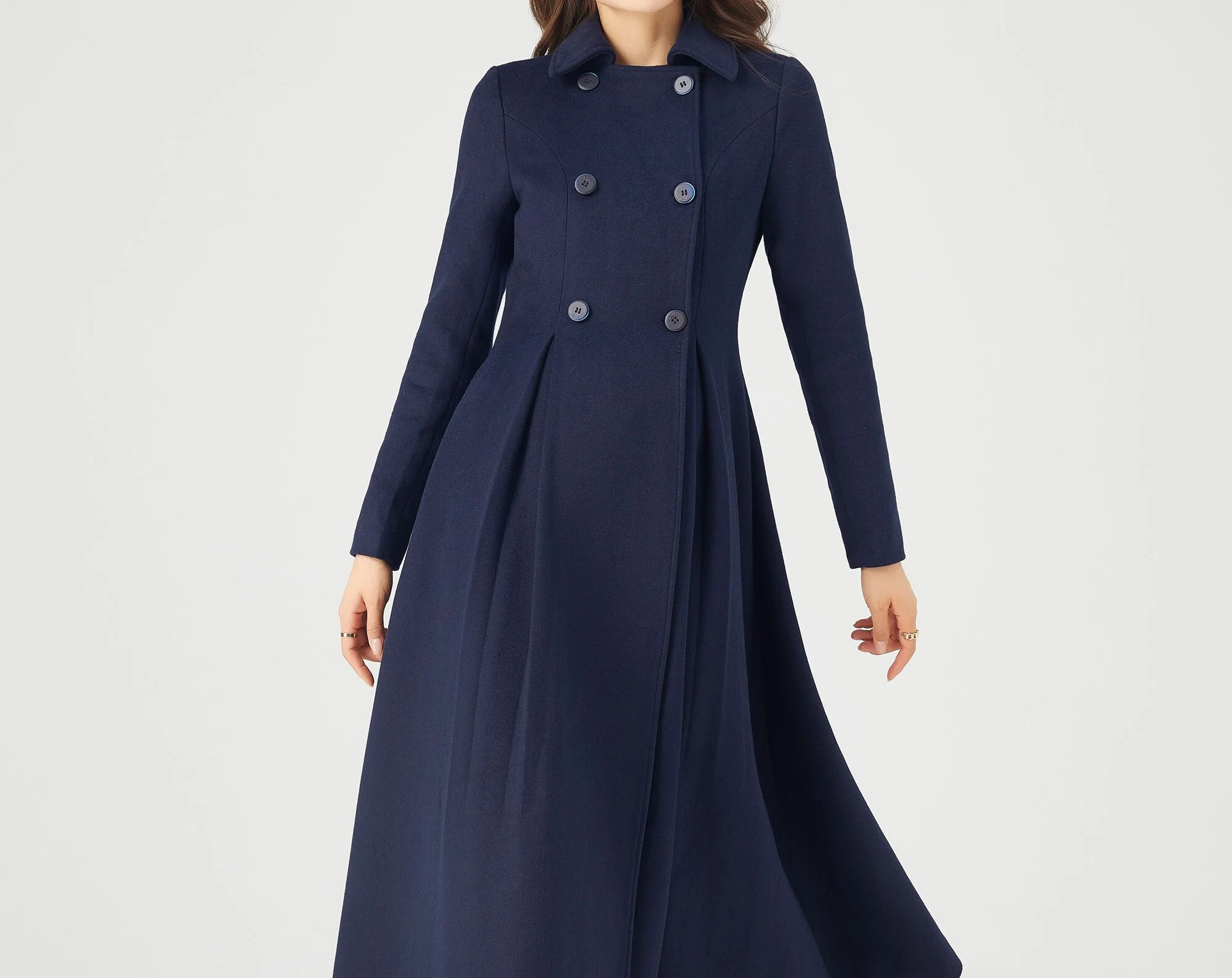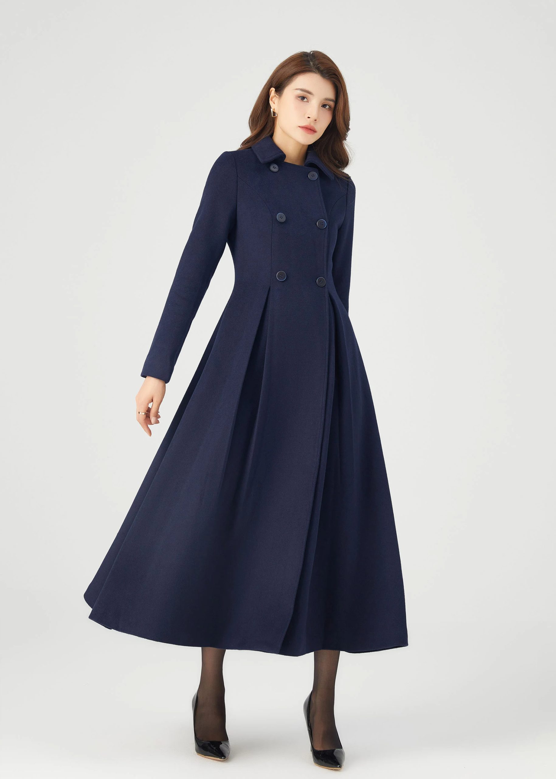 Be the first to review “Navy blue double-breasted A-line long coat”