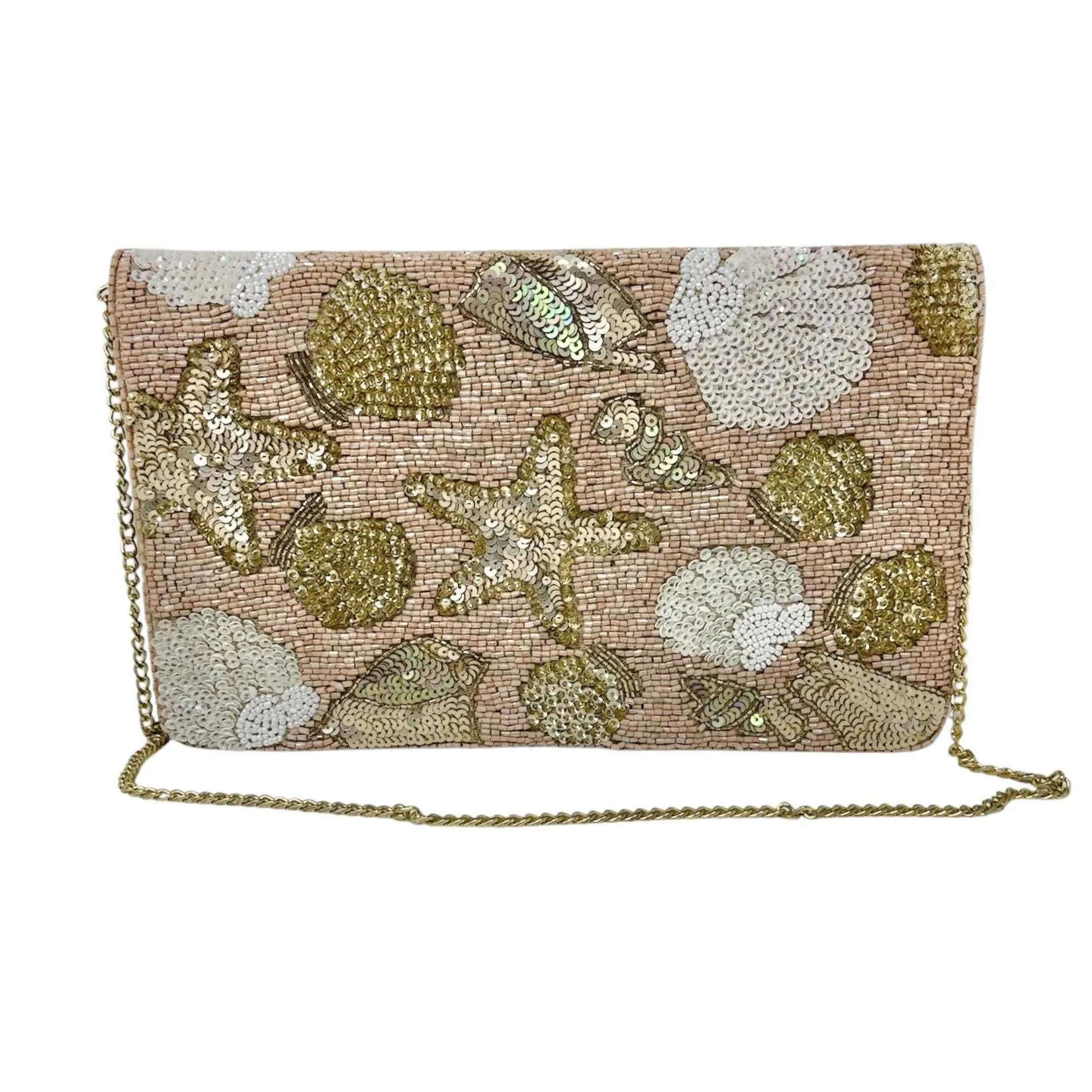 Summer Party: A sequined camisole + high-waisted shorts + platform sandals + this bag. The champagne gold and sequins create a vibrant party vibe, while the marine elements add a touch of holiday flair.