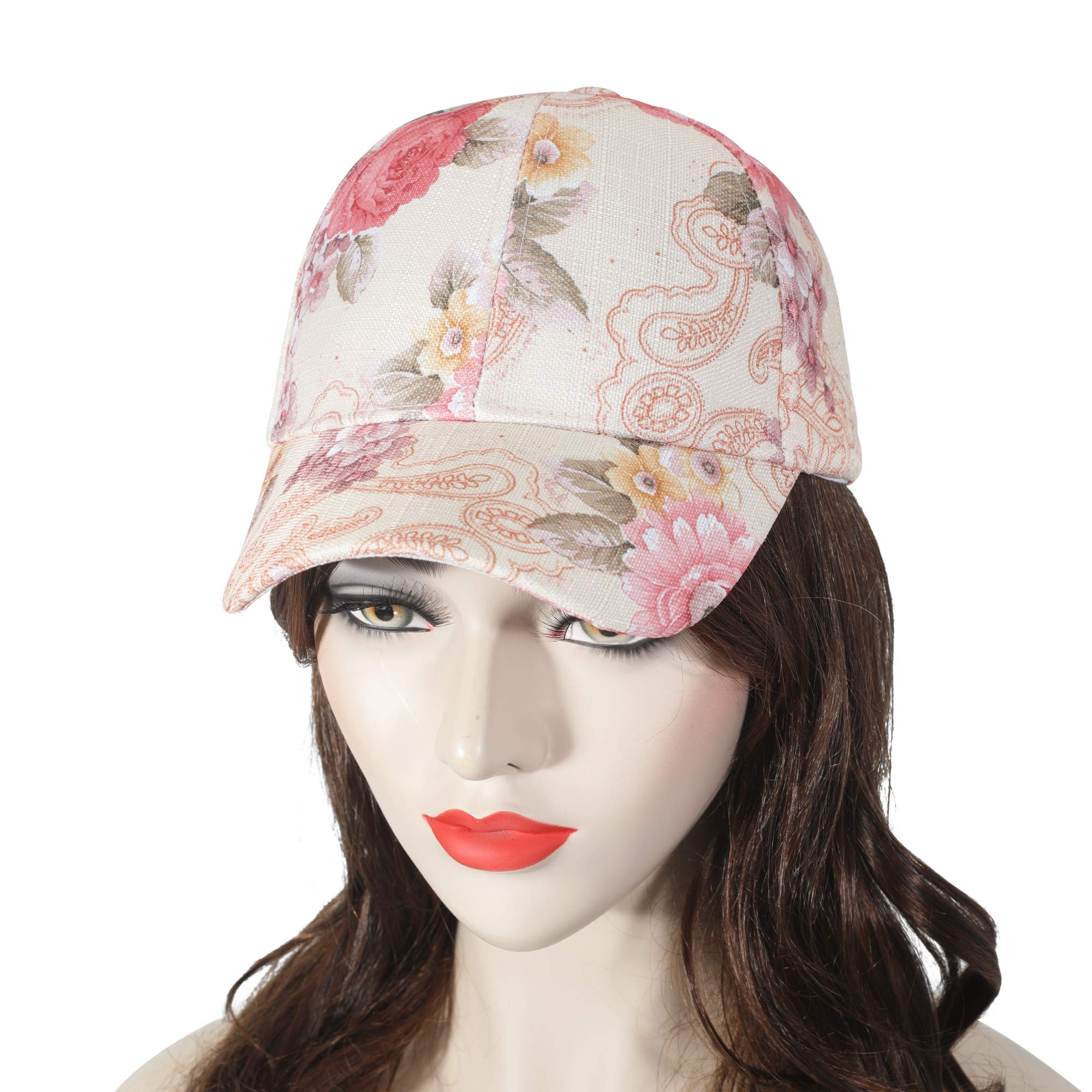 Off-white base + vibrant pink flowers + This baseball cap features a full paisley pattern, exuding a retro, pastoral style that’s gentle, refined, and understated, effortlessly adding a romantic touch to any outfit.