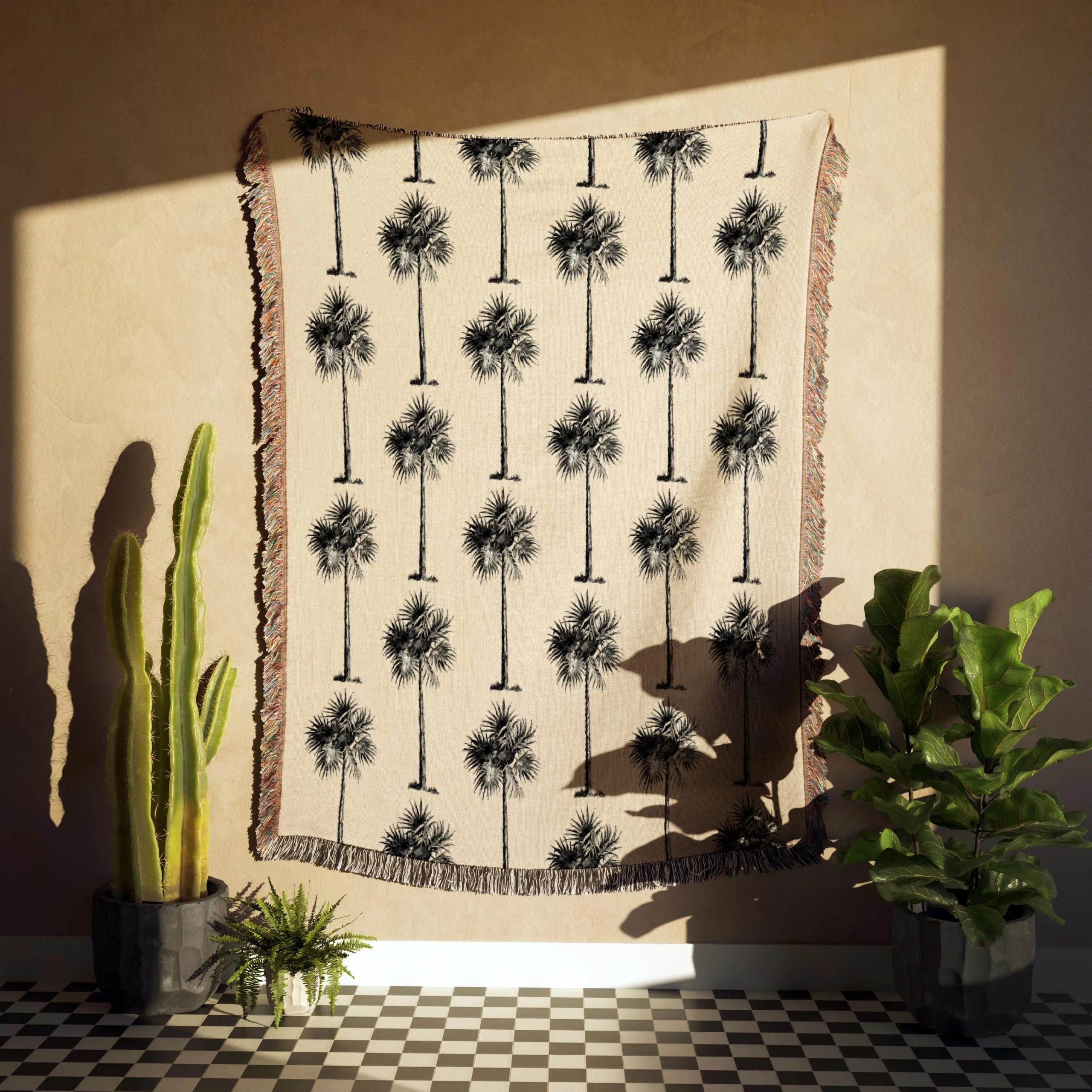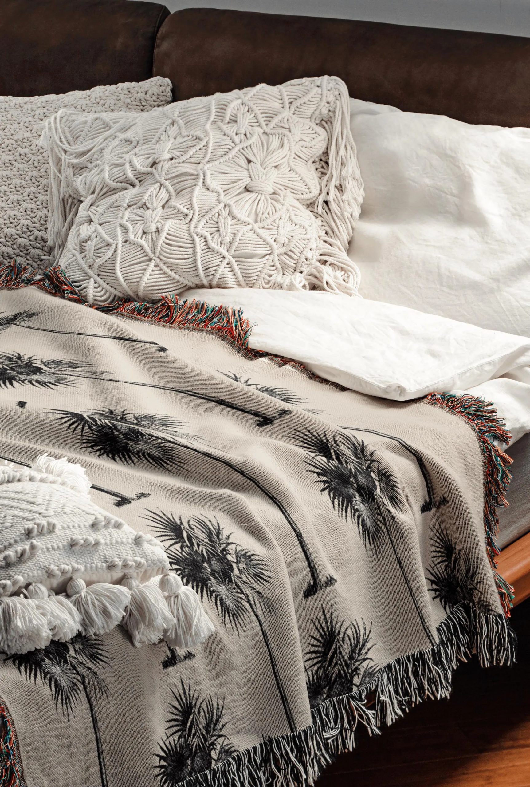Woven Construction, Not Printed – The palm pattern is woven into the fabric, offering visible texture, depth, and better durability than printed throws.