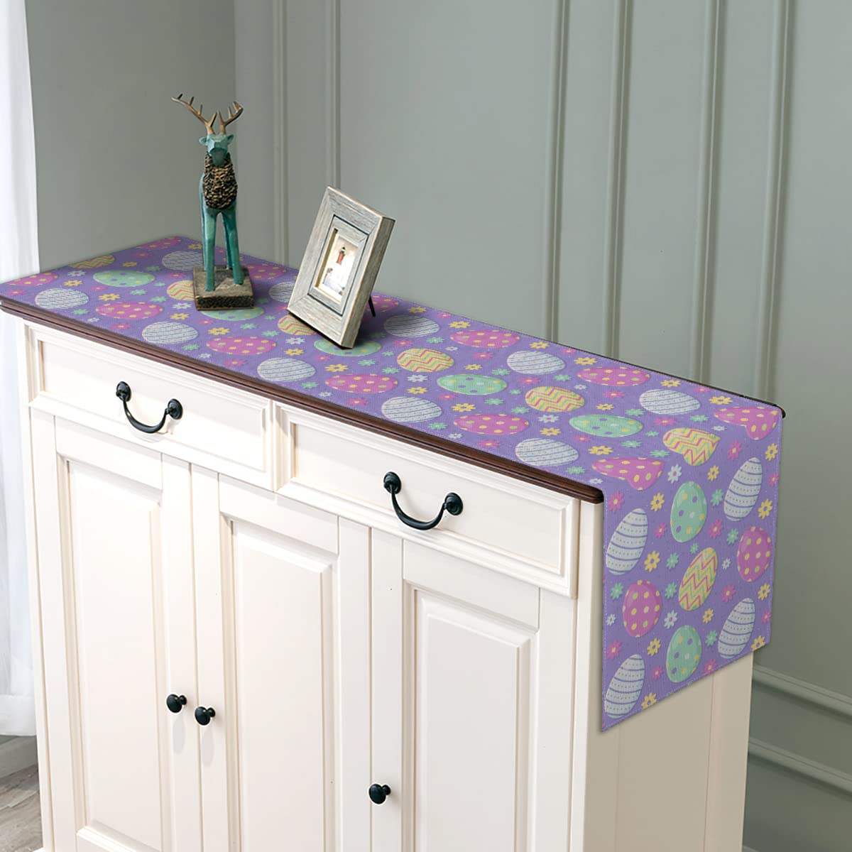 Create a cheerful spring atmosphere with this Easter table runner. A lavender background highlights a mix of patterned eggs and small florals, creating a festive focal point that elevates the table without overwhelming the guests. This linen-like polyester blend offers the feel of natural fibers, durability, and easy care, making it ideal for busy kitchens and seasonal entertaining.