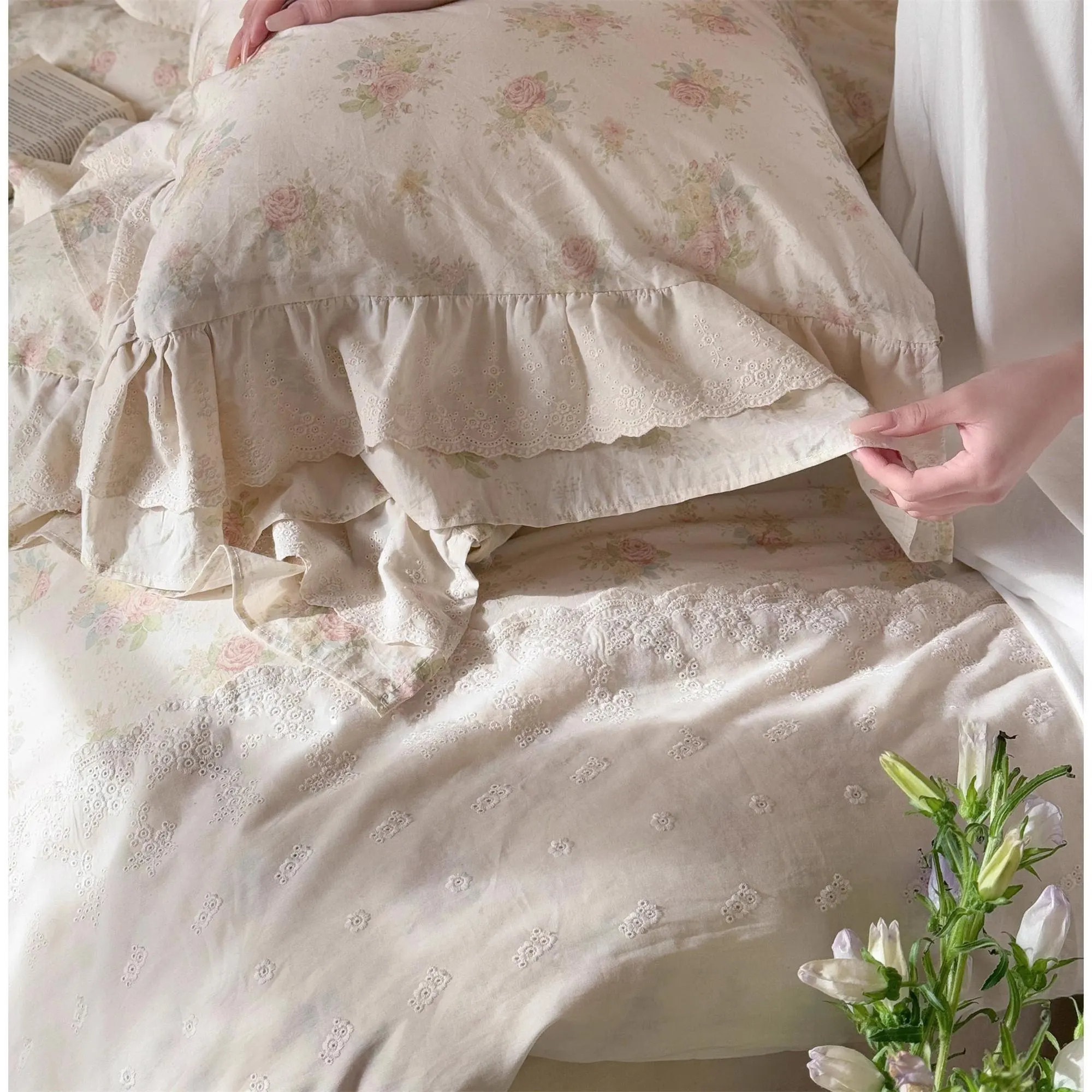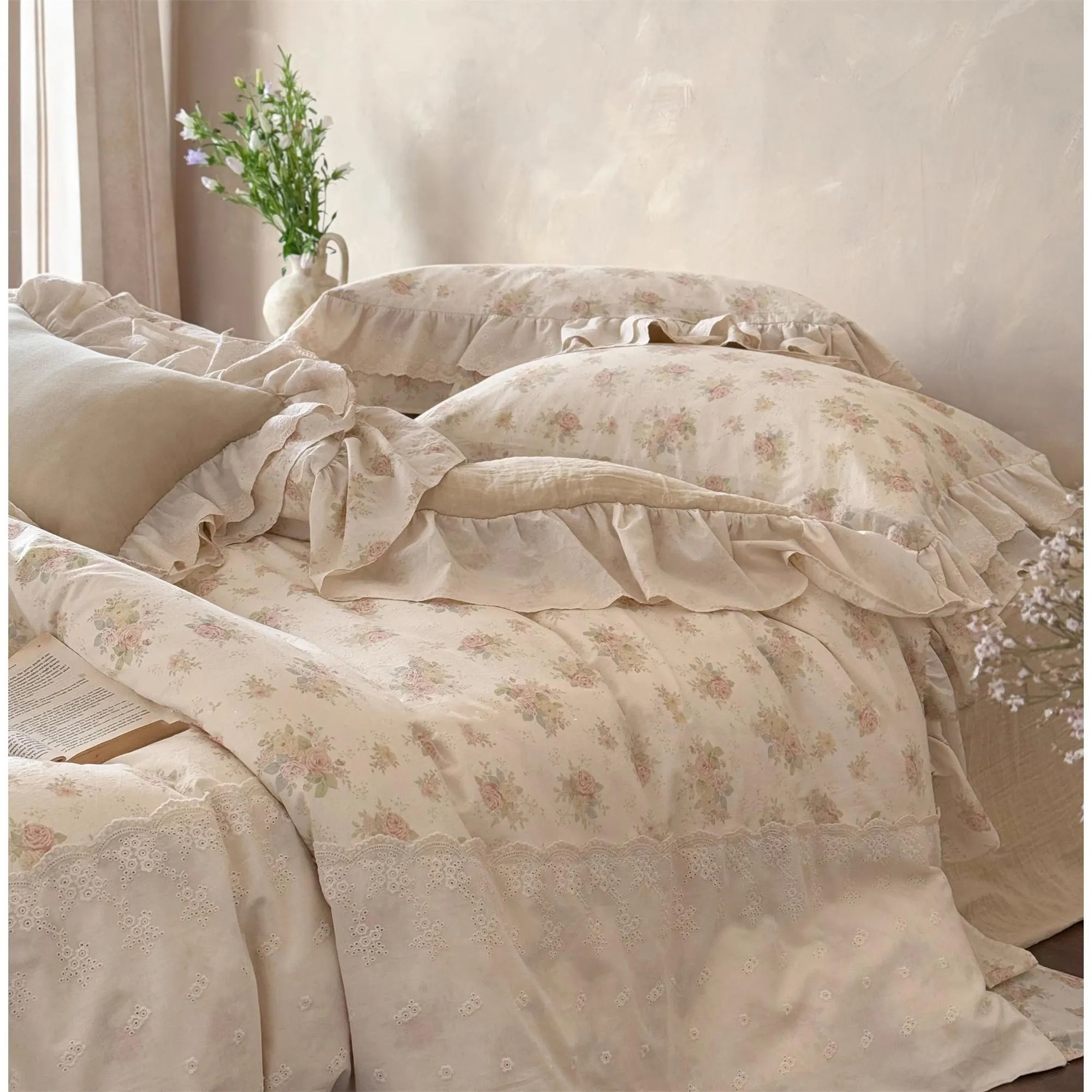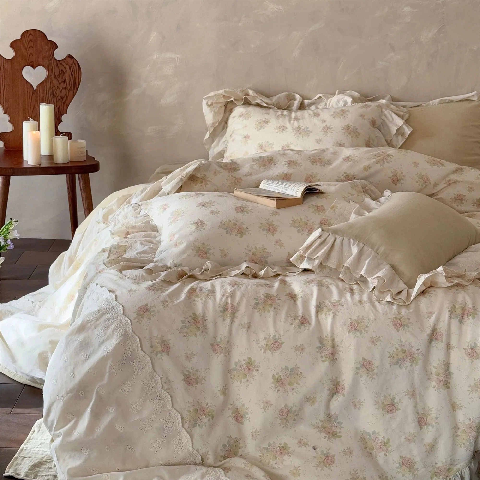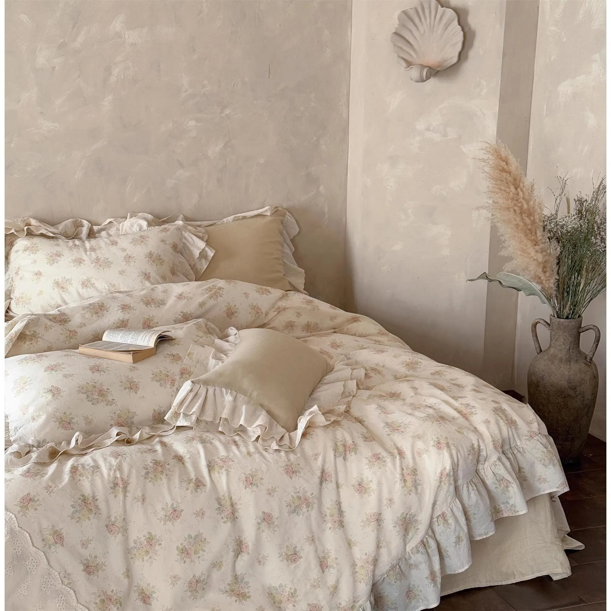 Be the first to review “Pastoral light-colored floral ruffled four-piece bedding set”