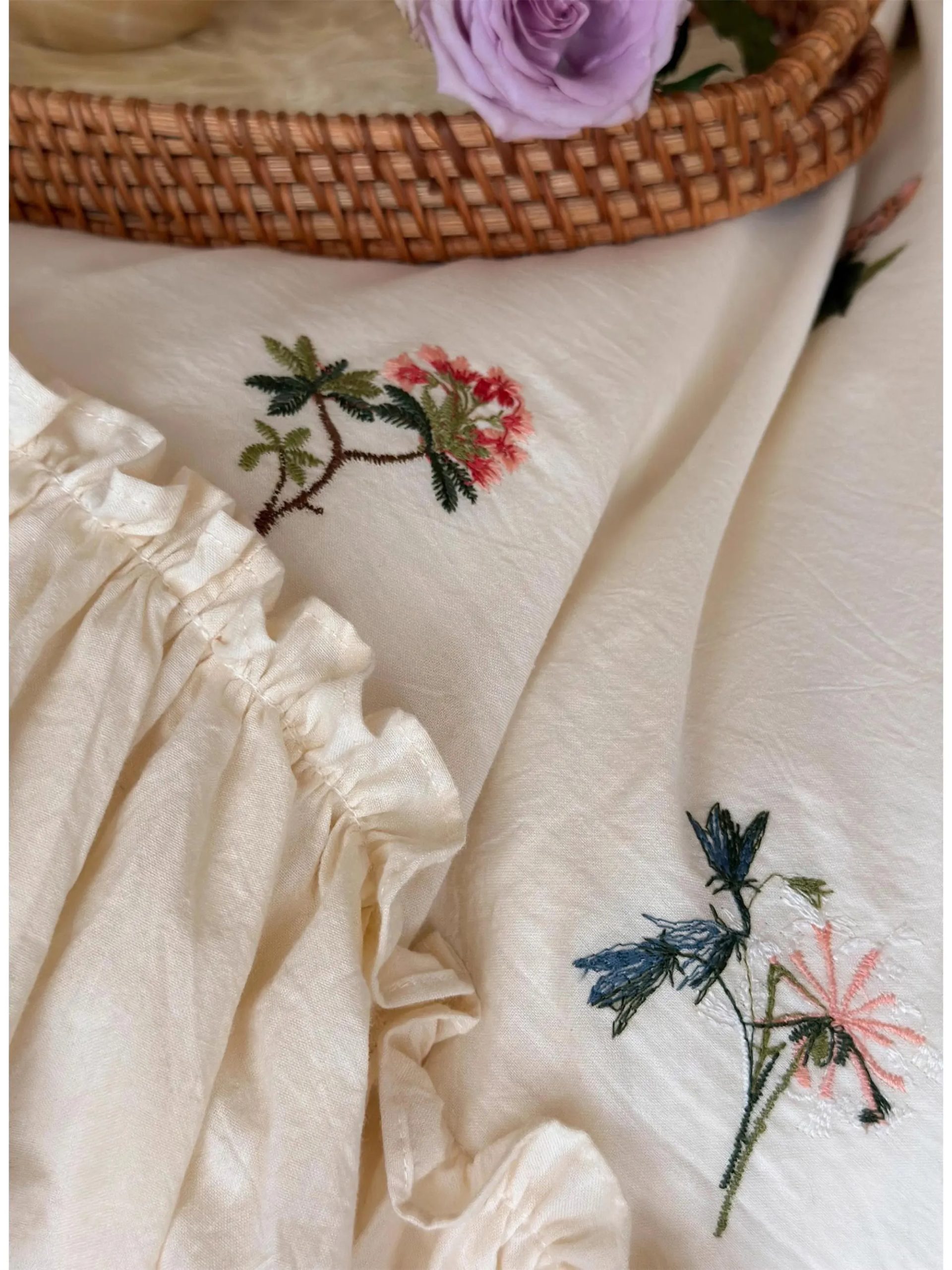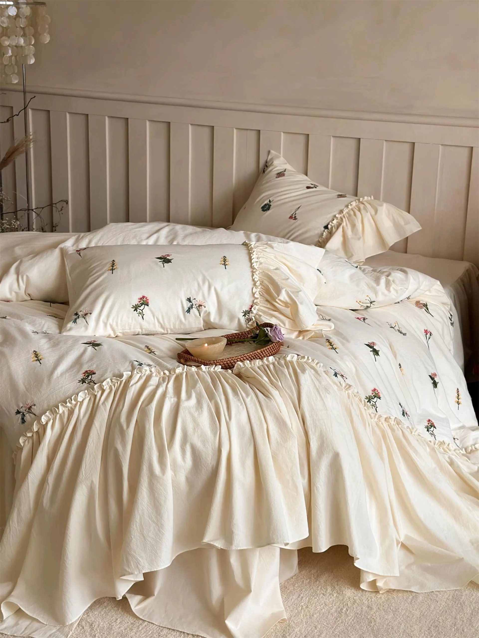 Pastoral Plant Embroidery Ruffle Four-Piece Set
