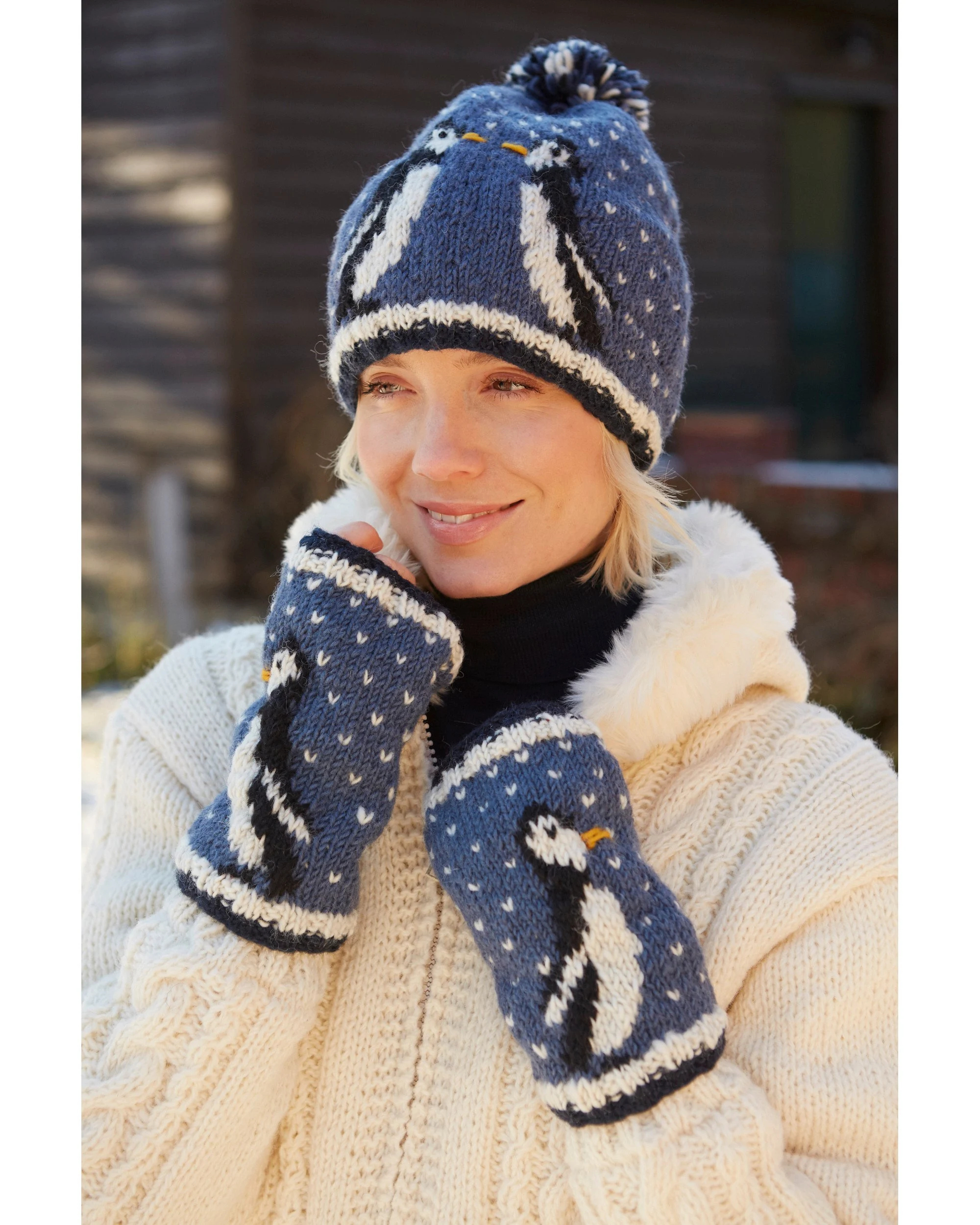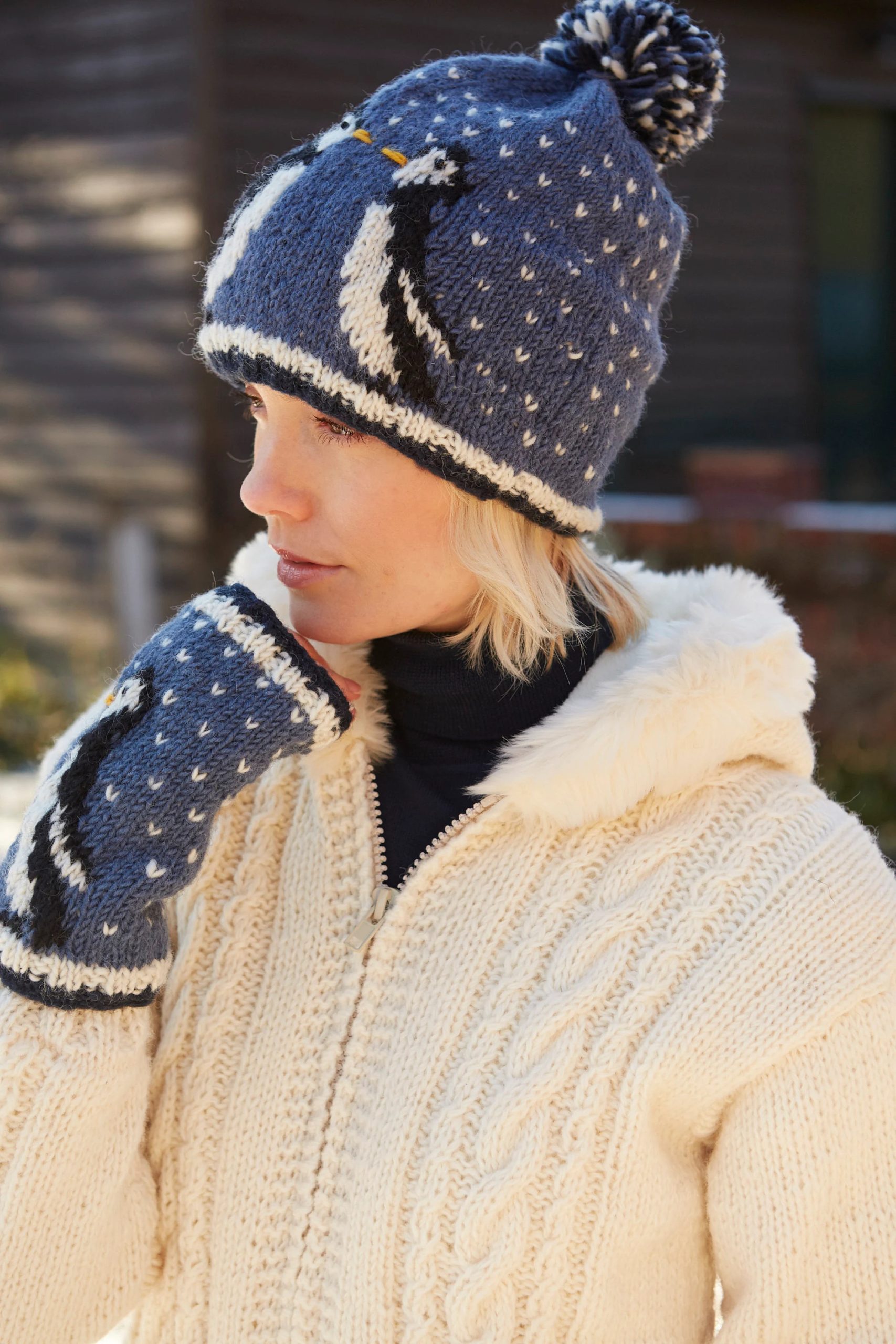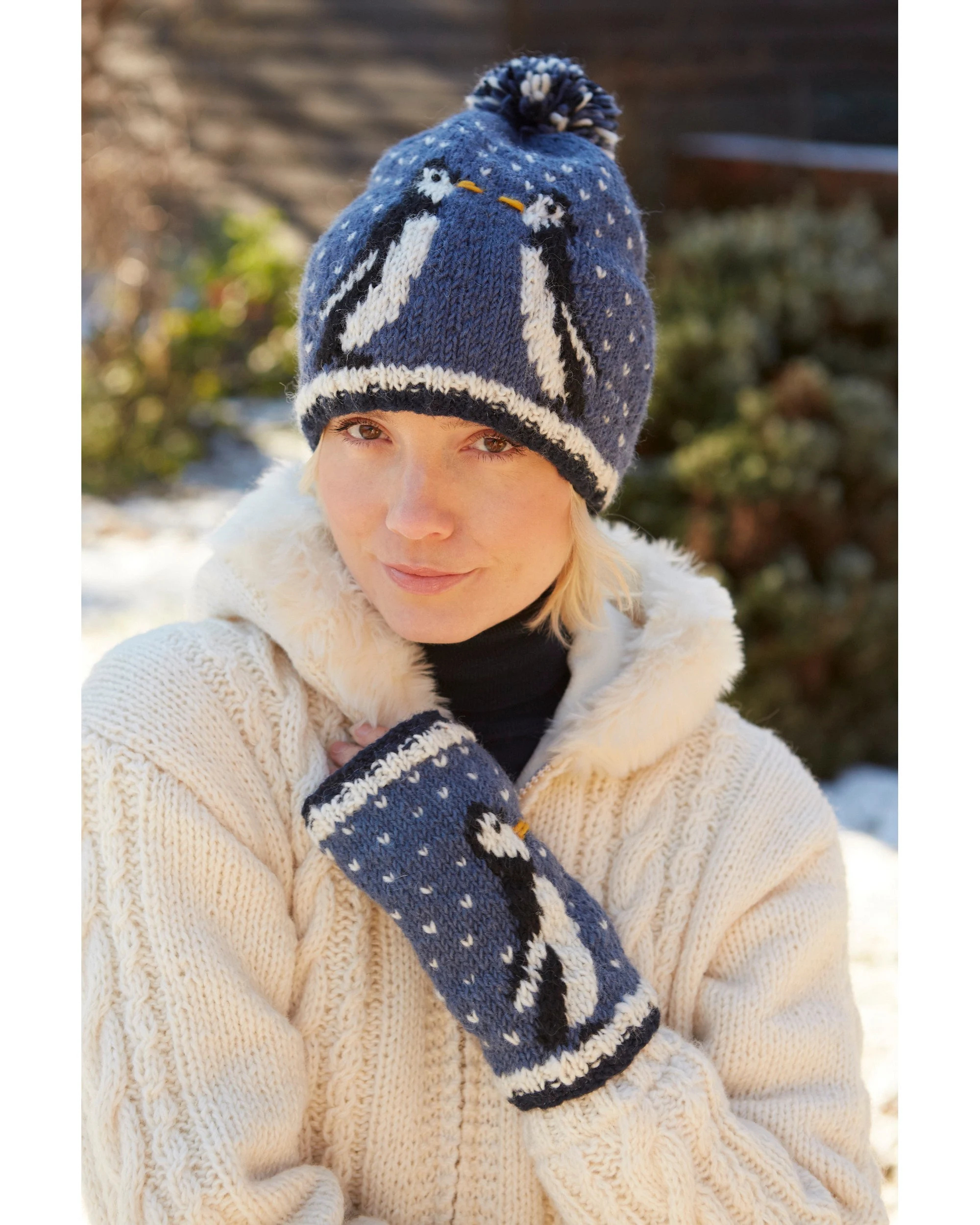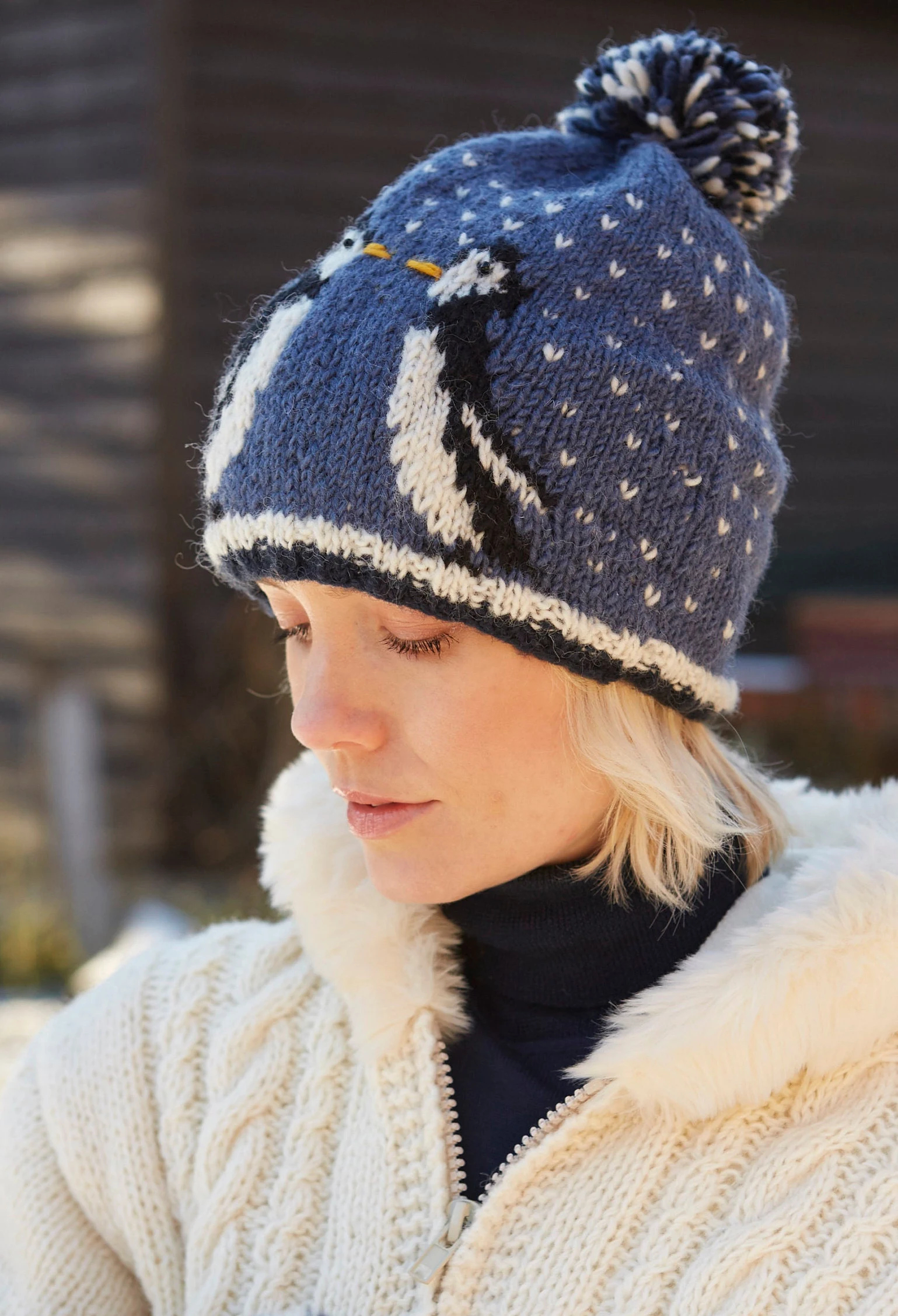 Adorable Pattern: Intarsia penguins with tiny yellow beaks—cute from every angle.