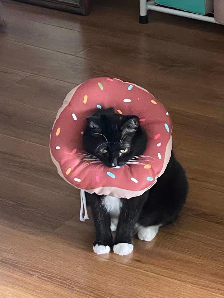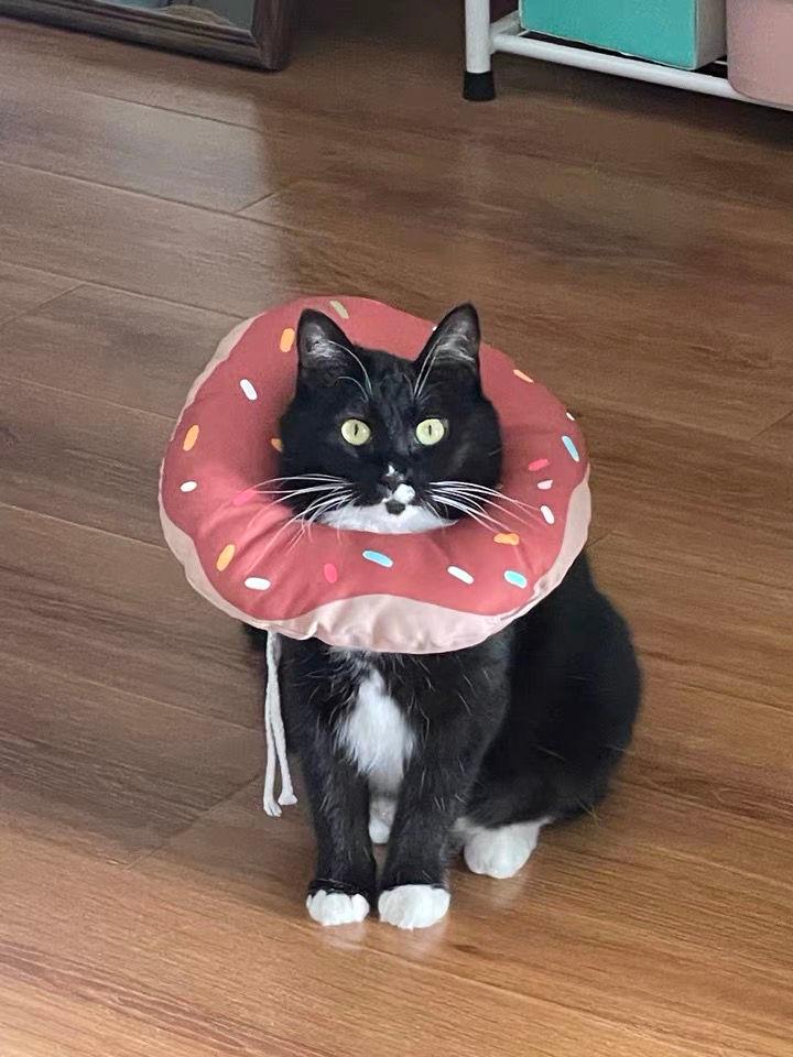 **Visitor Focus Moments:** When friends come over, your black cat, wearing the scarf, strolls out. The contrast between the pink donut and its black fur will immediately draw all eyes. Your friends will exclaim, “Is this cool kid forced to pretend to be sweet?” The sound of camera shutters snapping photos with it can last all night.