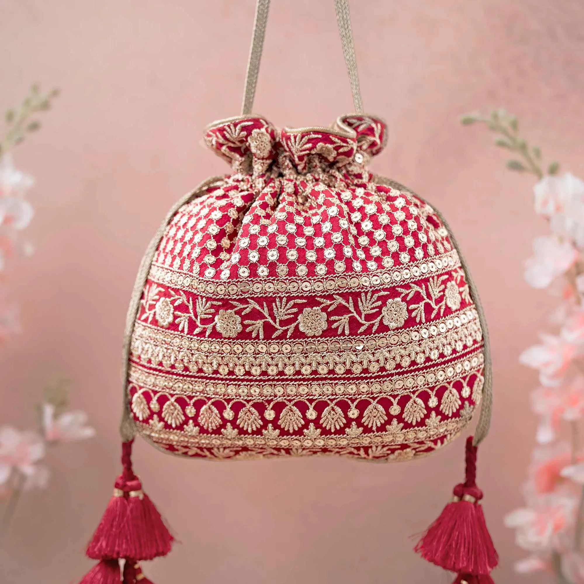 Versatile: The bag’s sleek, rounded shape, red and gold color scheme, and tassel embellishment make it suitable for both handheld and crossbody use with the adjustable drawstring, adding a touch of traditional celebratory aesthetics.