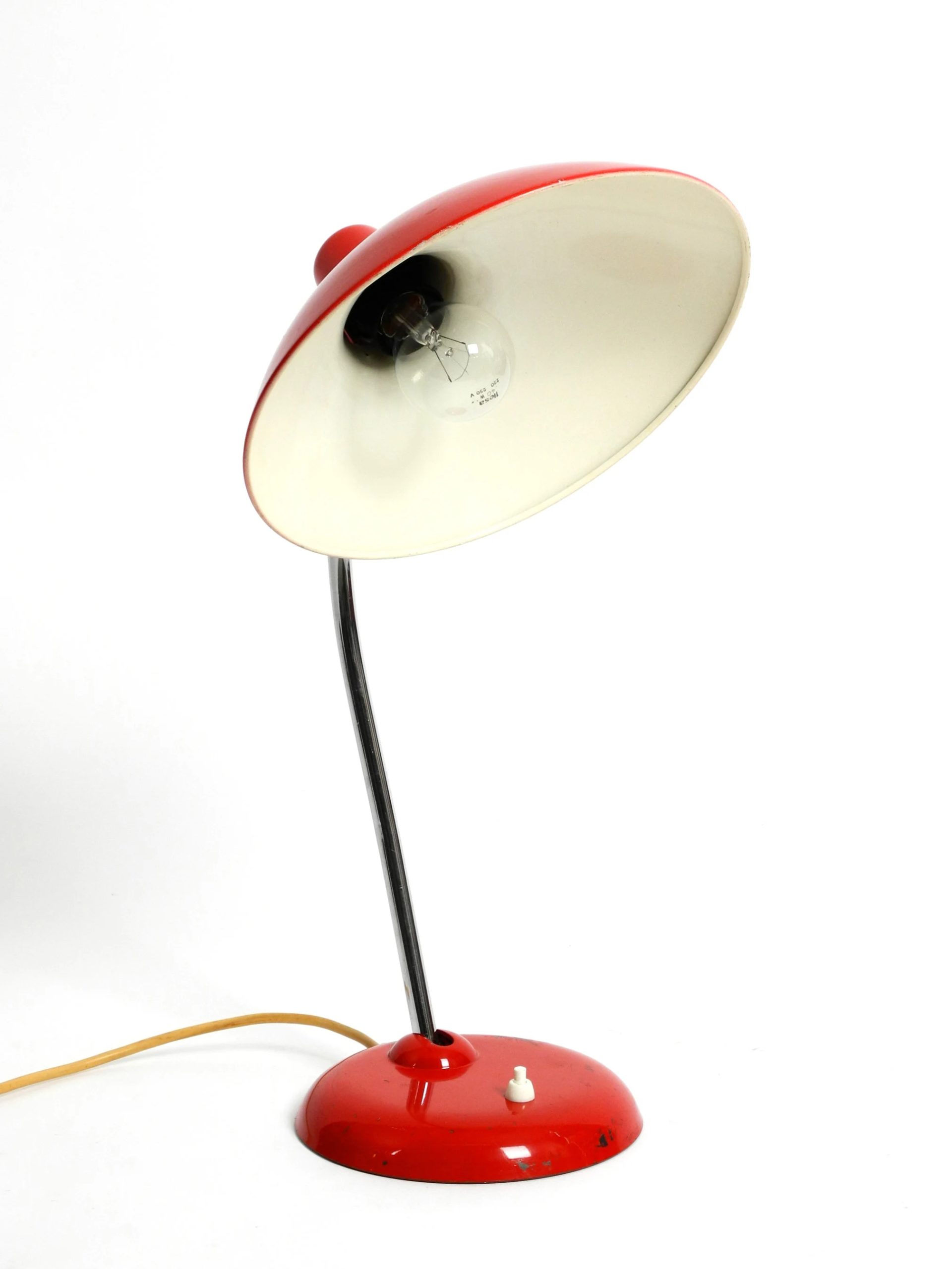 Dish-Shape: Crafted from bright red metal, its wide, shallow profile creates a wide, comfortable light for books and keyboards; the white interior softens glare.