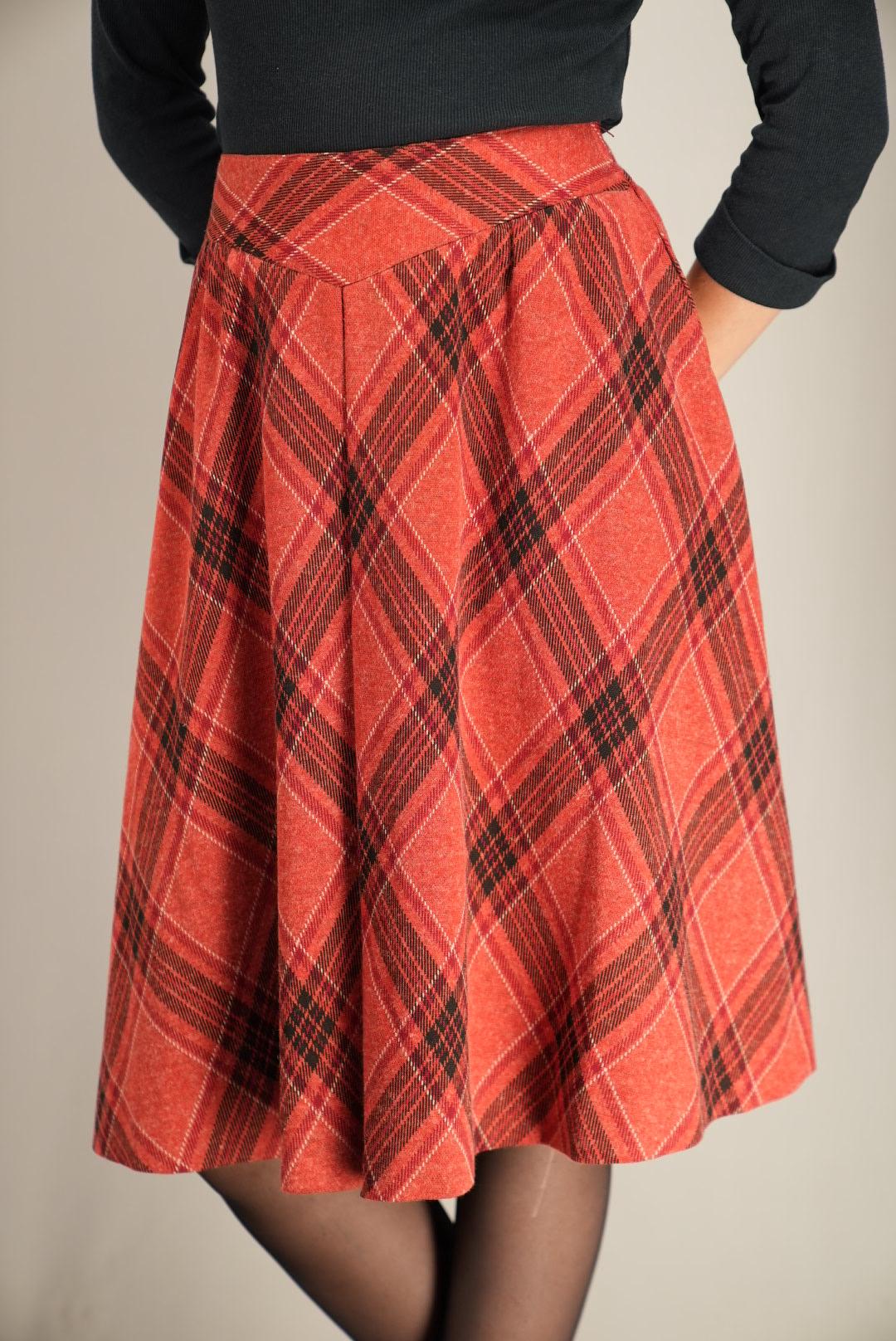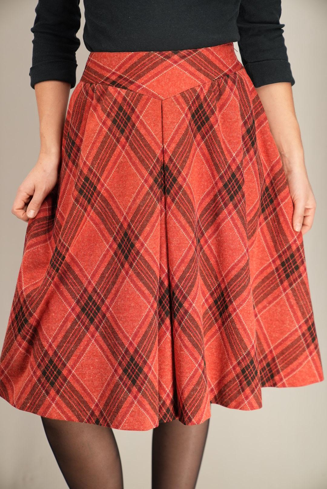 Red Plaid A-Line Midi Skirt Soft Vintage Swing