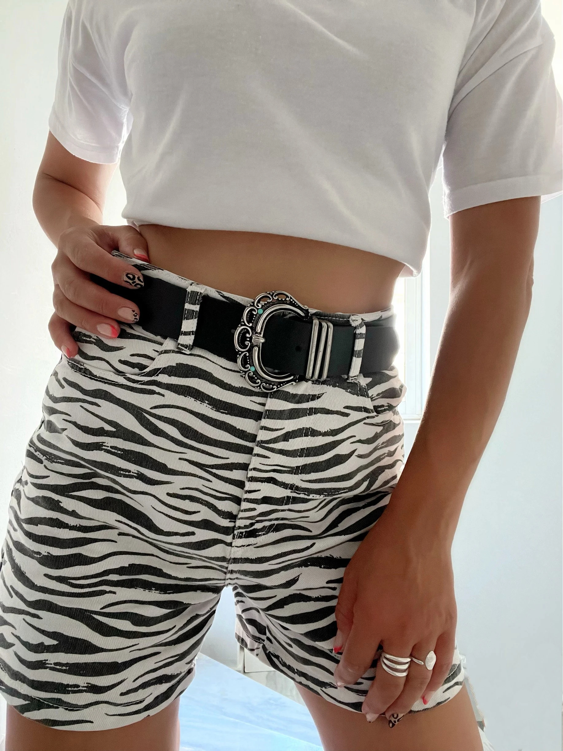 Retro-cool style: Paired with zebra-print pants and a simple top (as shown), the black belt creates a wild contrast with the zebra print, while the vintage-inspired buckle adds an artistic touch. It’s a sure-shot statement piece for everyday streetwear or trendy shopping.