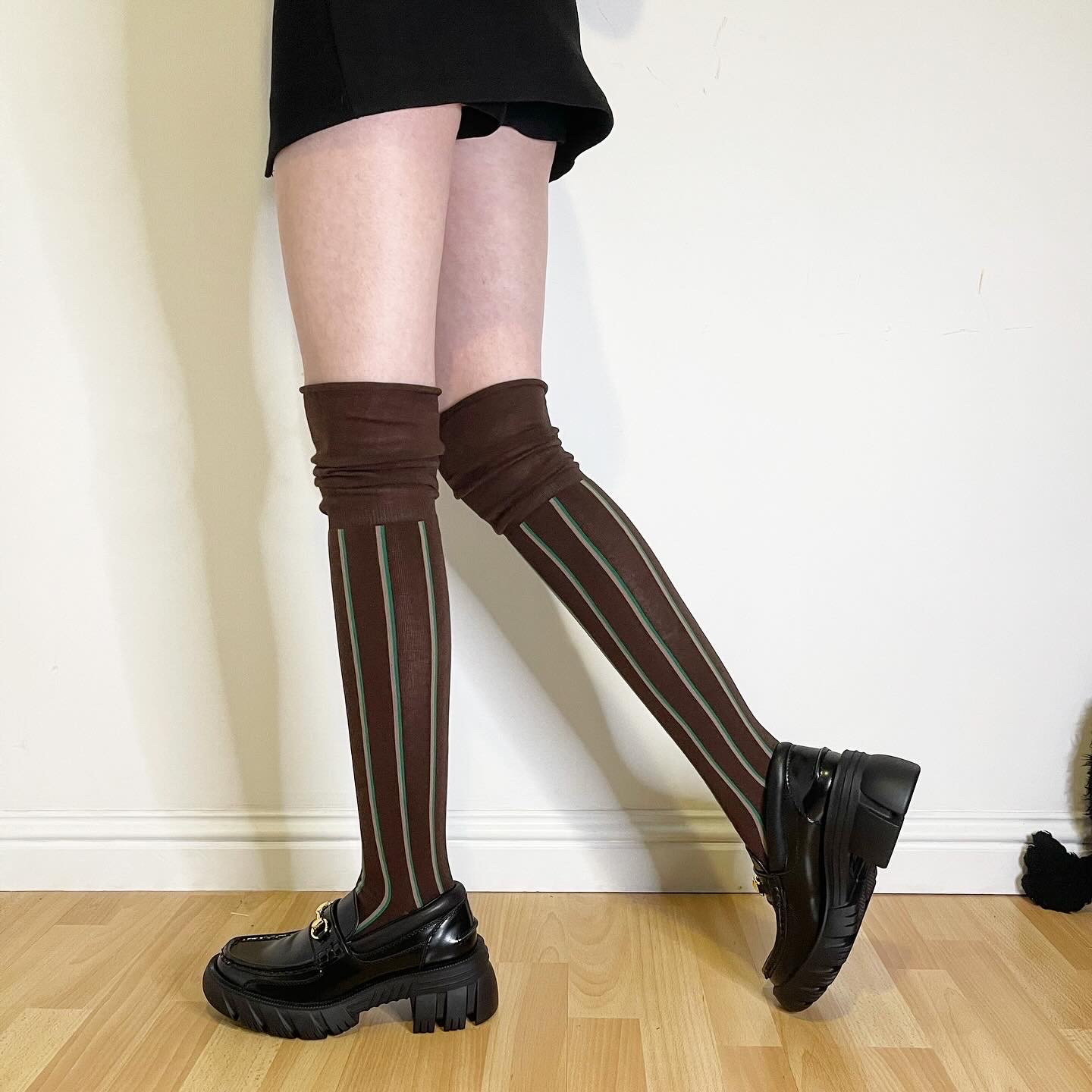 These retro brown striped over-the-knee socks, with their niche design and versatile style, are a must-have for style lovers. Whether creating a streetwear-inspired vibe or a retro preppy vibe, they’ll add a touch of personality to any outfit, ensuring every look is full of attitude and style.