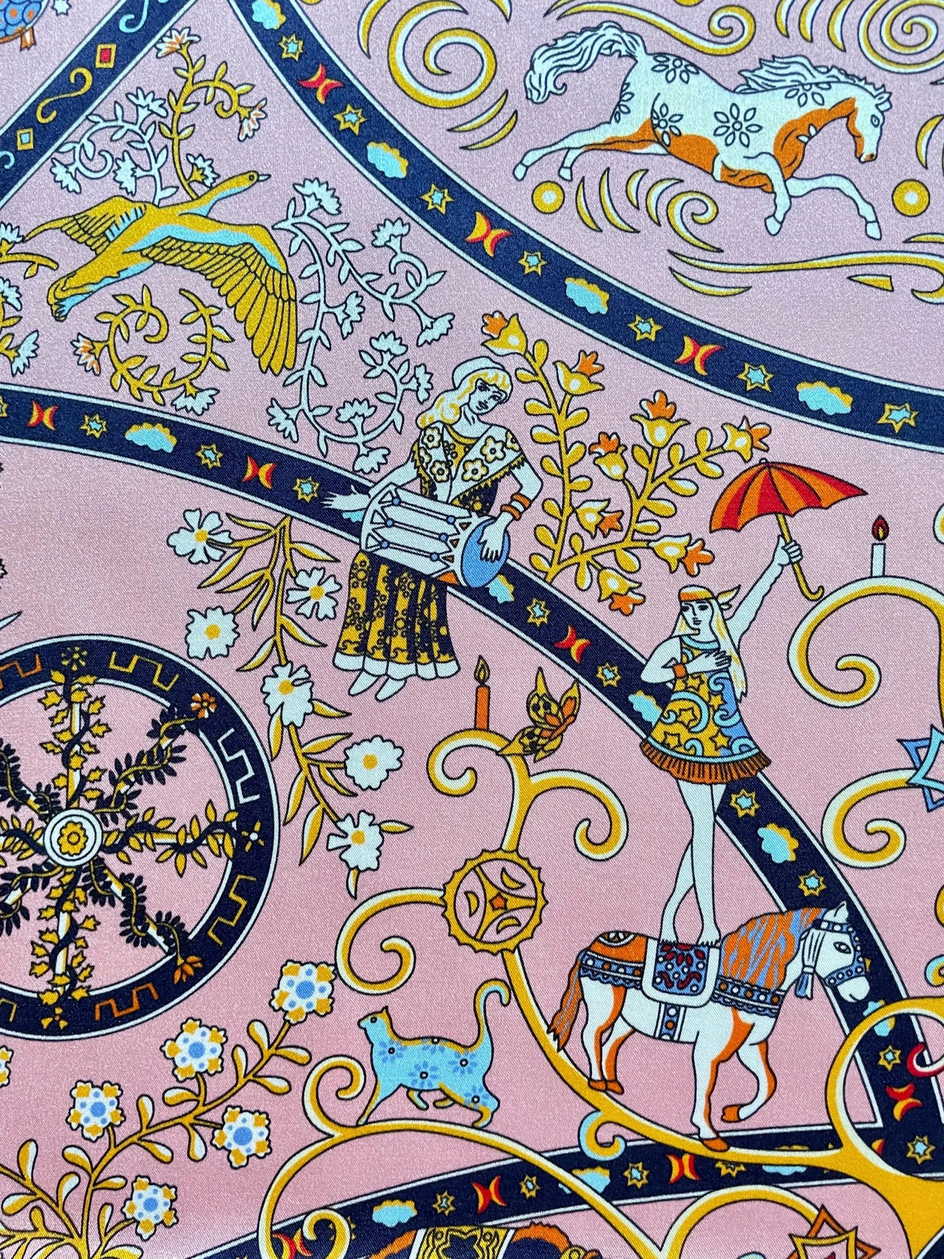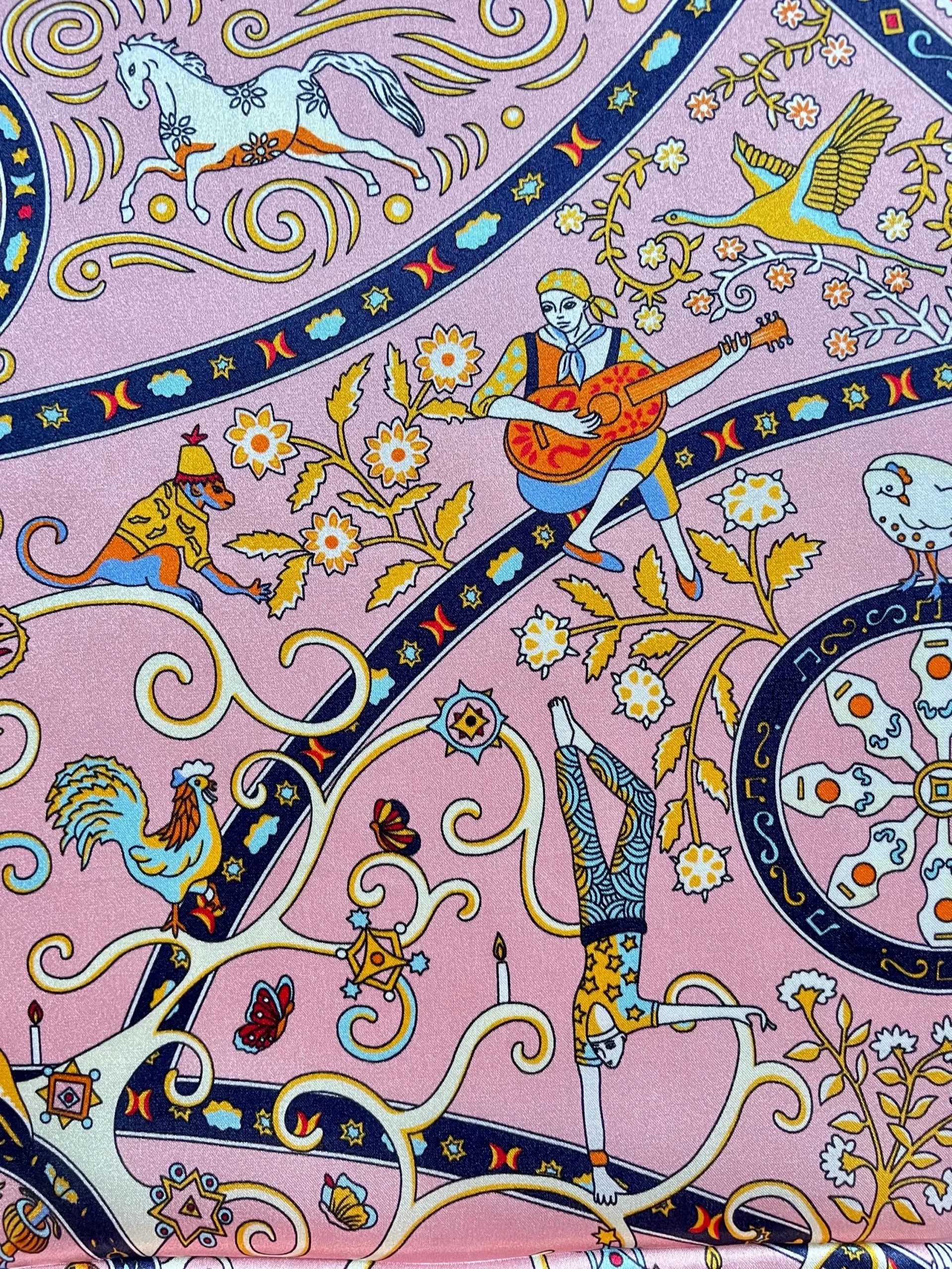 Crafted from premium 6A grade mulberry silk satin fabric, this scarf boasts a soft, pearlescent sheen—perfect for complementing the vintage style of the foundation. It clearly showcases the delicate details of the courtly patterns (figures, decorative motifs, and plant textures) and the layered texture of the vibrant colors, without overpowering the romantic ambiance of the foundation. The fabric is smooth and drapes beautifully against the skin, offering excellent breathability and preventing sweating in summer. Its drape naturally accentuates the fullness of the vintage patterns, creating a romantic yet uncluttered visual effect between the foundation and the courtly designs.