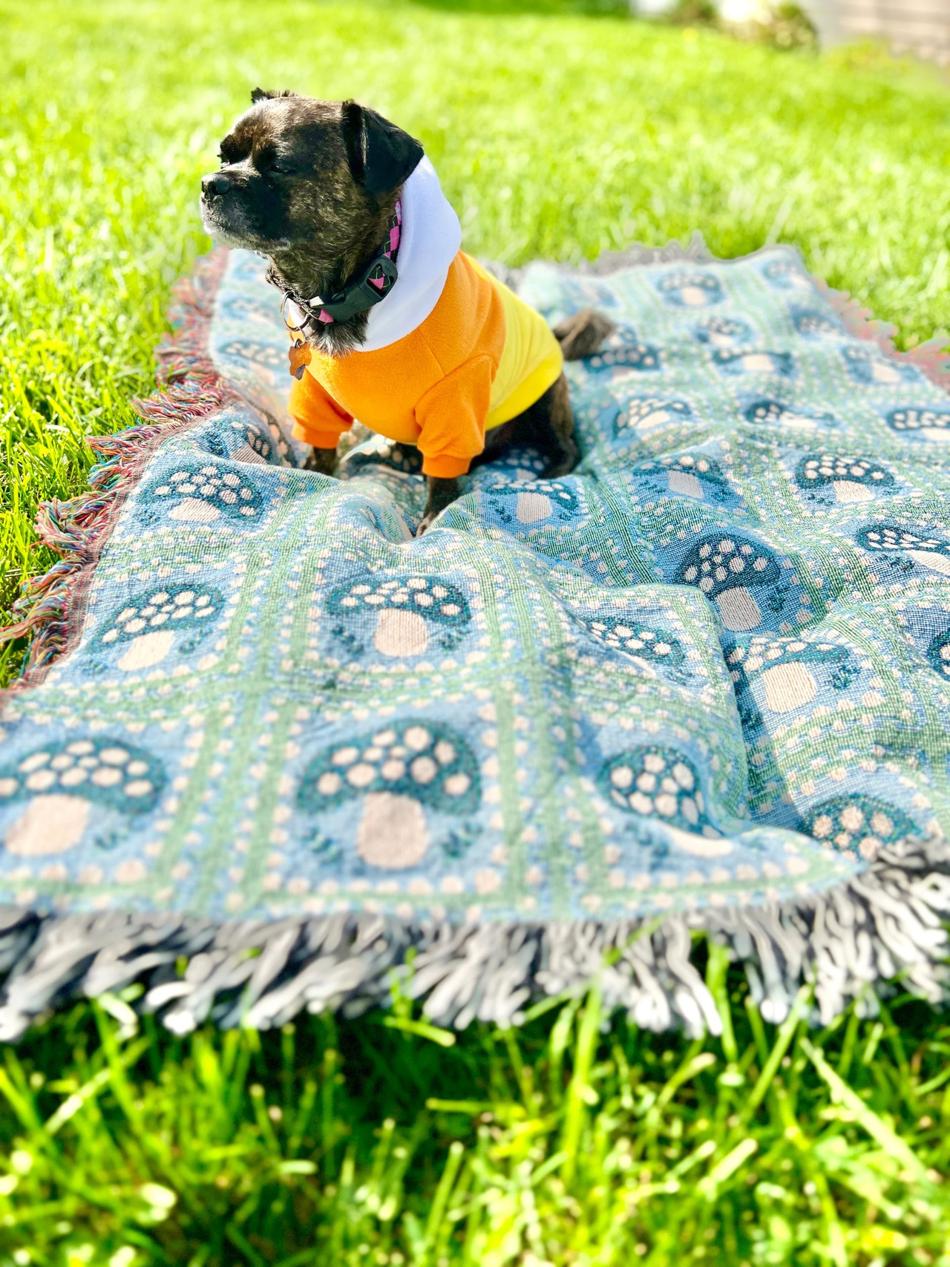 Handmade Tassel Edge: The multi-colored handwoven tassels along the edge of the blanket exude a casual, natural warmth, complementing the fairytale-like feel of the mushroom pattern, creating a vintage feel and adding layered detail. The gentle movement of the tassels evokes the sound of a forest breeze, elevating the blanket from a practical fabric to a tangible “fairytale work of art.”
