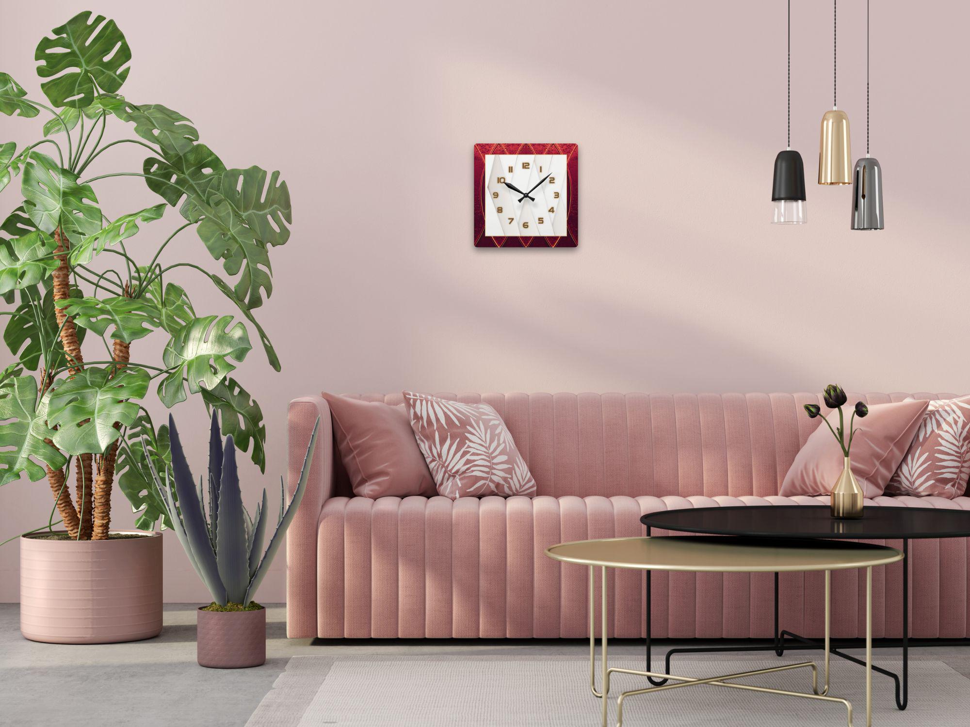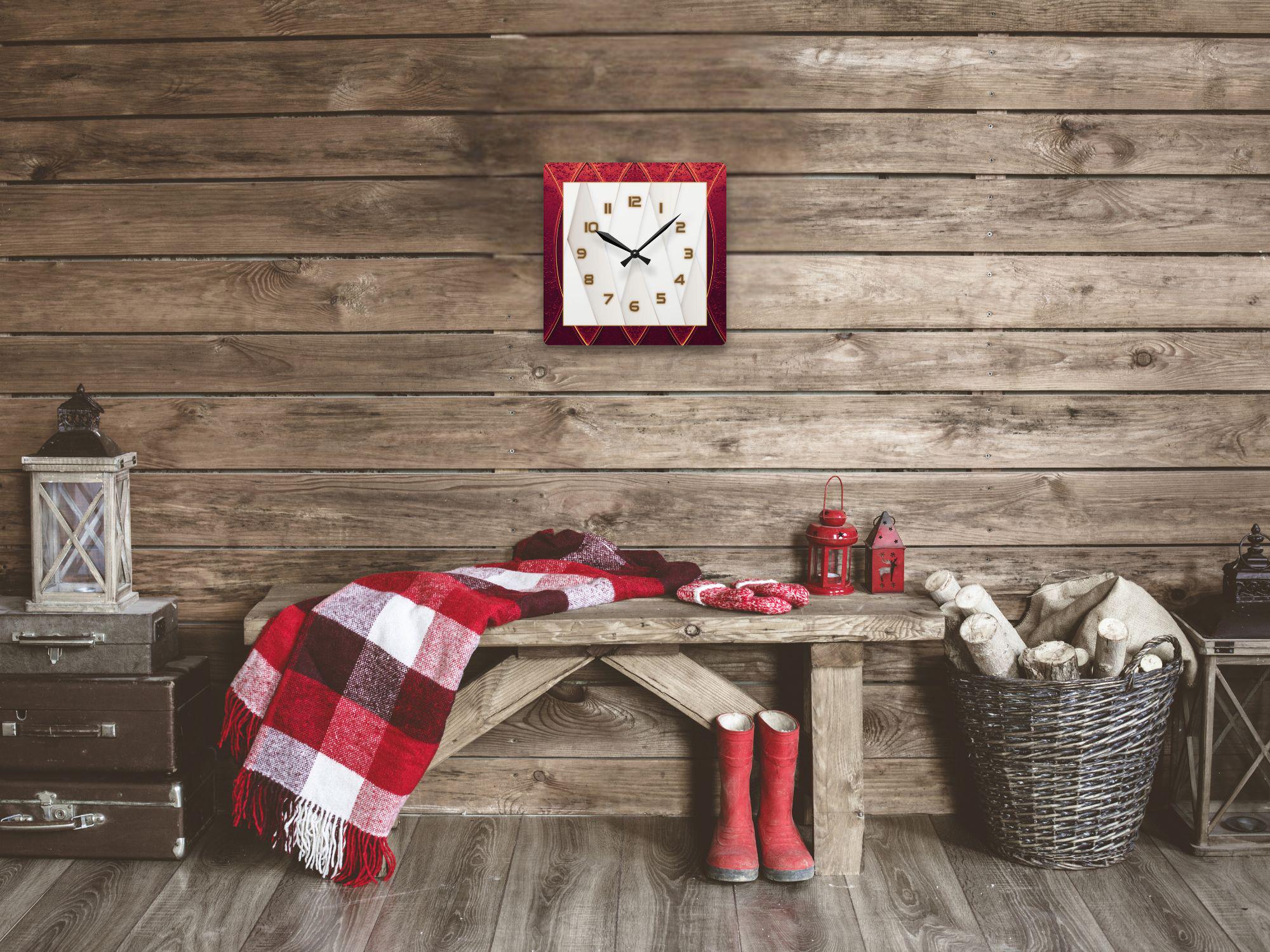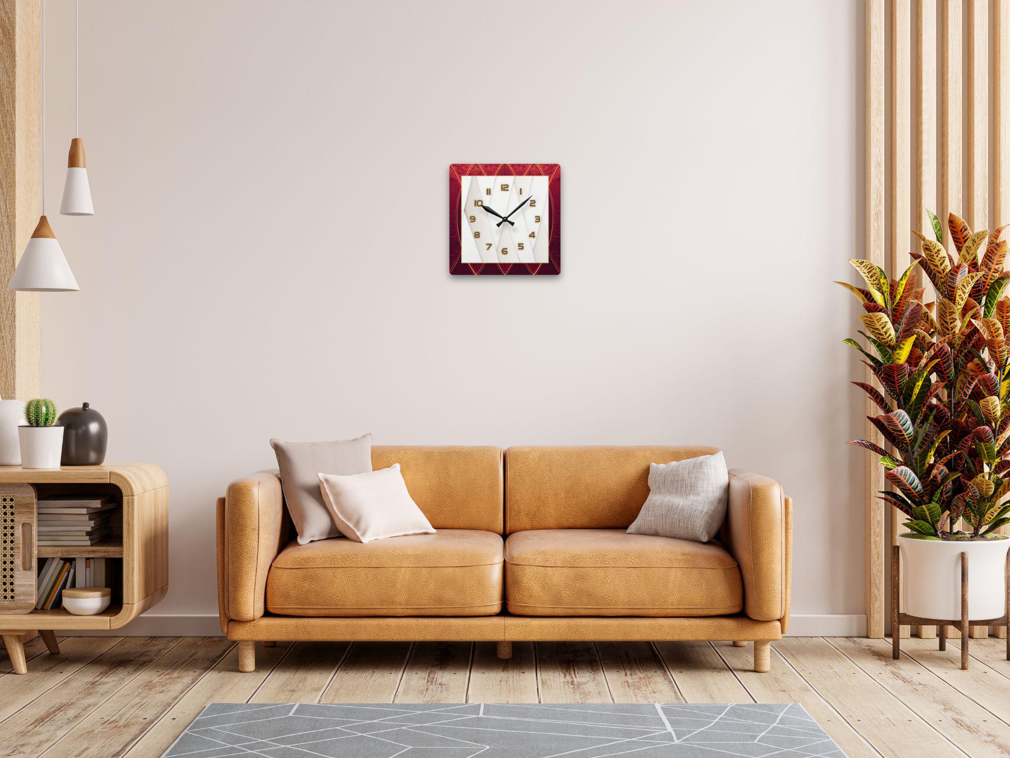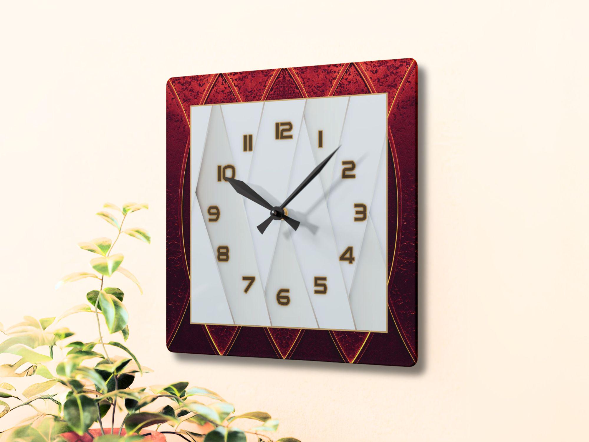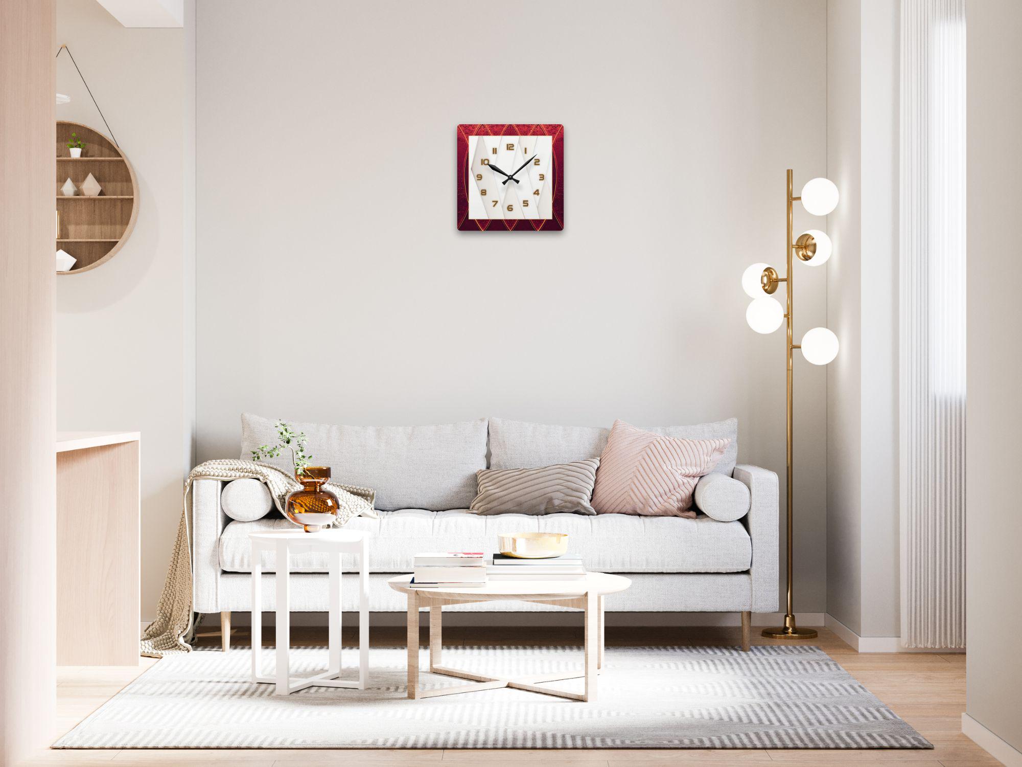 This clock, with its Art Deco style at its core, blends burgundy textures with gold accents. It serves not only as a practical timekeeping tool but also as a luxurious vintage-inspired decorative piece.