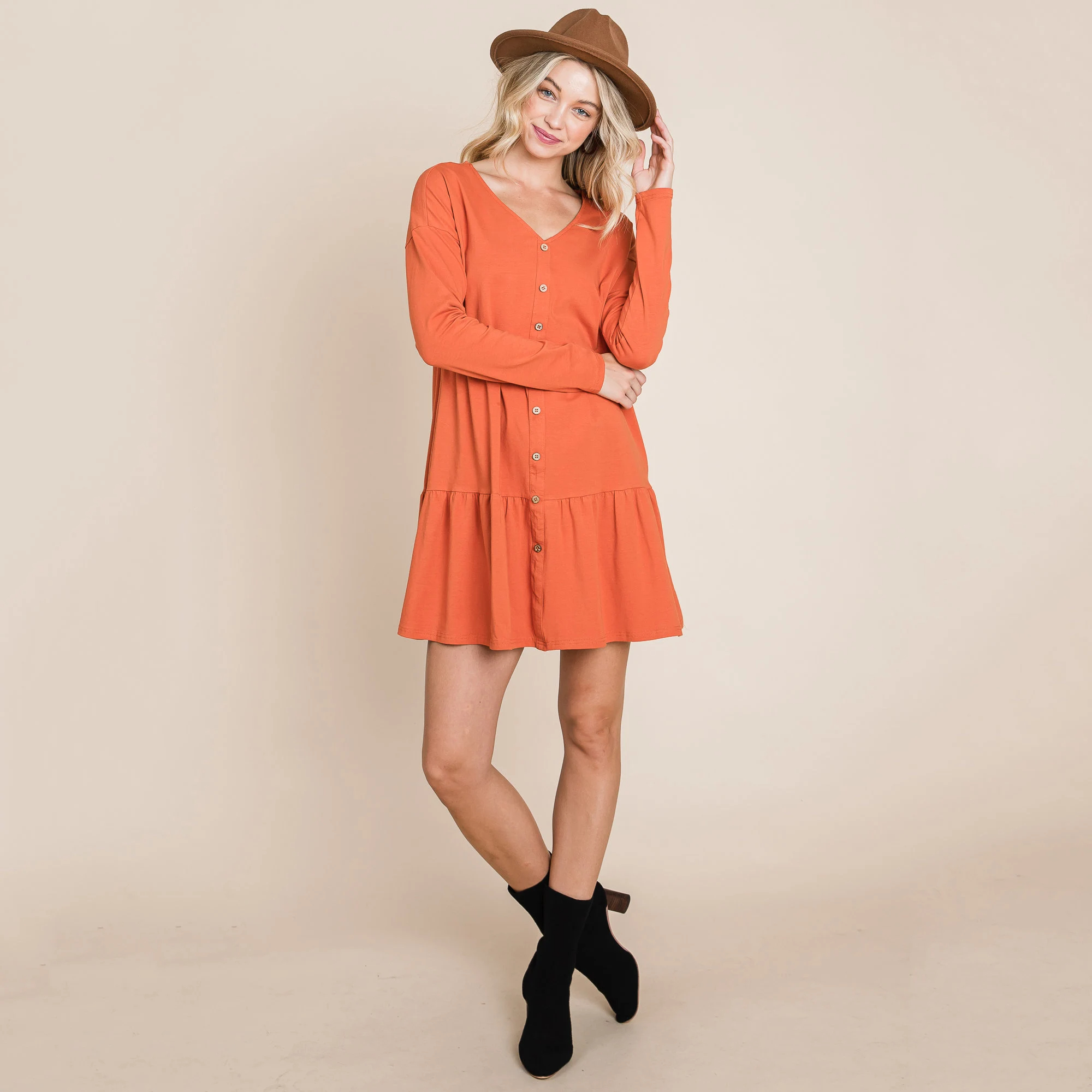 Retro Slouchy V-Neck Button-Down Layered Dress
