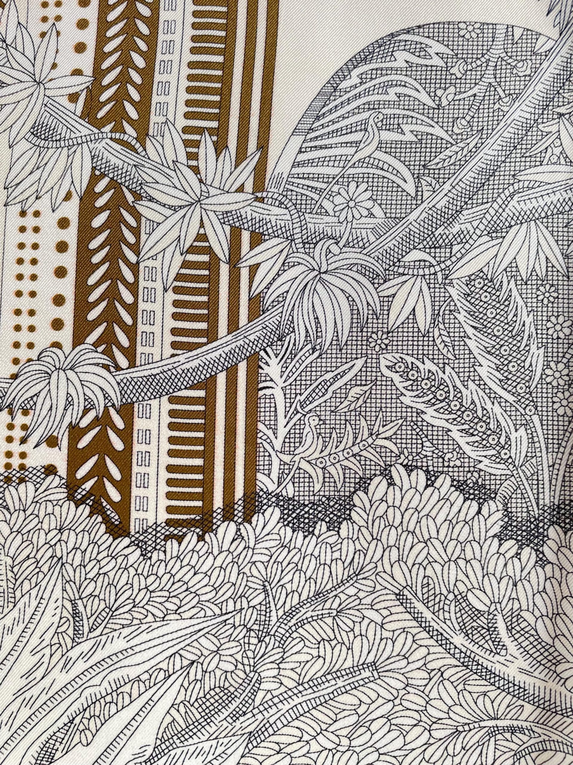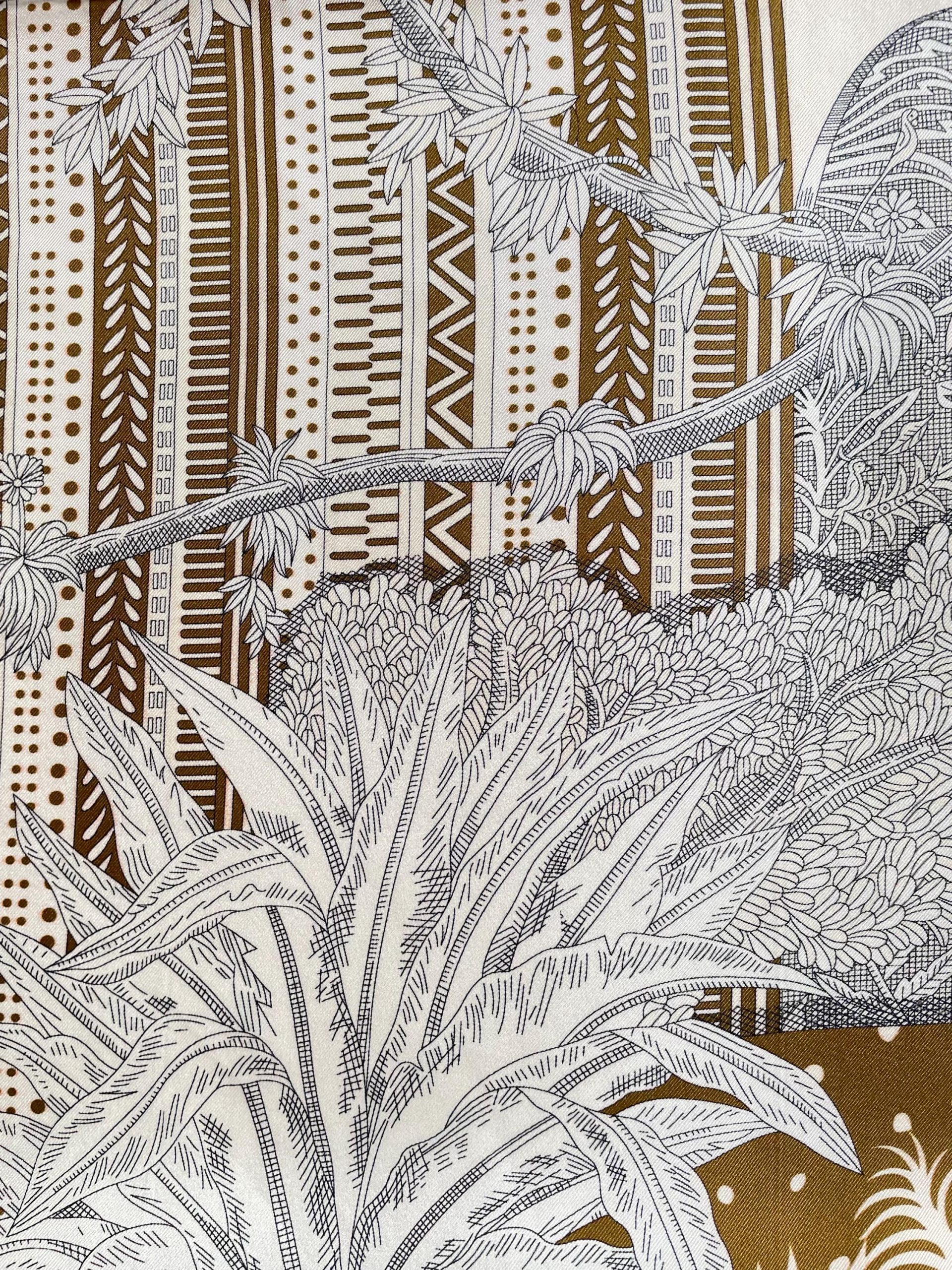 Key visual elements: A base of off-white is used, featuring a complex tribal-style texture—a foundation of interwoven brown and light gray geometric patterns (stripes, polka dots, zigzag lines), embellished with tonal plant and leaf motifs. The rich, layered textures are uncluttered, retaining the retro weight of tribal elements while softening the exaggerated feel of the ethnic style with light tones.