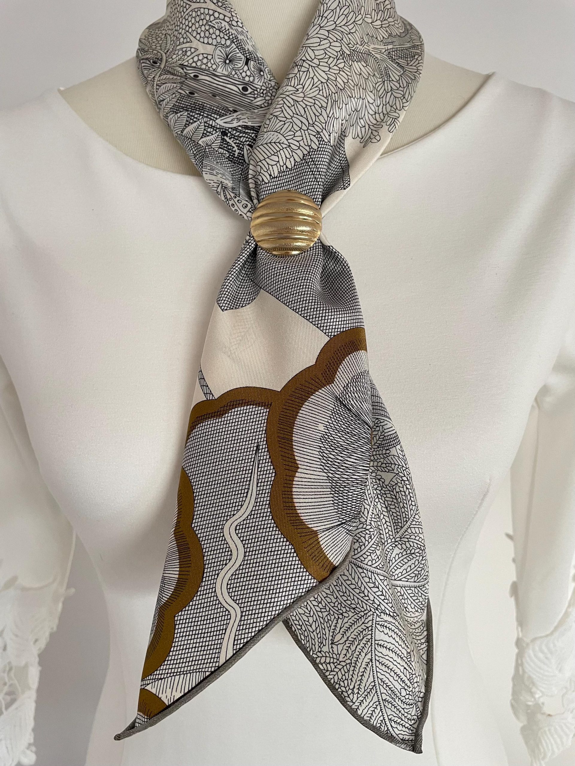 Casual Layered Knot: Unfold into a triangular scarf, loosely wrap multiple layers around the neck, allowing the pattern to drape naturally. Pair with denim jackets and knitwear for an instant retro-casual vibe;