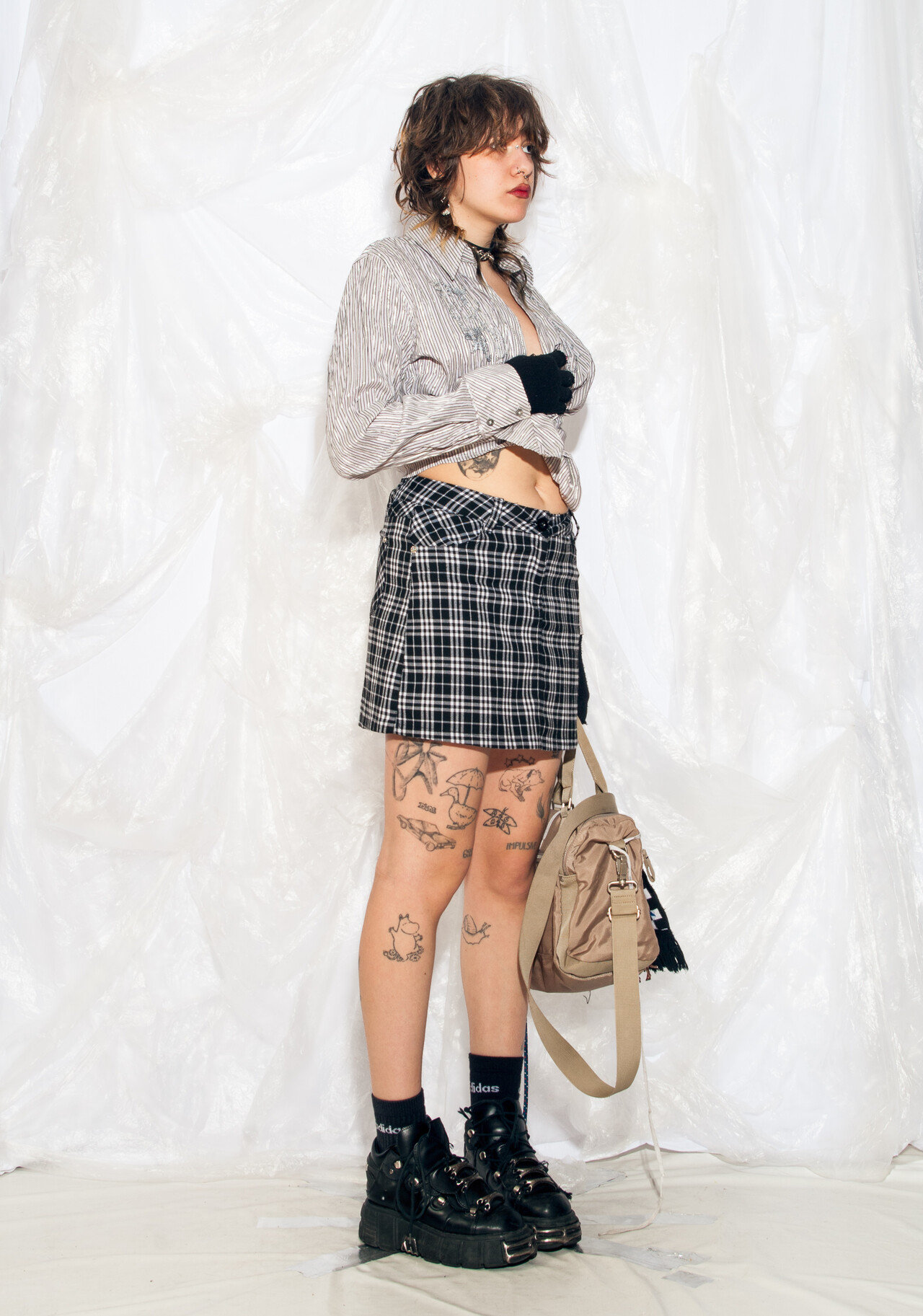 This city-cool mini skirt features a classic black and white check. Soft pleats at the waist create a breezy A-line silhouette that’s effortlessly versatile from weekday to weekend—wear it with a cropped sweater, tie-dye shirt, or graphic tee.