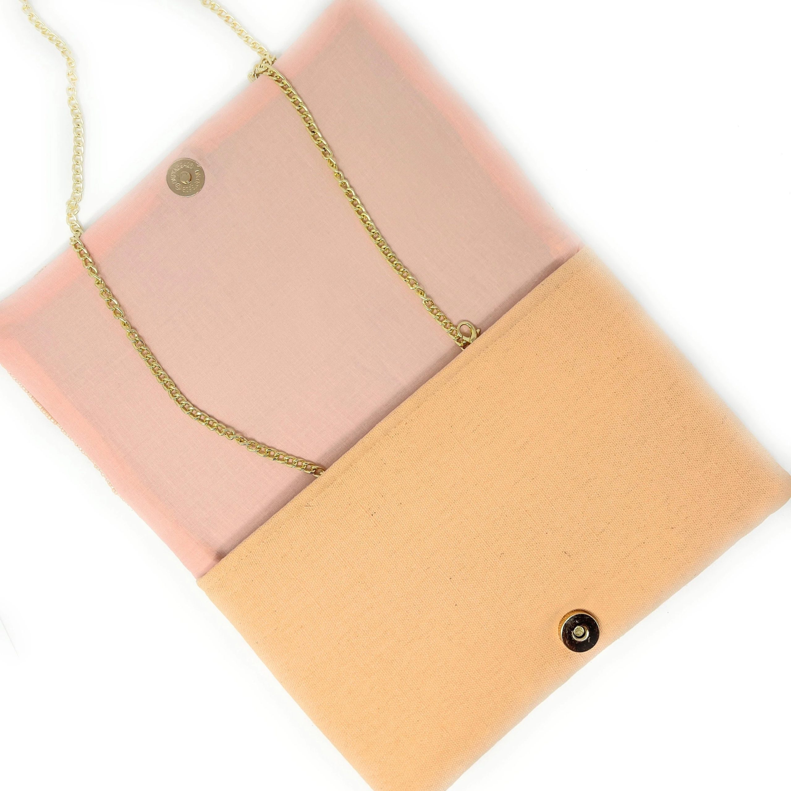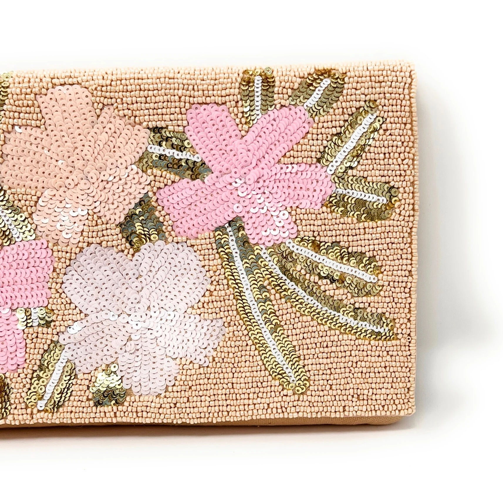 Soft Color Aesthetics: Soft contrasting nude, pink, and gold colors capture the natural beauty of pastoral flowers while adding a touch of sophistication through hand-beaded craftsmanship. Easily adaptable to a variety of skin tones and styles, this clutch is a gentle catalyst for any look.
