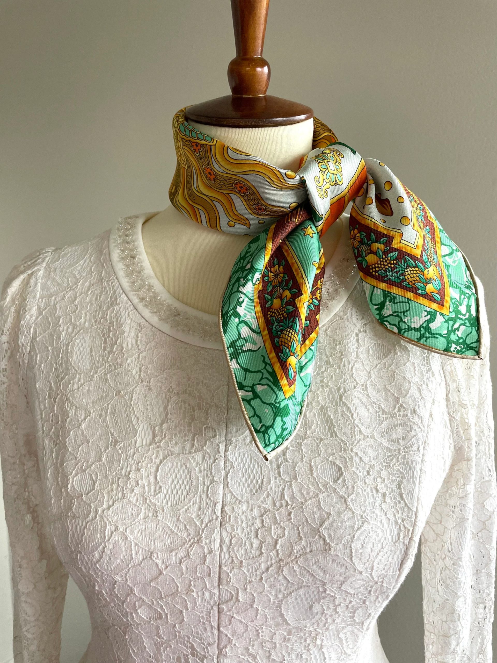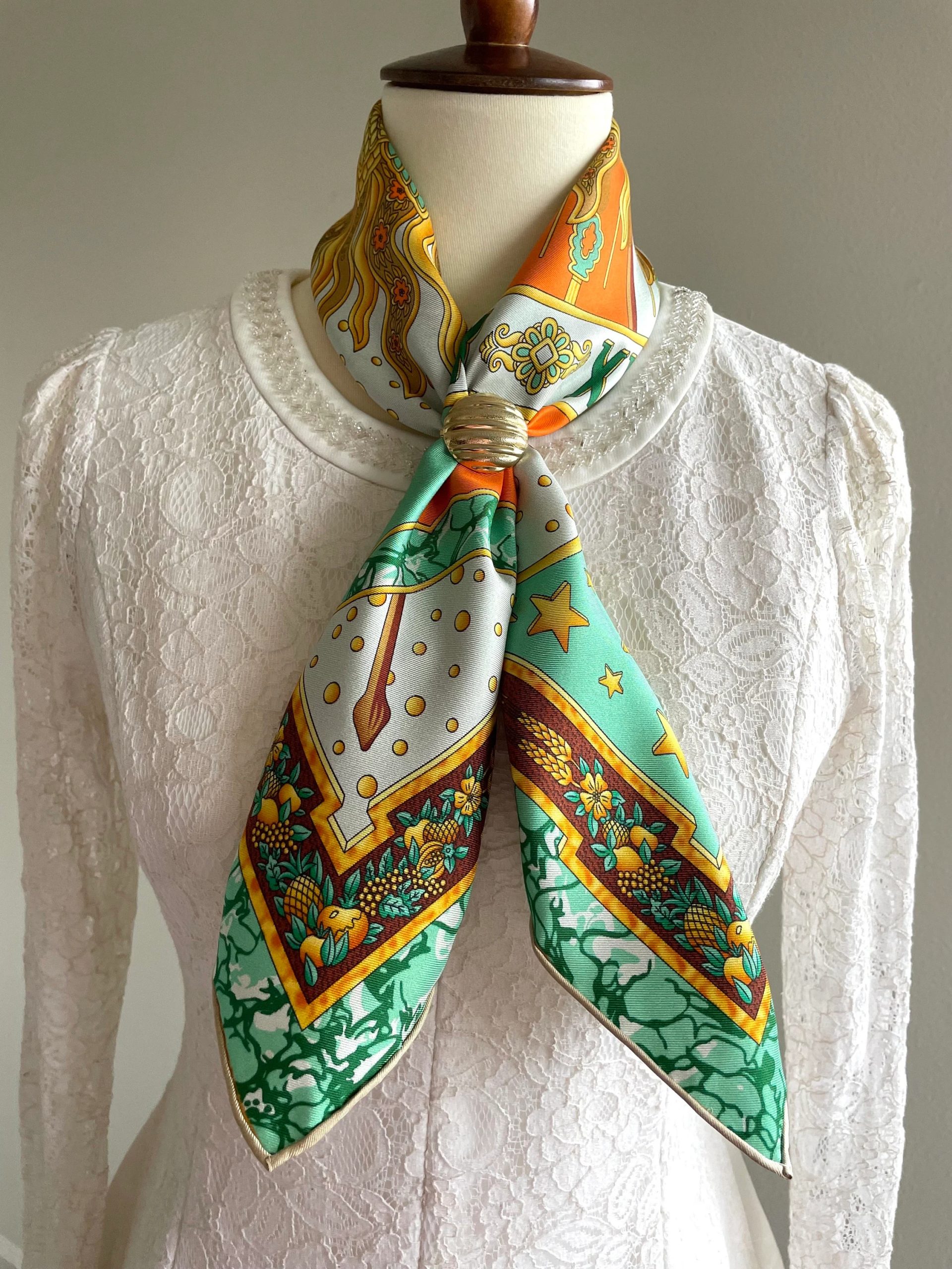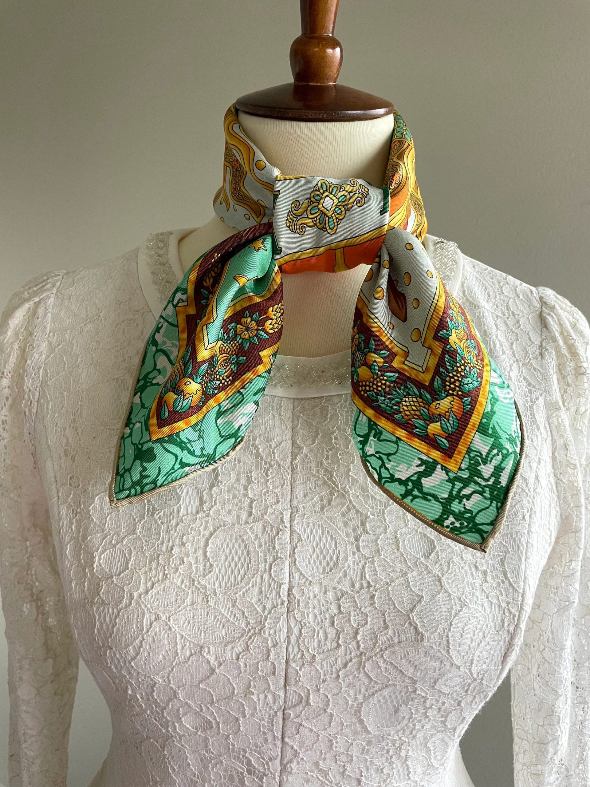 Detailed Design: The scarf’s edges are bound in the same style, tightening the visual tension of the fantastical elements. This strengthens the outline of the pattern while maintaining a “strange yet uncluttered” overall style, suitable for various romantic occasions.