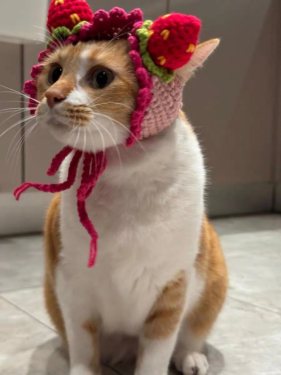 A must-have for strawberry season: Wear it to your cat during spring and summer strawberry season or family picnics. It not only matches the season but also makes your cat the “cutest focus” of the picnic scene, tempting your friends to take photos of your feline friend as well. This strawberry crochet cat headband is more than just a fashion accessory; it’s a “healing little thing” that brings sweetness to both cat owners and their feline companions. Its soft, smooth texture and vibrant strawberry design make every time you wear it a heartwarming and adorable interaction with your feline friend.