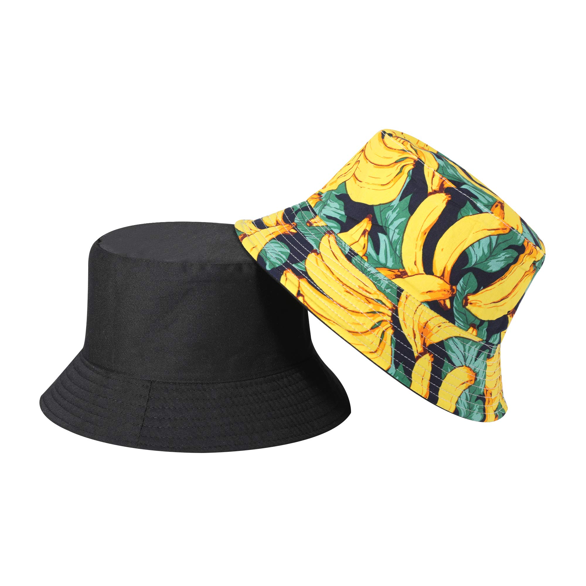 This bucket hat, adorned with vibrant yellow bananas and emerald green leaves against a dark background, instantly adds an island vibe to any look. The bold print is playful and energetic, making it the perfect accessory to express your individuality.