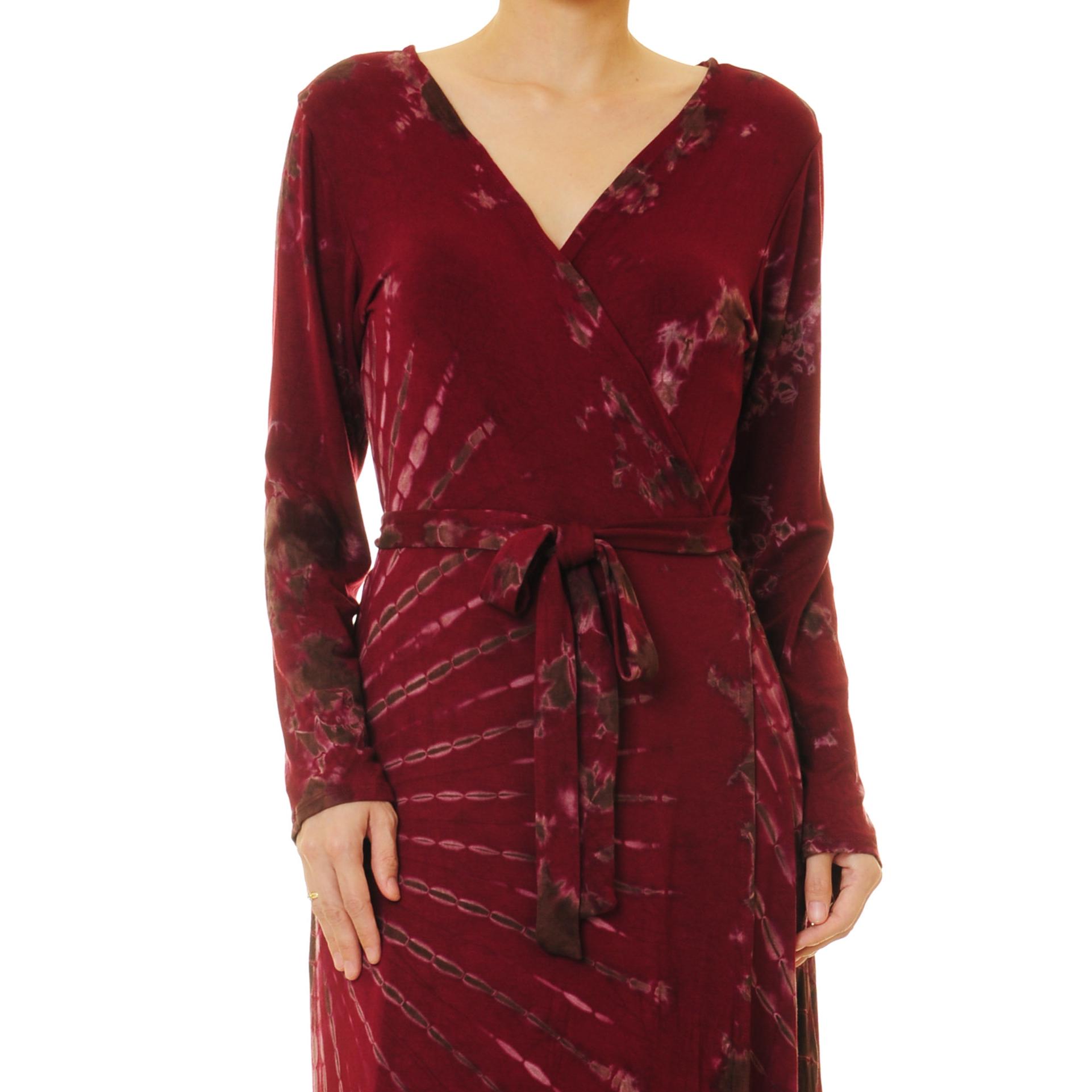 V-neck wrap silhouette: Overlap placket with adjustable ties; can be tied at the front, side, or back for a custom look.