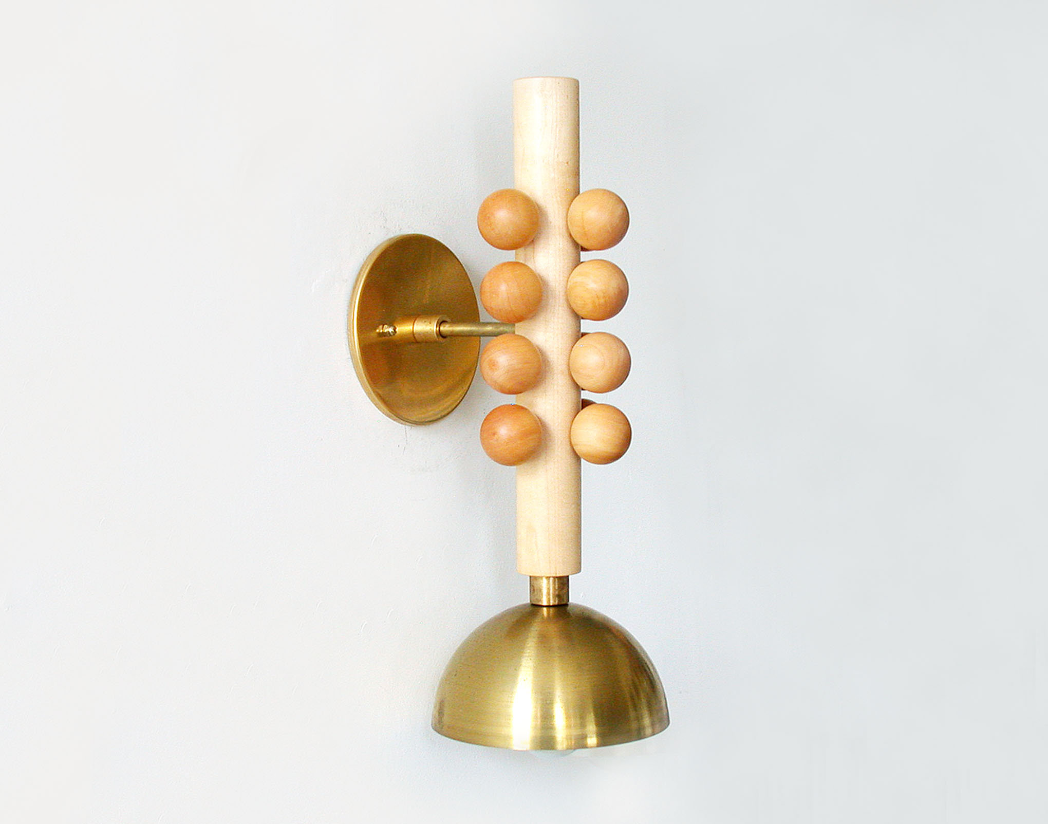 – Beaded columns: Evenly spaced wooden spheres create a sense of rhythm, texture, and crafted quality. Brass Dome Shade: The hemispherical design provides soft downlight and reduces glare.