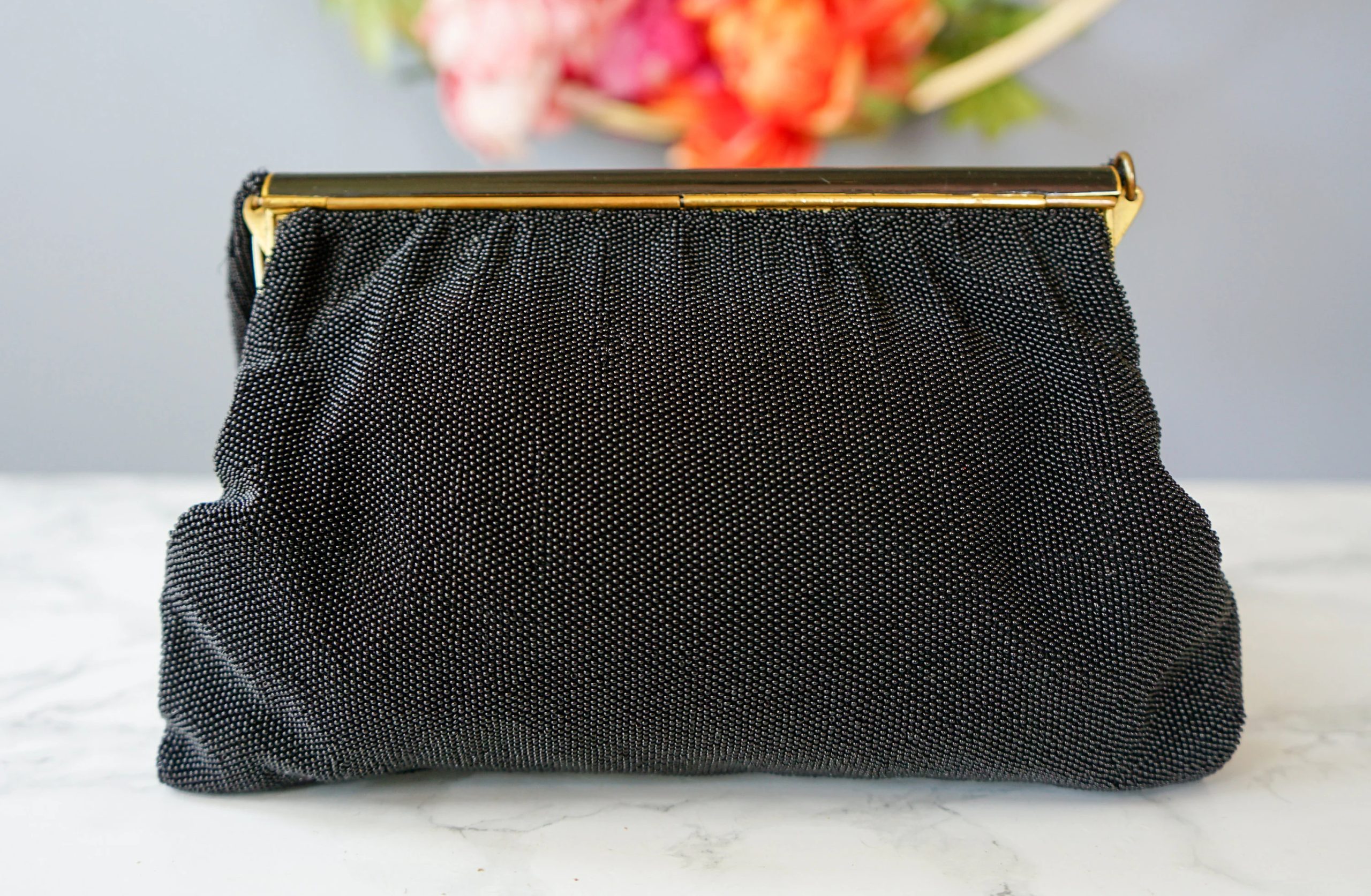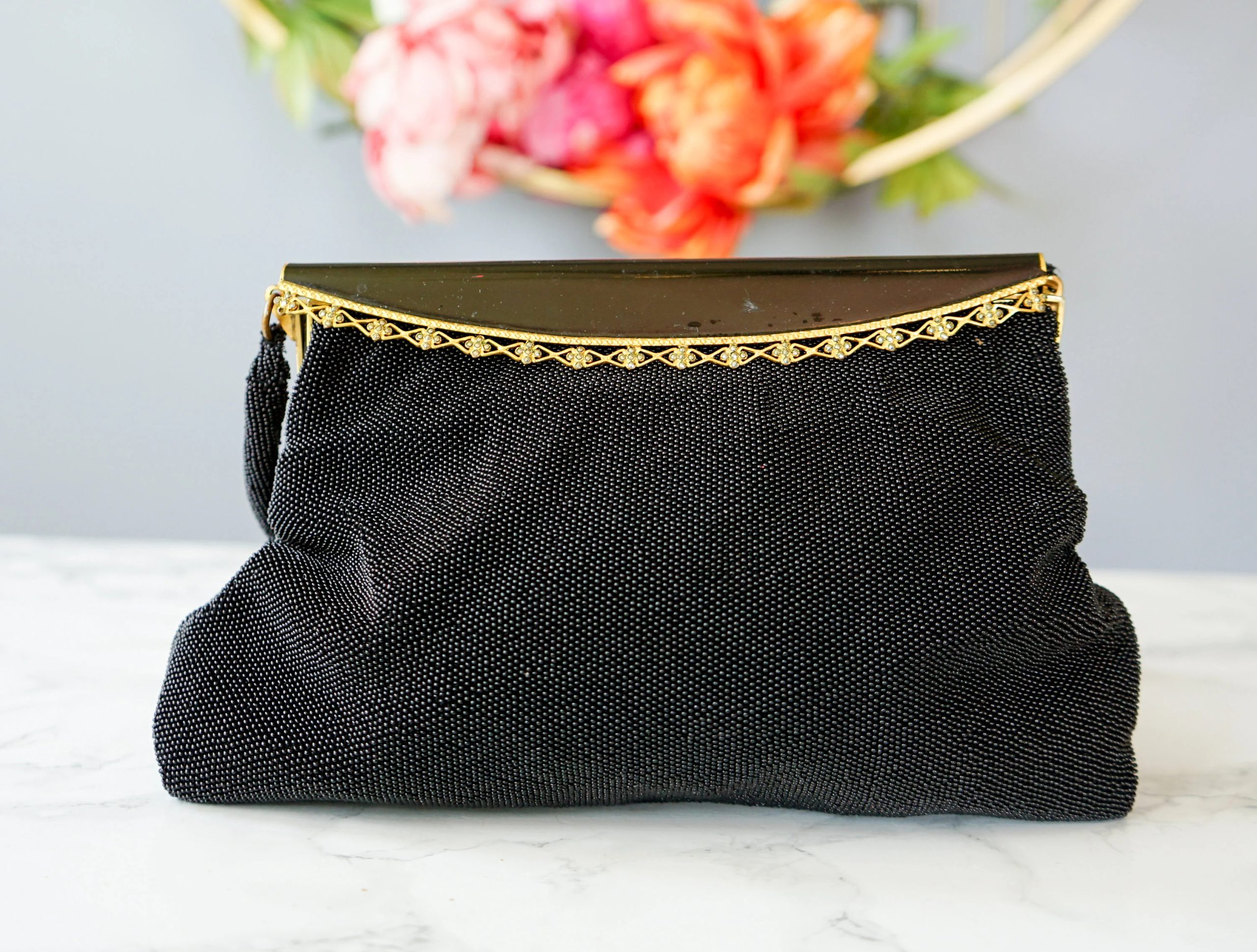 Retro Evening Style: Pair a short black velvet gown with a handbag. The gold hardware and lockstitching echo the vintage hardware, creating an evening look with a “vintage movie” feel.