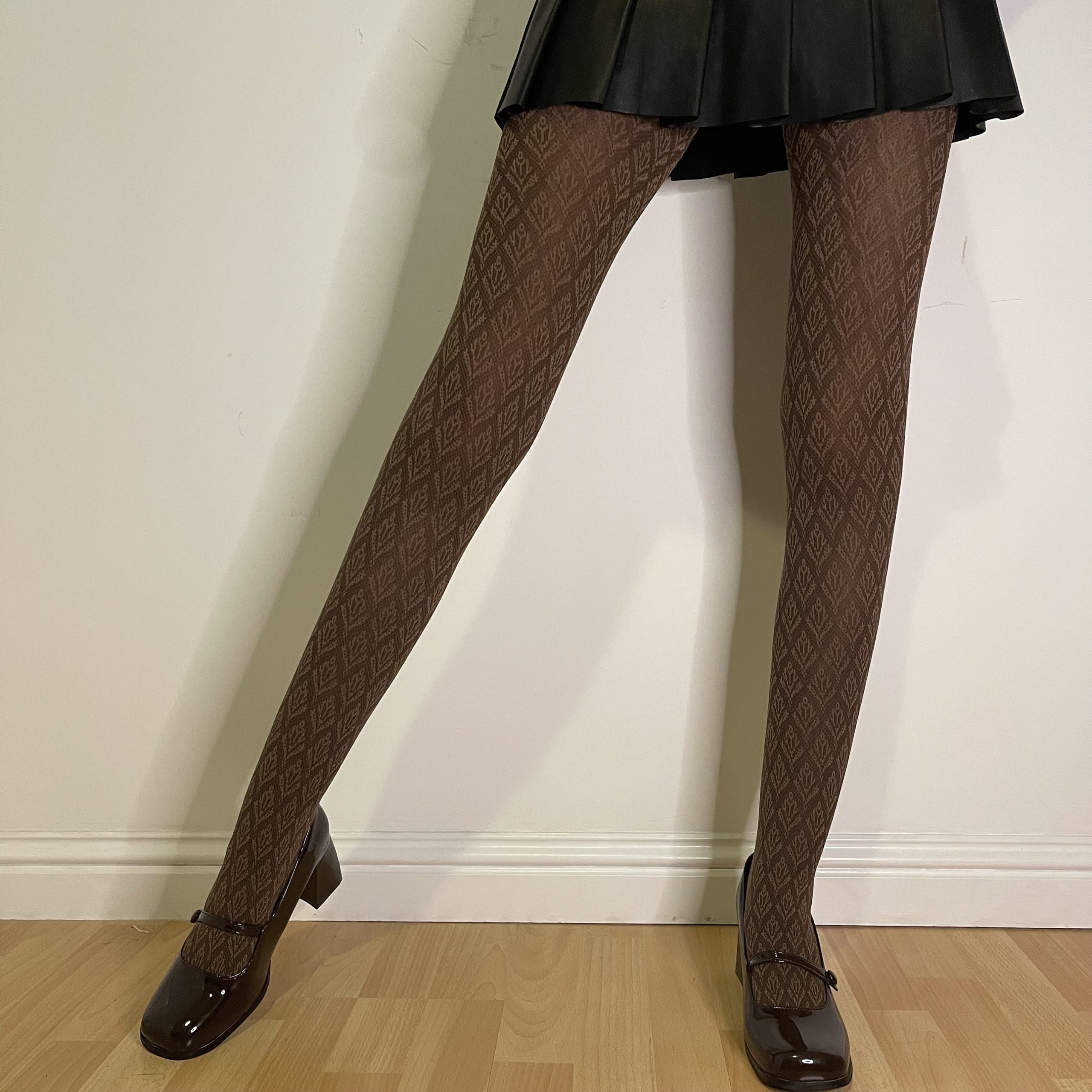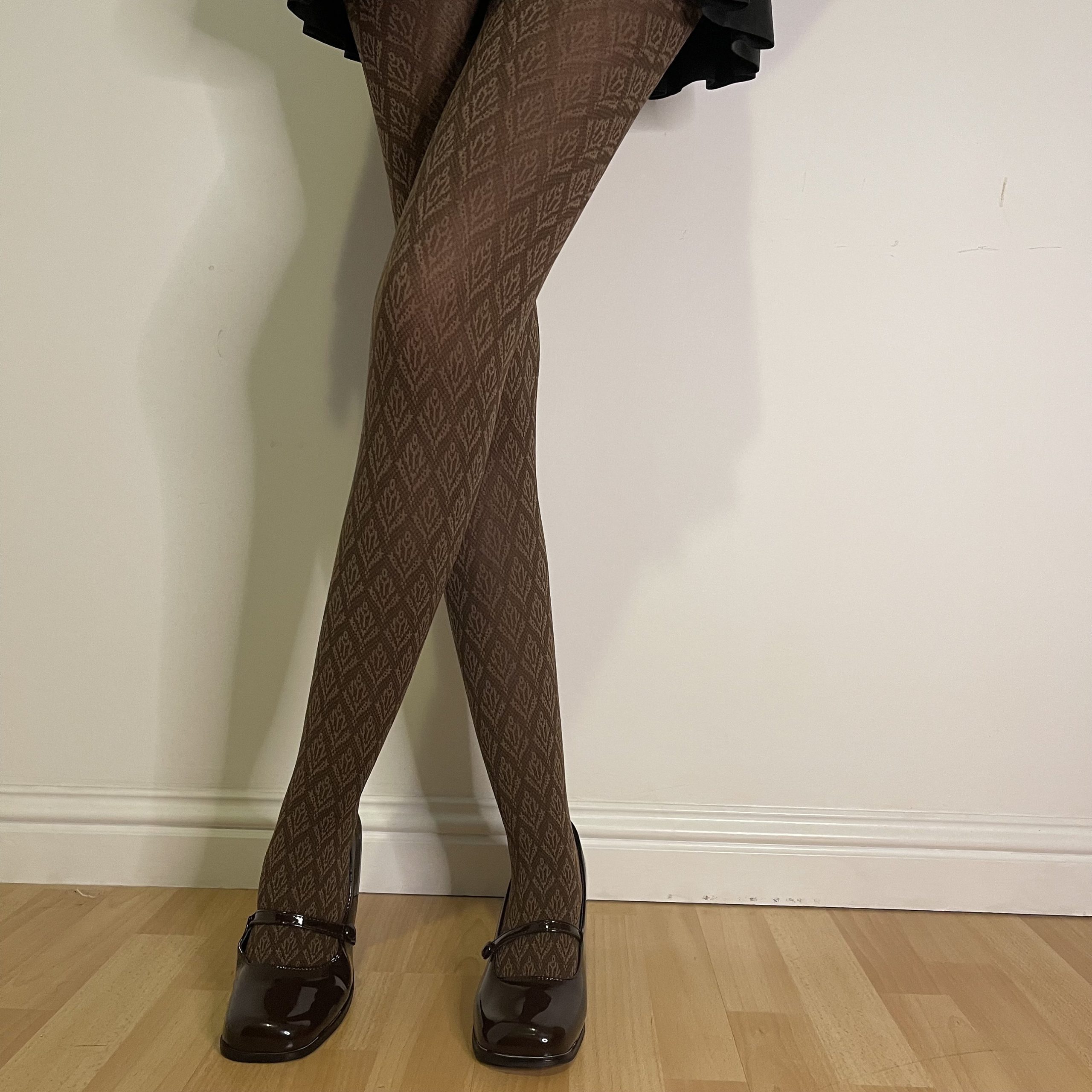 These vintage brown jacquard tights, with their unique jacquard design and versatile texture, are a must-have for vintage lovers. Whether for work or casual wear, they’ll enhance your outfit, adding a touch of vintage flair and effortless luxury to every look.