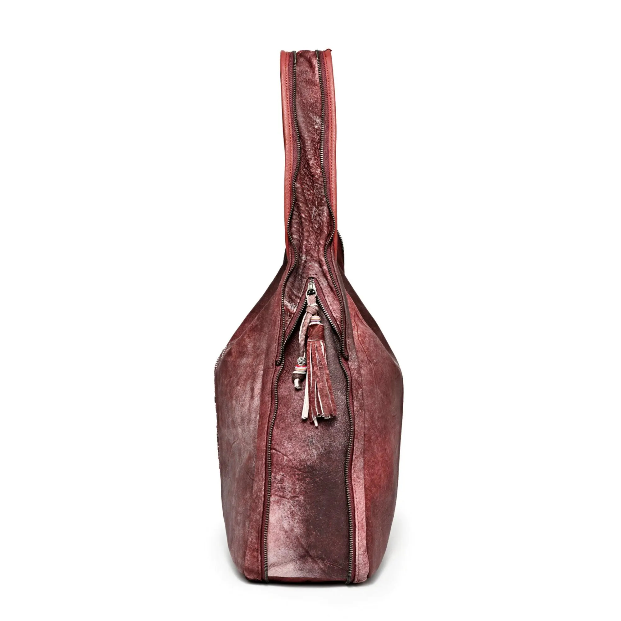 Hand-Made Distressed Uniqueness: Each bag is hand-brushed to create a burgundy color with a mottled, time-honored feel. The hollowed-out design adds a unique touch, ensuring you’ll never see a second hand.