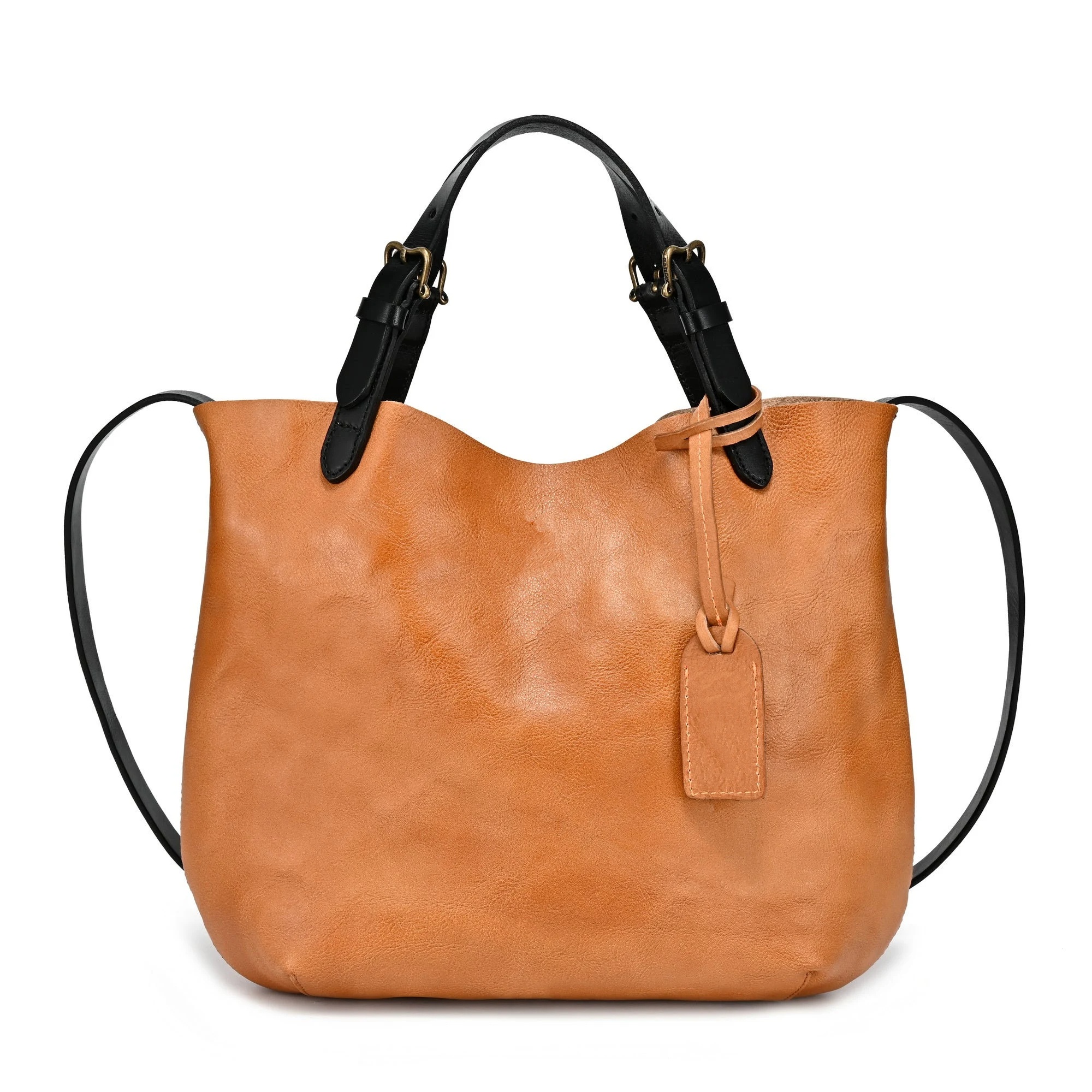 Highly detailed: The contrasting black handles and shoulder straps are paired with vintage hardware, accented with a brand tag, showcasing the craftsmanship and quality, giving the bag a vintage and stylish feel.