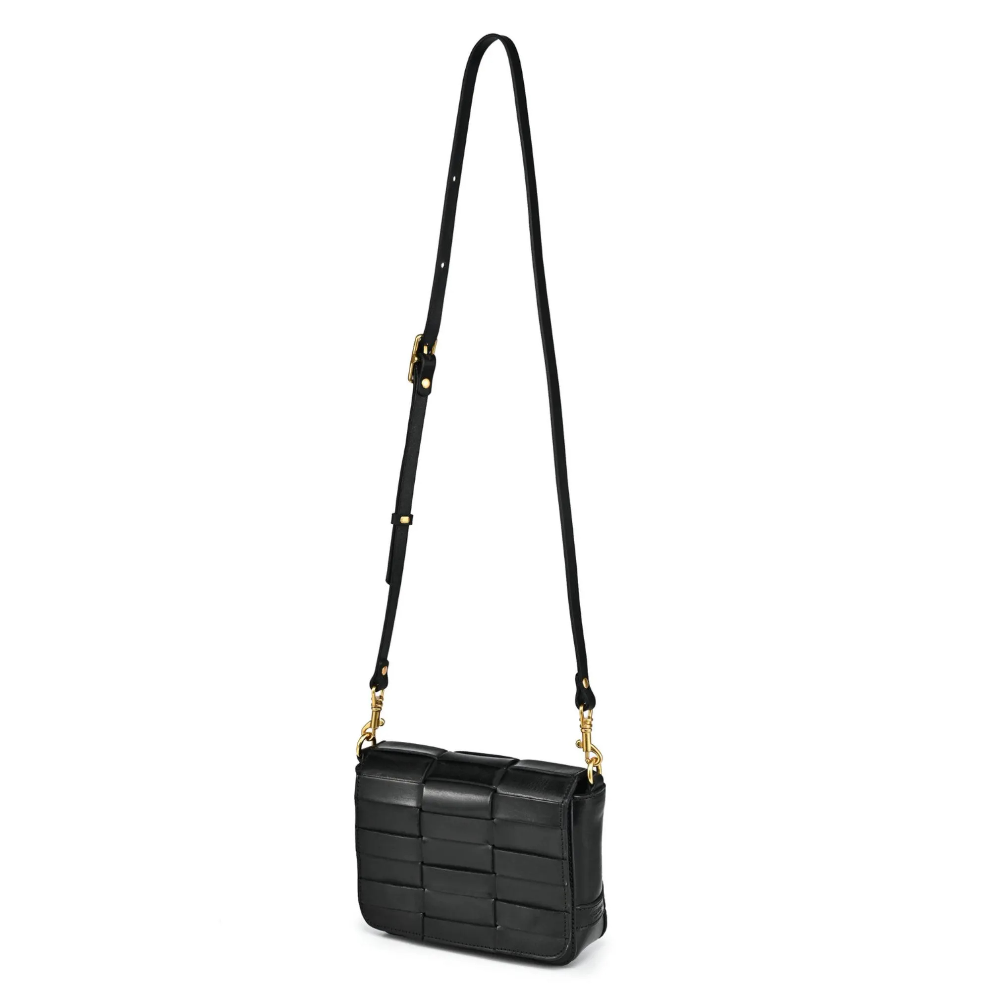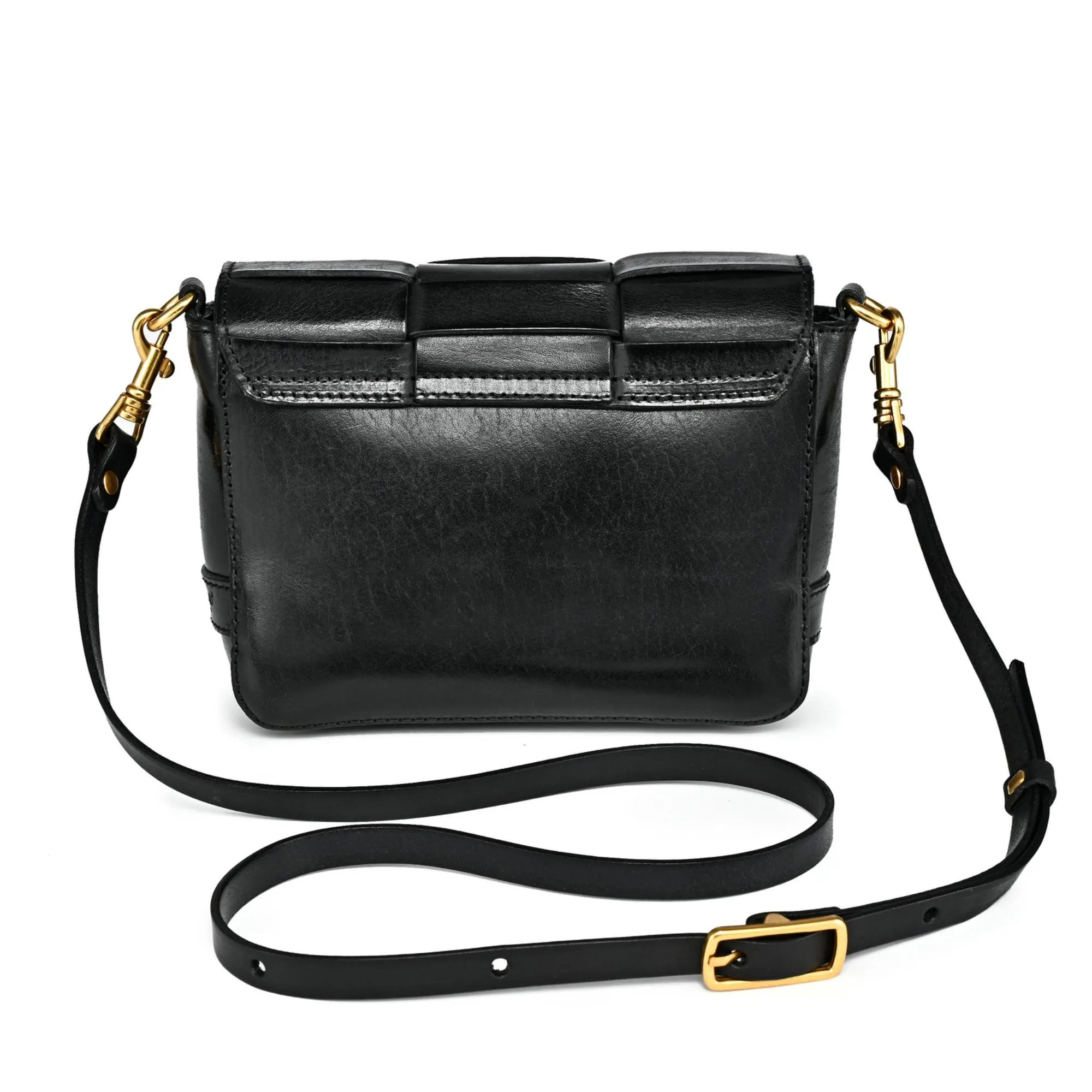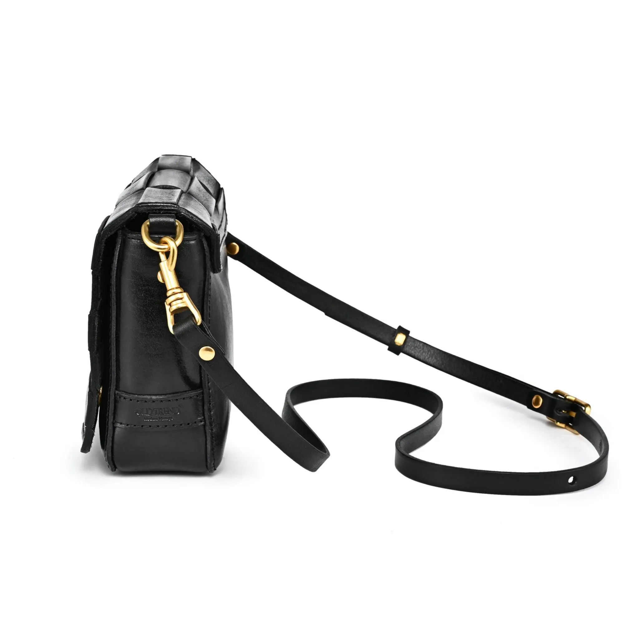 Using top-grain cowhide, this bag is tough, wear-resistant, and has a delicate texture. The black leather is treated with a vintage finish for a radiant sheen. The hand-woven process ensures a tight, durable connection between the leather panels. The rust-resistant and oxidation-resistant gold hardware complements the leather, creating a classic retro style with a refined finish.