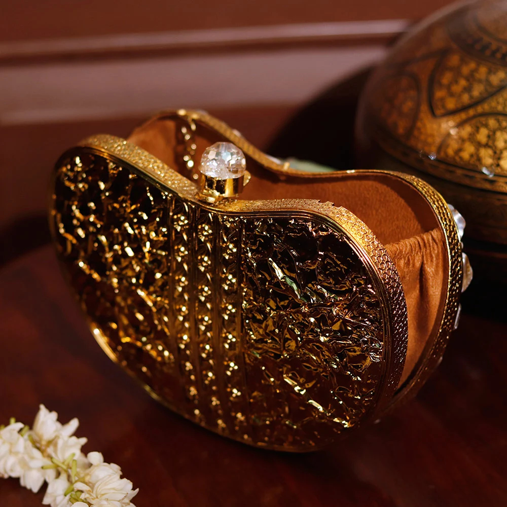 Heart-Shaped Contour and Hardware: The distinctive heart-shaped body is highly recognizable among evening bags. The crystal clasp at the top acts as both a closure and a dazzling, jewel-like eye-catcher. The hardware has been treated with an antioxidant treatment to maintain its luxurious finish.